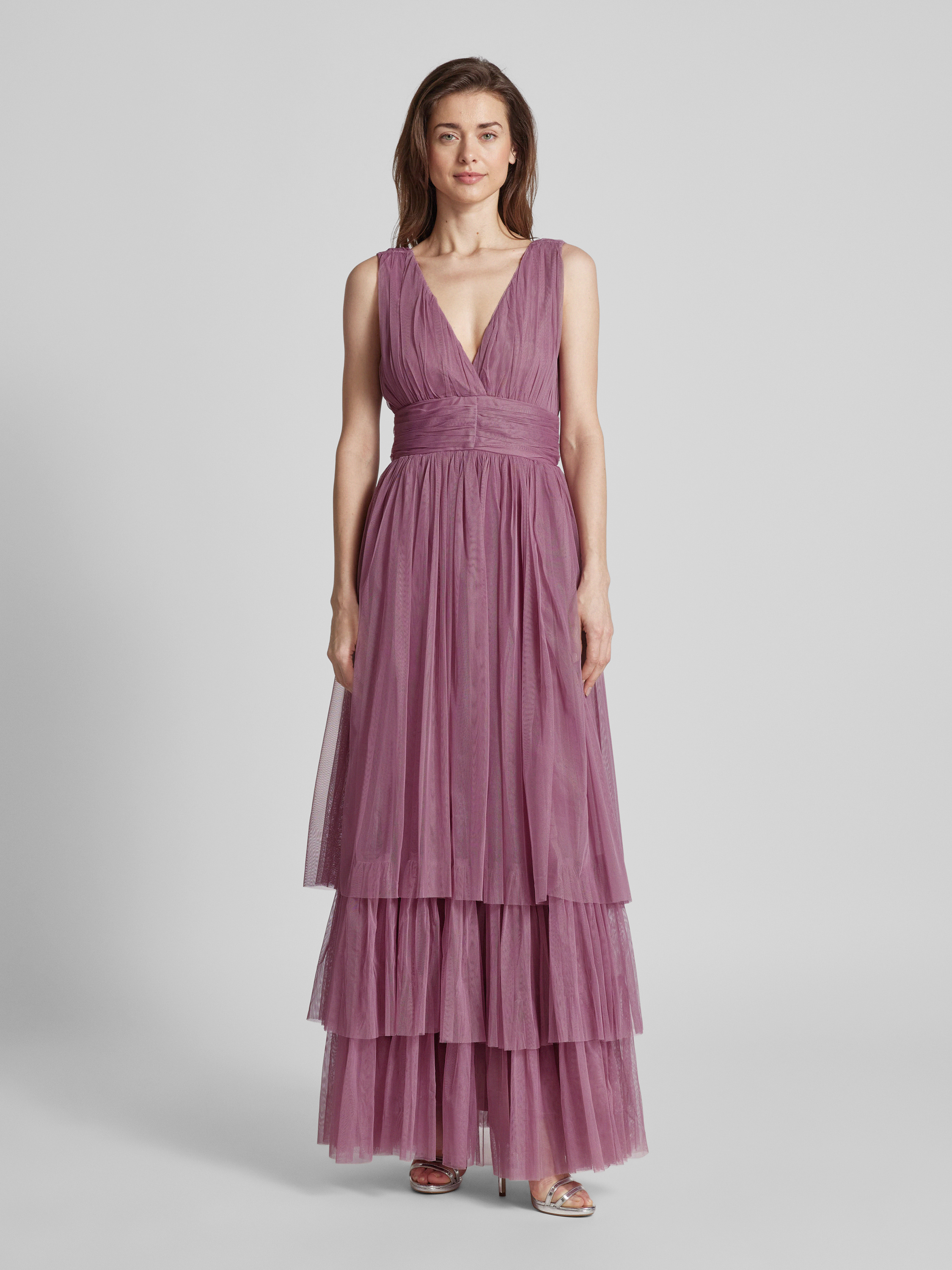 Das Abendkleid von Lace & Beads zeichnet sich durch seinen eleganten Stufen-Look und die taillierte Passform aus, die für eine feminine Silhouette sorgt. Der V-Ausschnitt und die breiten Träger verleihen dem unifarbenen Design eine zeitlose Eleganz. Hergestellt aus feinem Tüll, bietet es einen ansprechenden Tragekomfort.