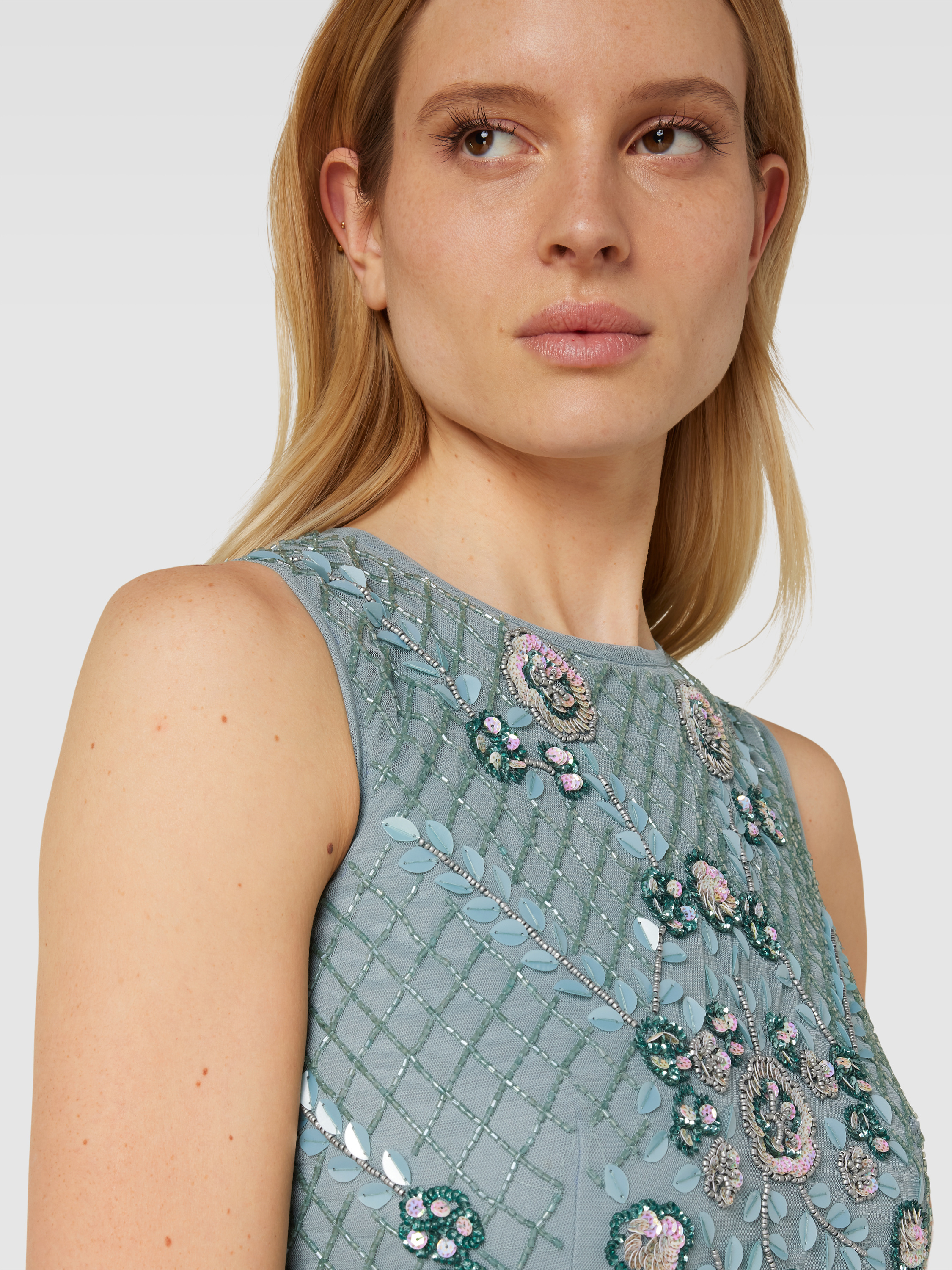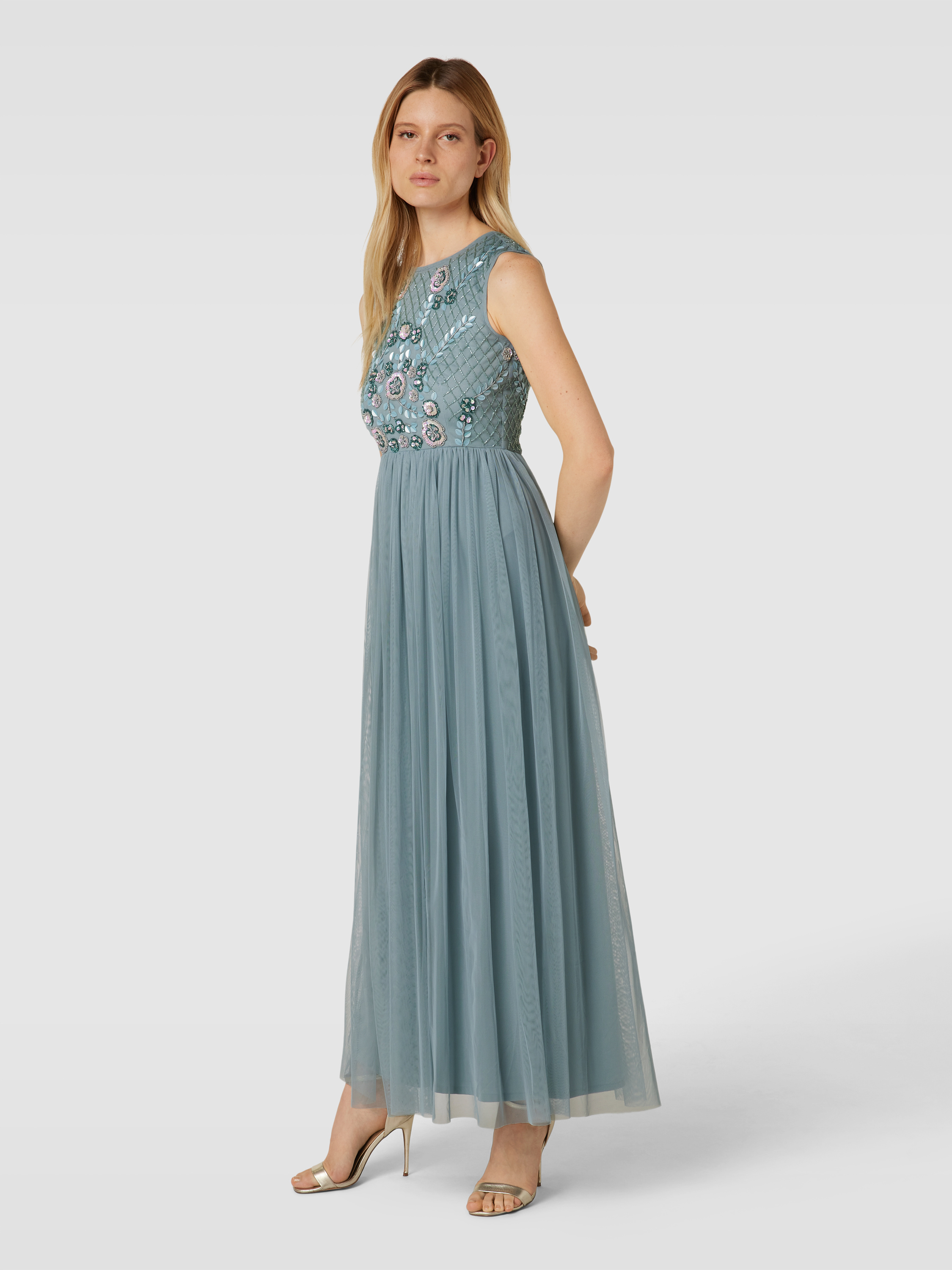 LACE & BEADSAbendkleid mit Pailletten- und Ziersteinbesatz in mint