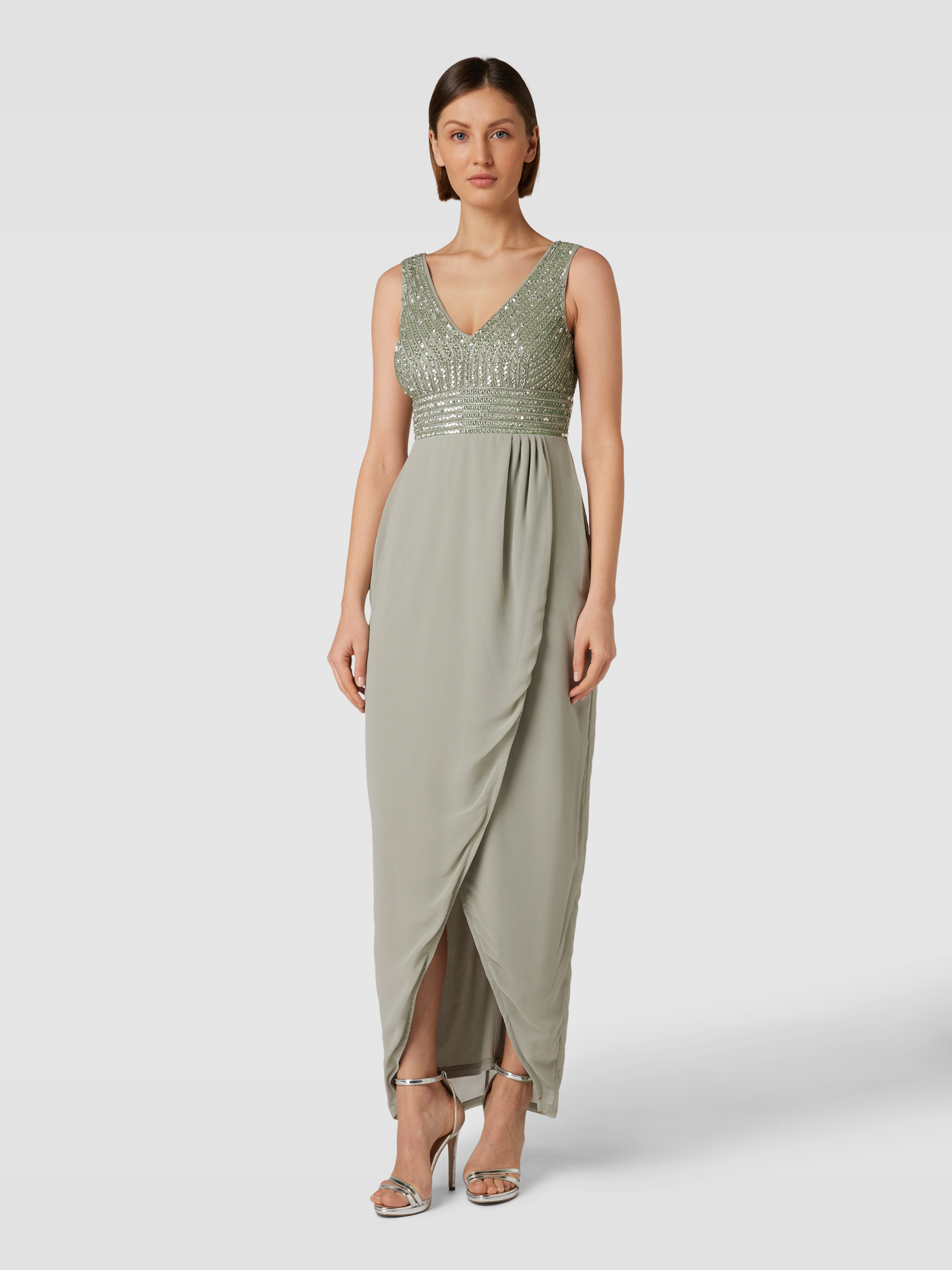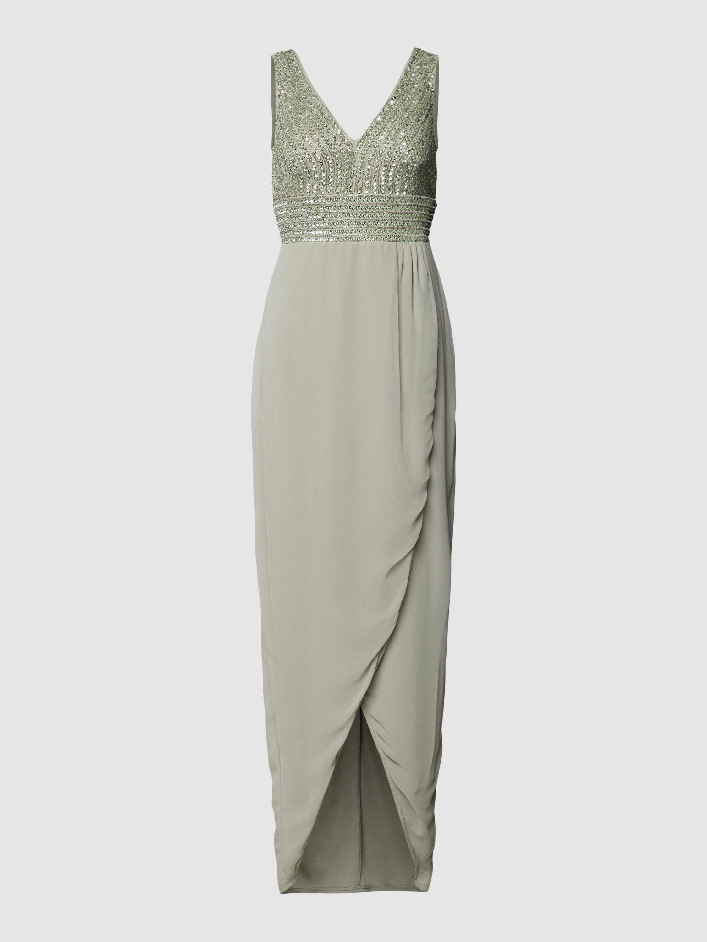 Das Abendkleid von Lace & Beads kombiniert Chiffon mit einem eleganten taillierten Schnitt und einem V-Ausschnitt, was eine raffinierte Silhouette schafft. Der Paillettenbesatz verleiht dem unifarbenen Design eine schimmernde Note. Das blickdichte Unterkleid sorgt für angenehmen Tragekomfort.