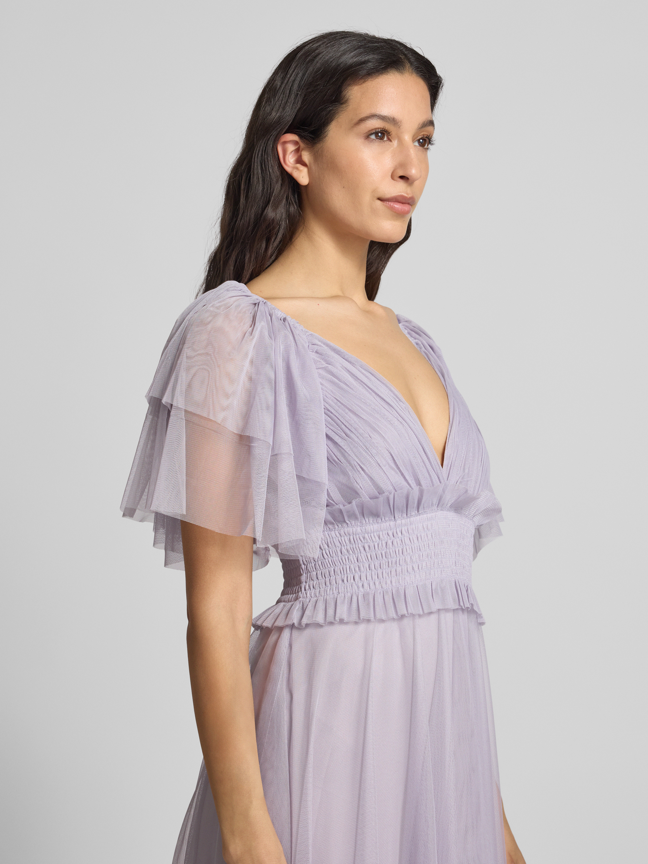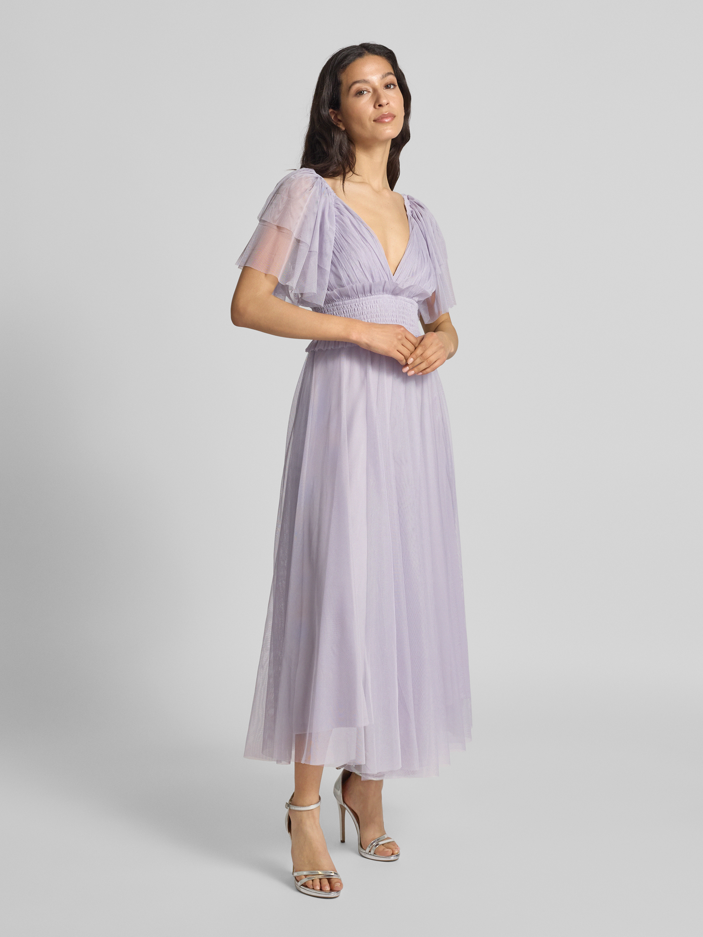 LACE & BEADSKnielanges Cocktailkleid mit V-Ausschnitt in flieder
