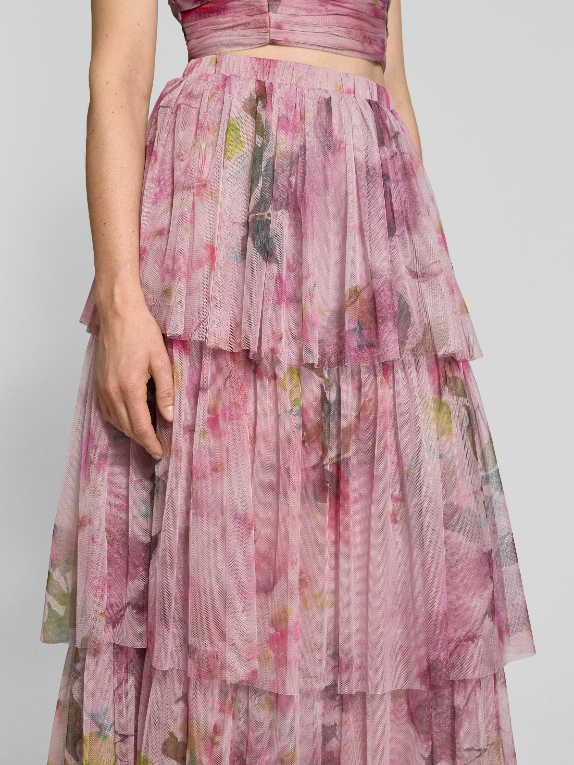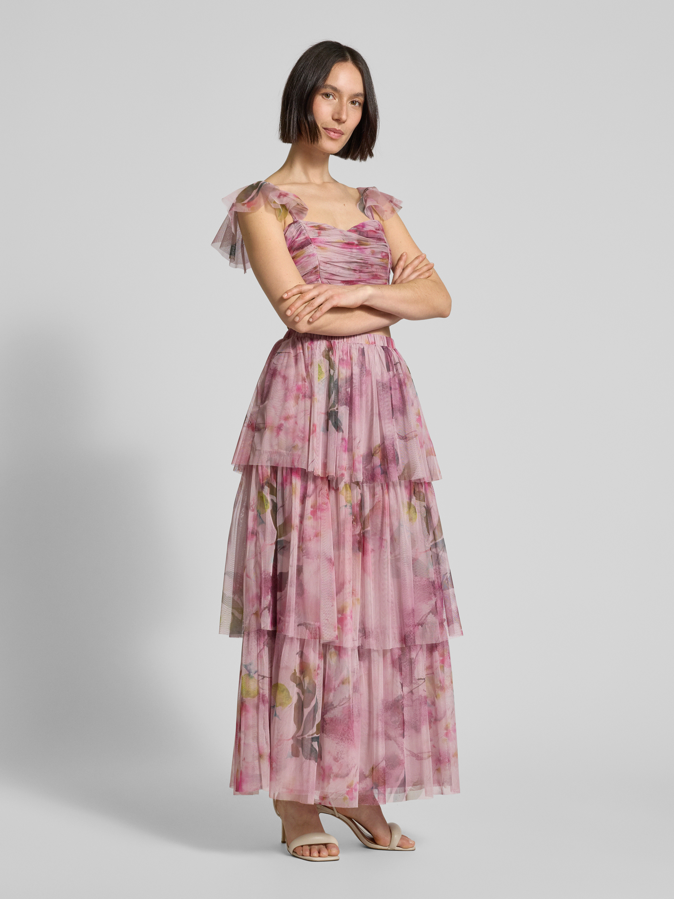 LACE & BEADSMaxirock im Stufen-Look in rosa