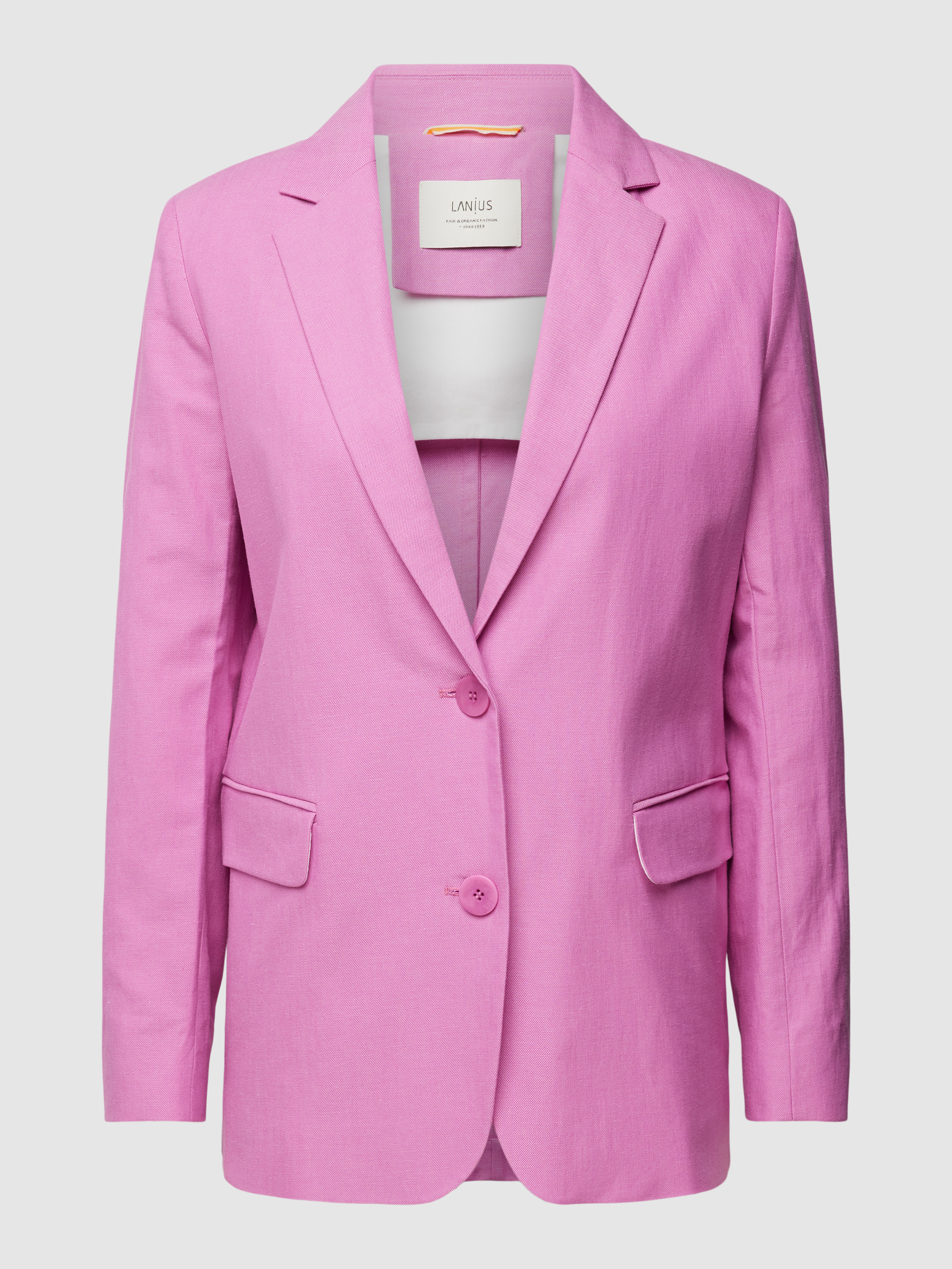 Der Damen Blazer von Lanius aus reiner Viskose kombiniert einen geraden Schnitt mit einem unifarbenen Design und einem klassischen Reverskragen. Die Pattentaschen verleihen dem Modell praktische Eleganz. Dieser Blazer eignet sich hervorragend für einen stilvollen und gleichzeitig komfortablen Auftritt.
