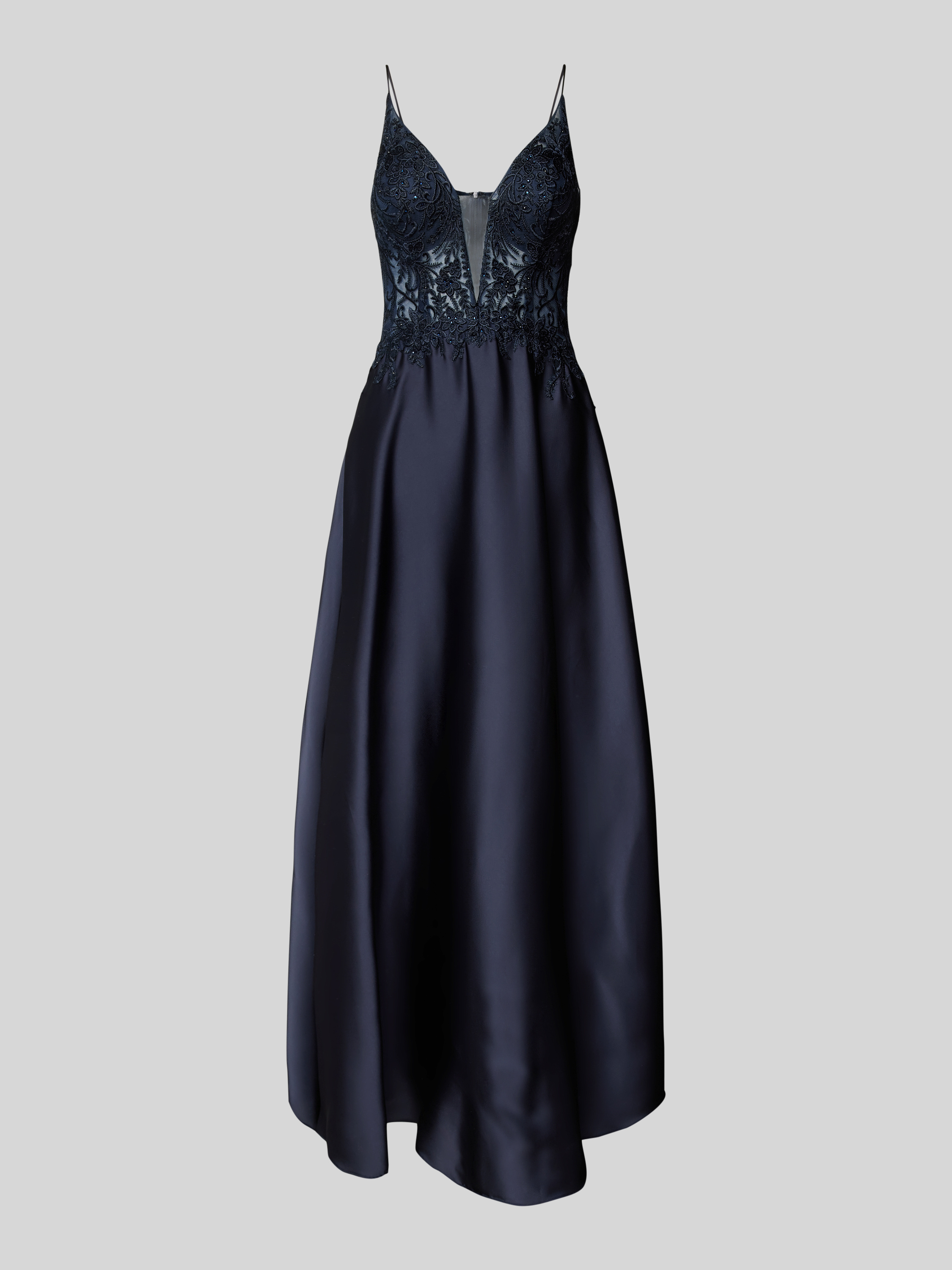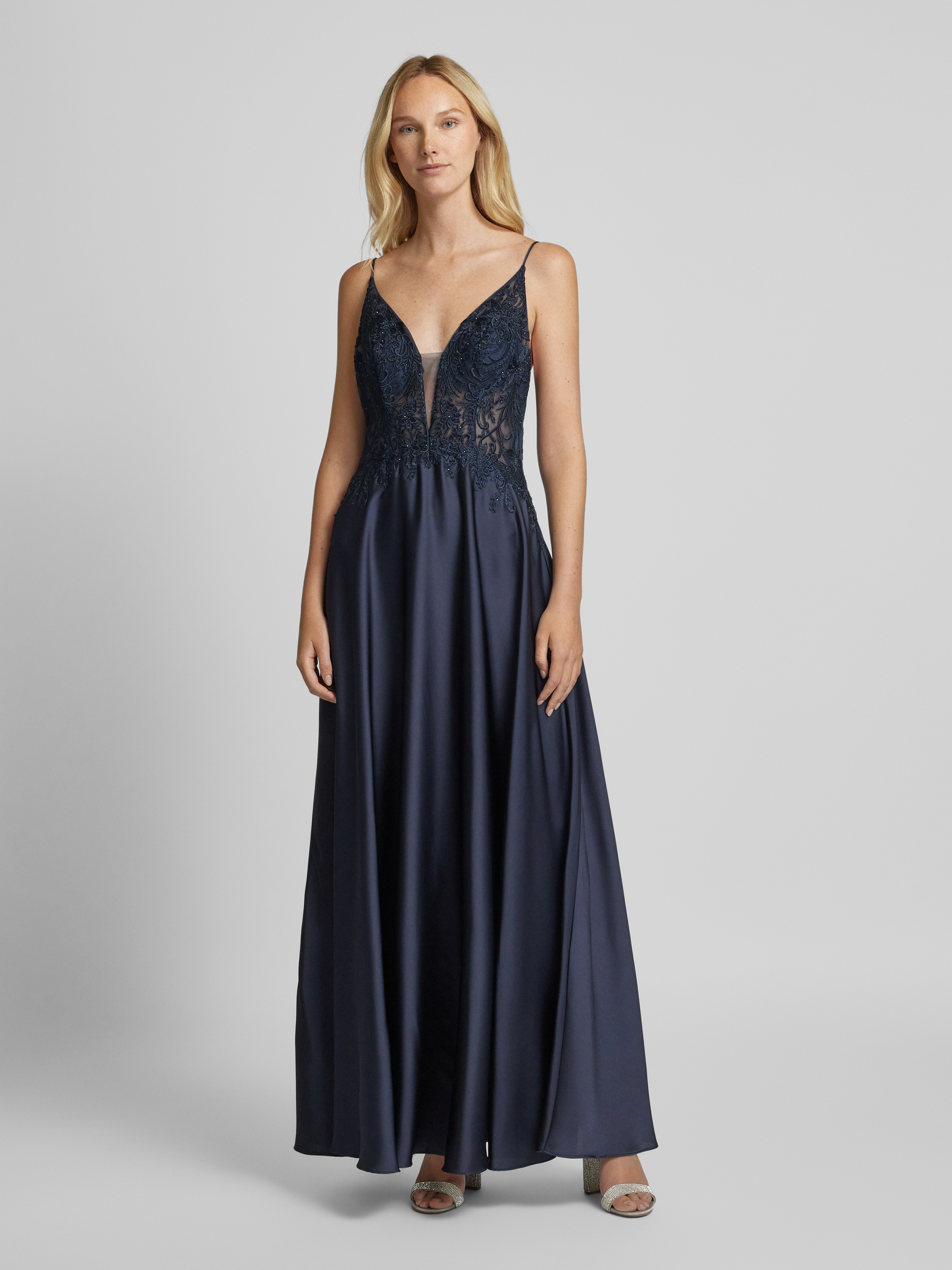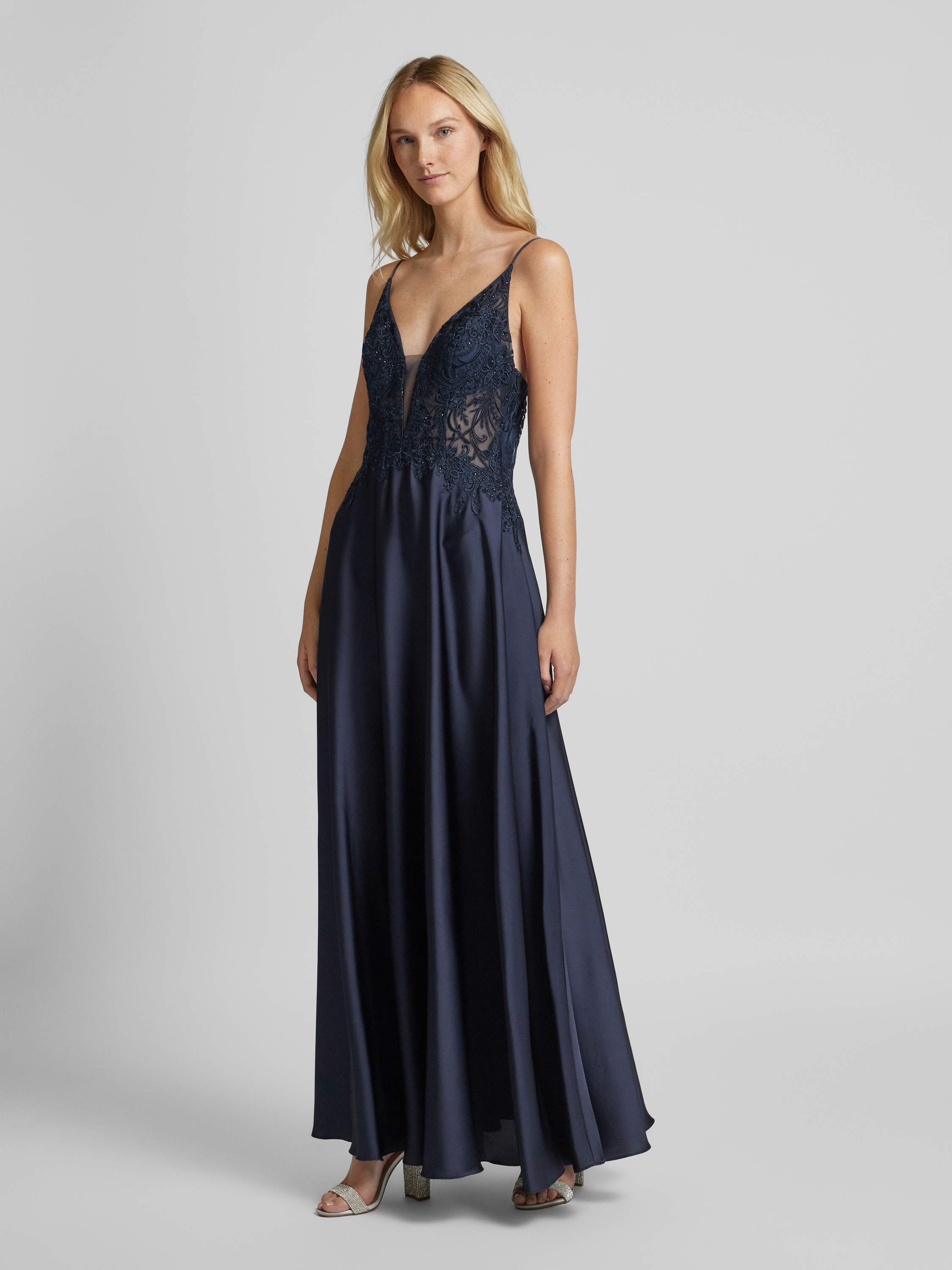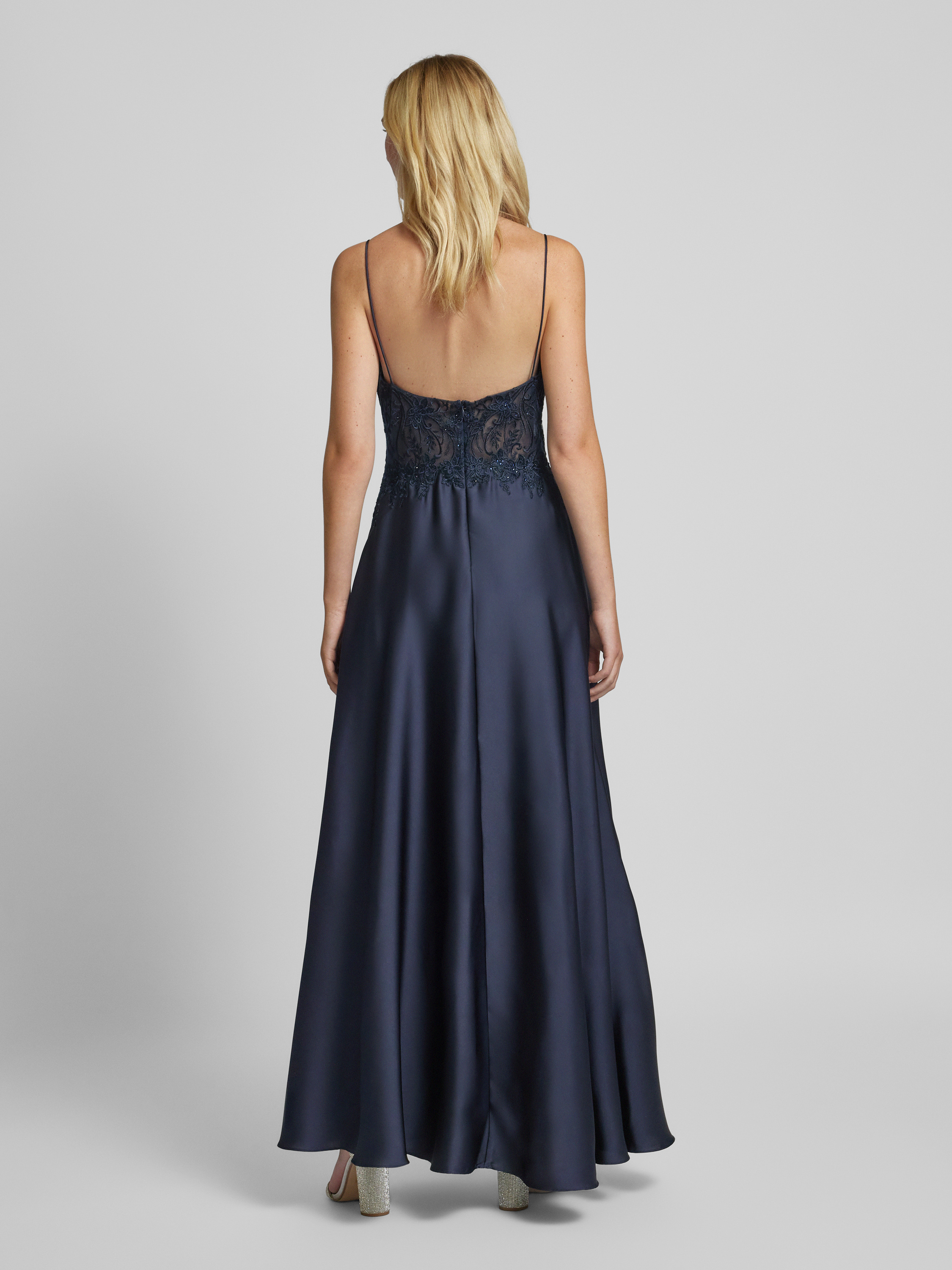 LaonaAbendkleid mit floralen Stickereien in dunkelblau