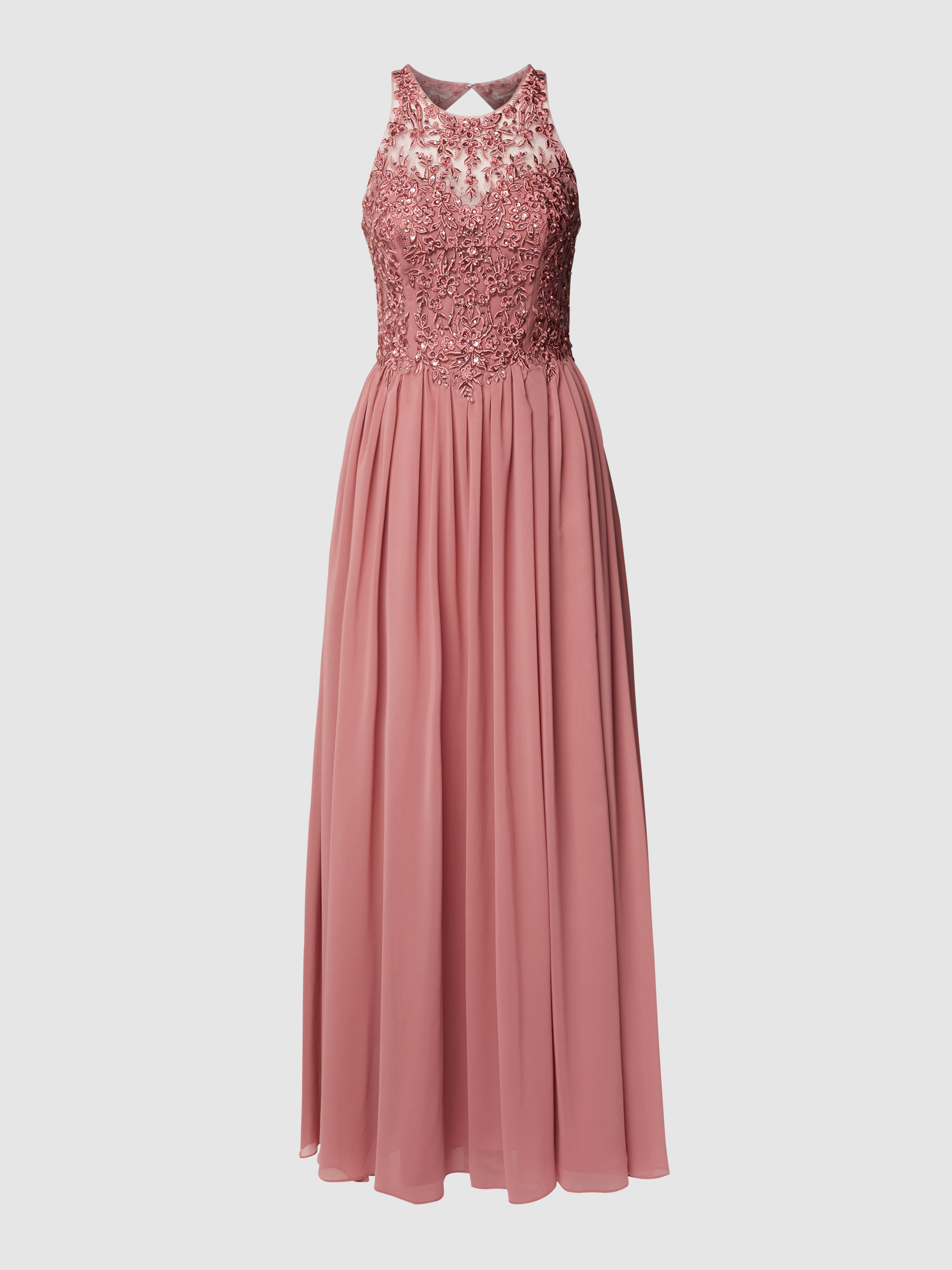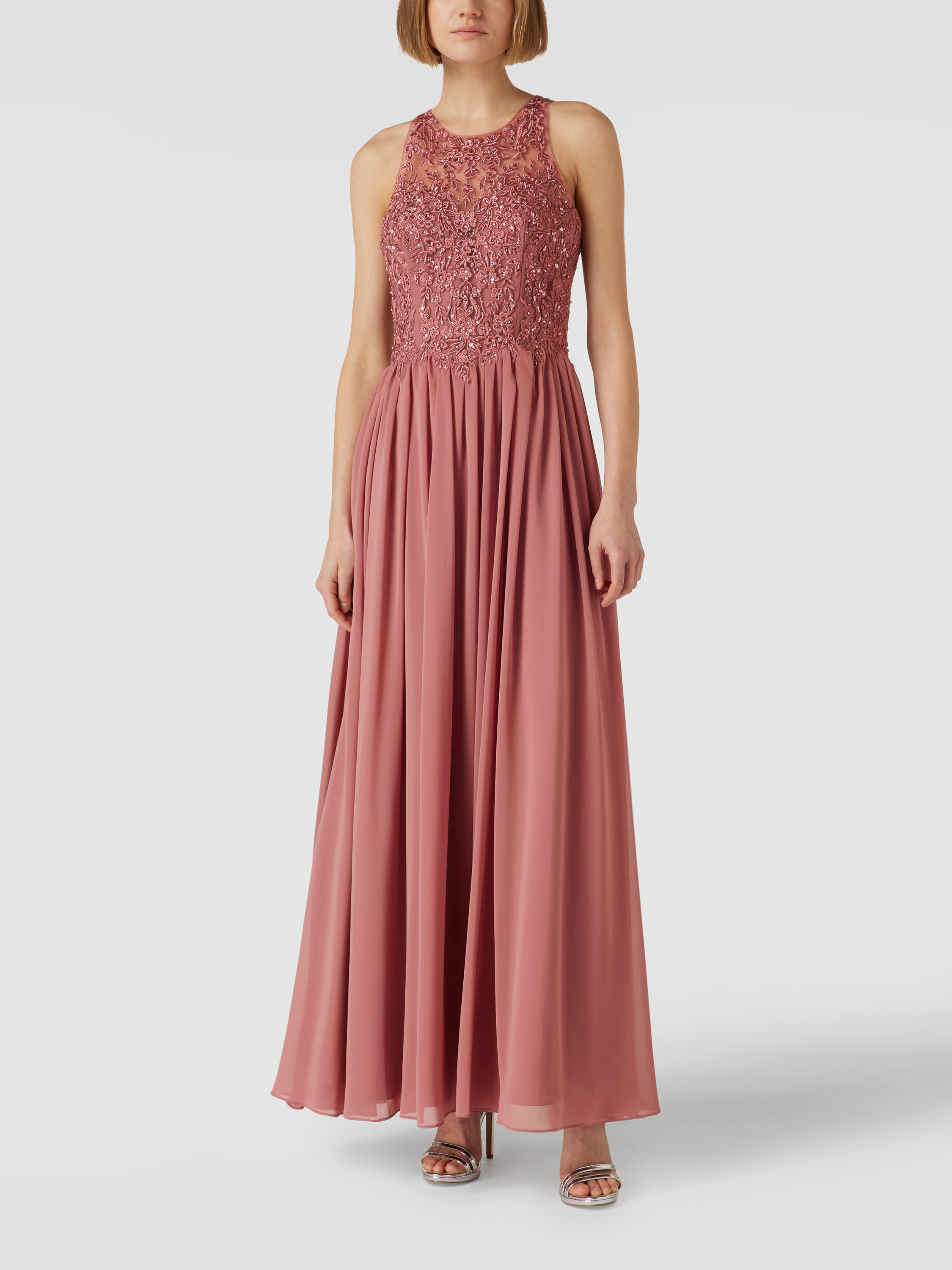 LaonaAbendkleid mit floralen Stickereien und Zierperlen in rosa