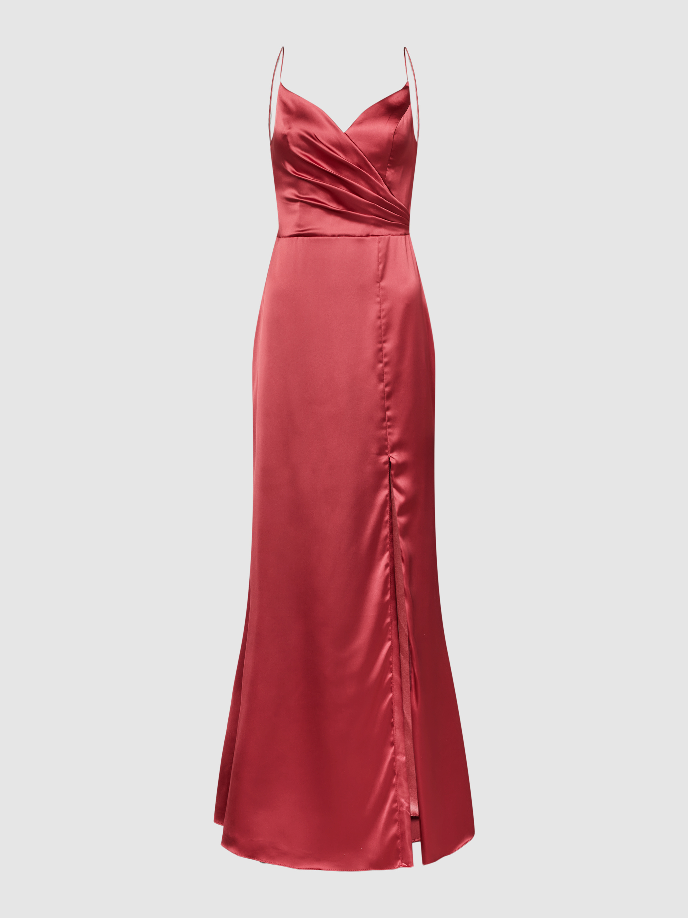 Das Abendkleid von LAONA vereint Eleganz mit einem Hauch von Raffinesse. Der herzförmige Ausschnitt und die Spaghettiträger betonen geschickt die Silhouette, während das Satinmaterial für einen fließenden Fall sorgt. Ein hoher Seitenschlitz verleiht dem Kleid Dynamik und Bewegungsfreiheit.