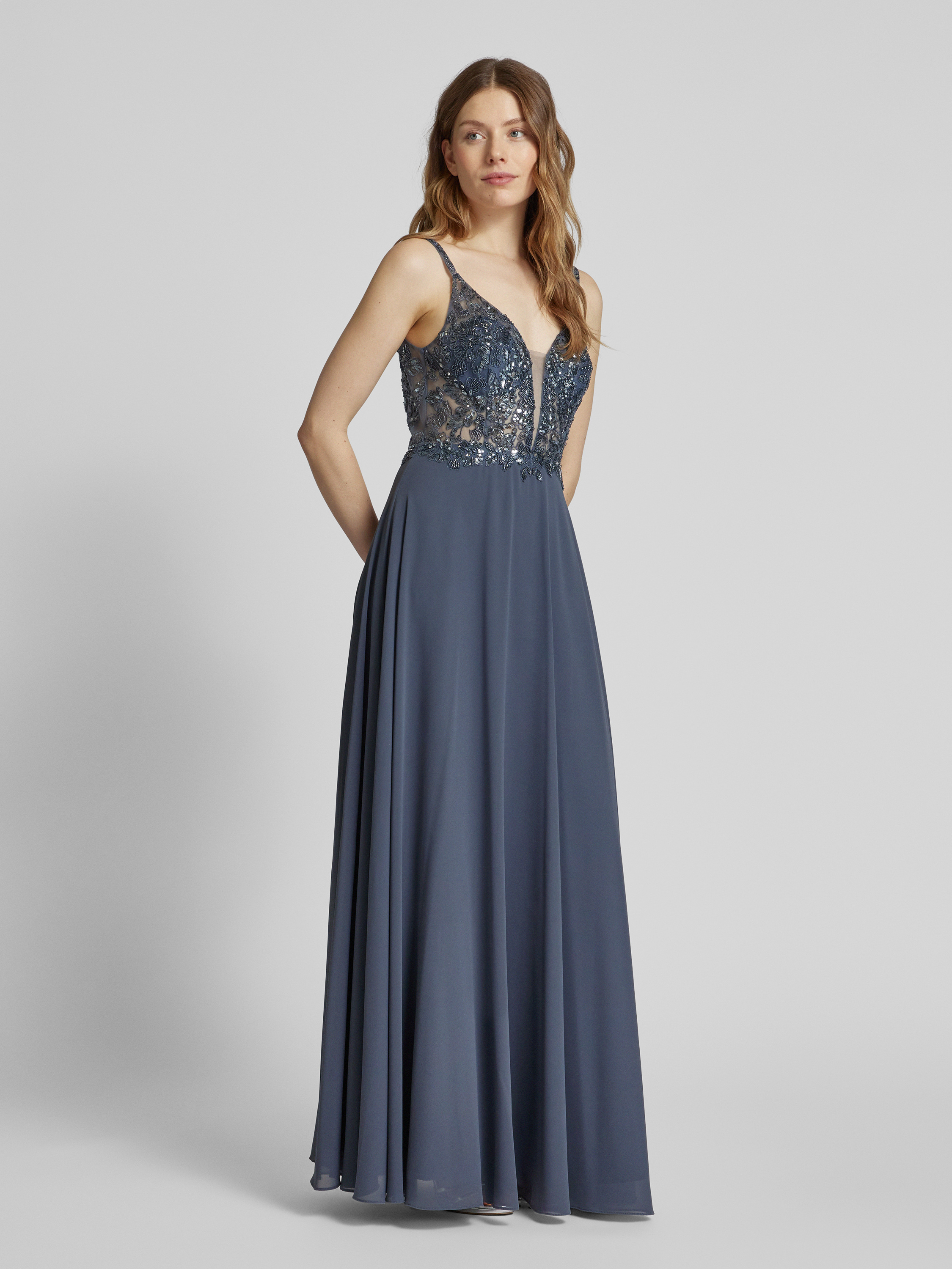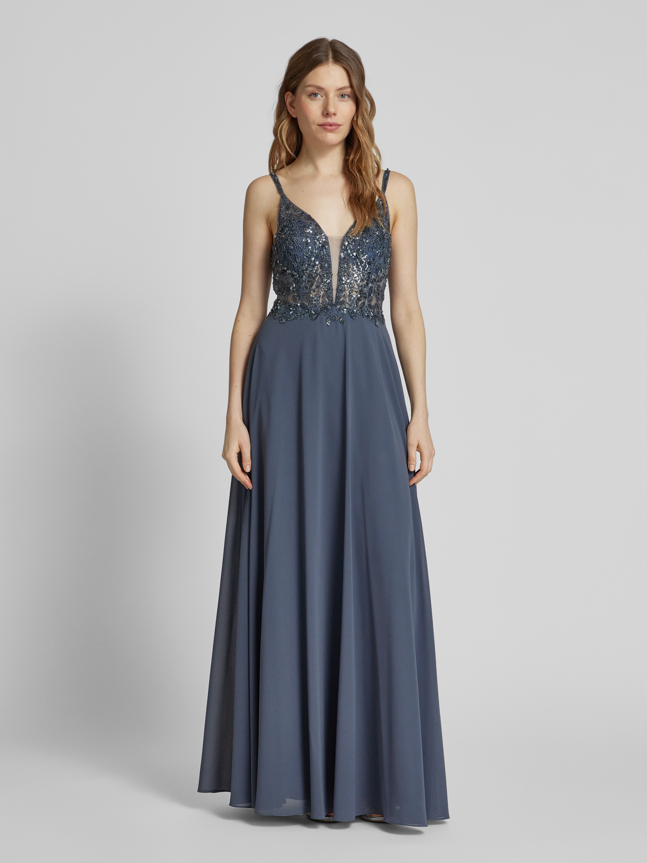 LaonaAbendkleid mit Pailletten- und Ziersteinbesatz in blau