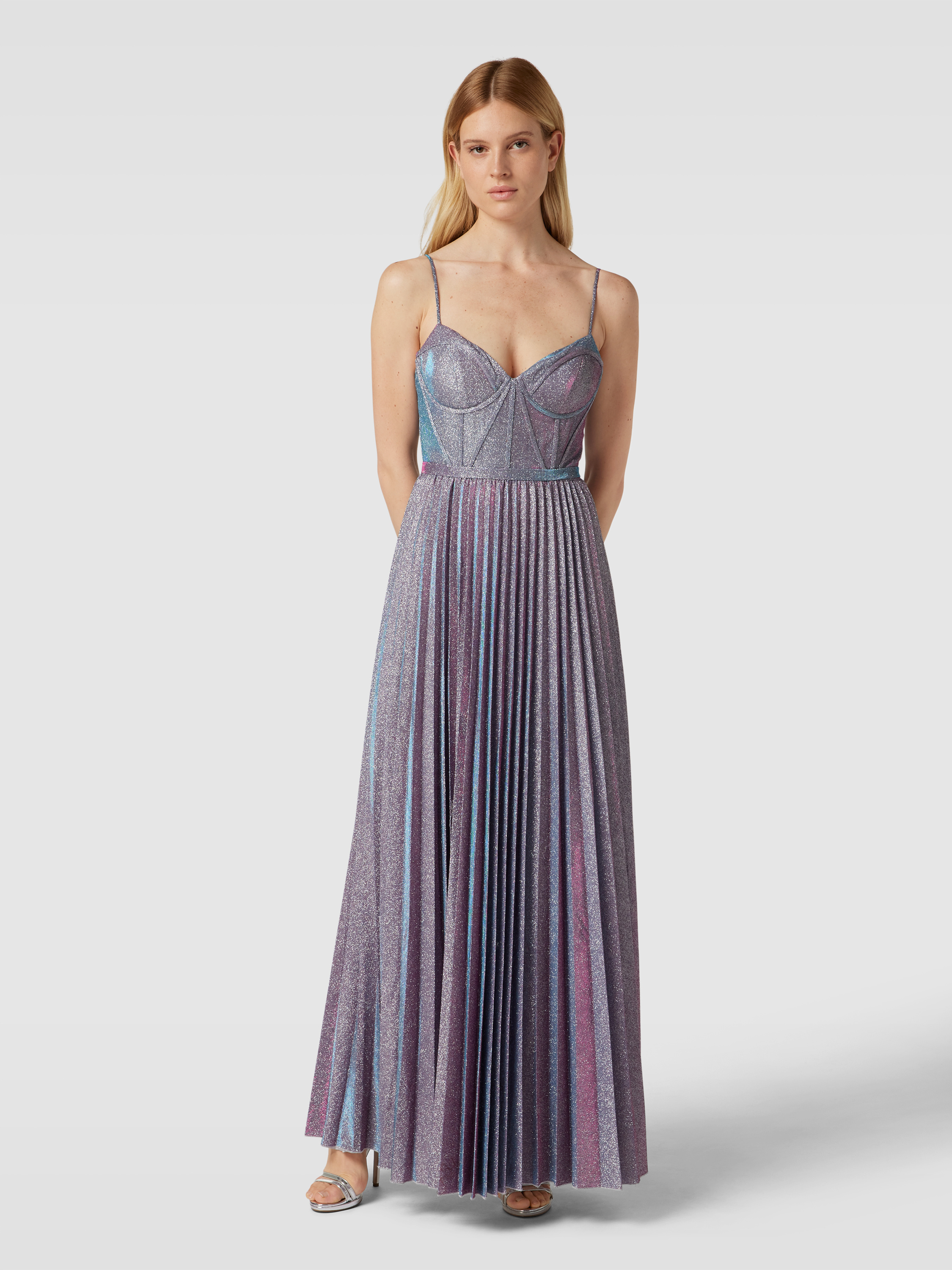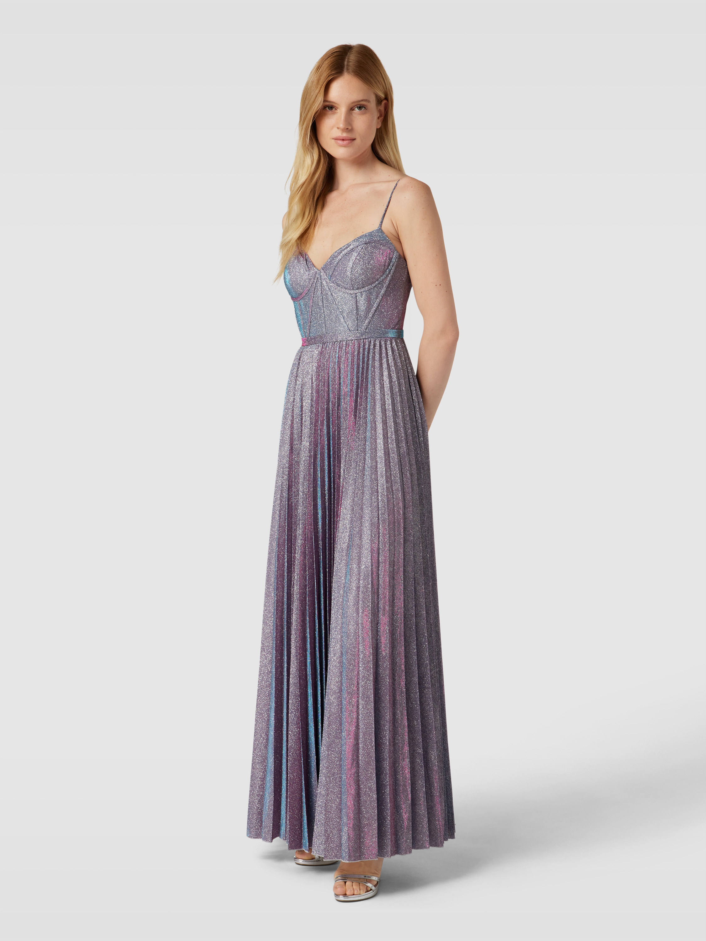 Abendkleid mit vorgeformten Cups in silber