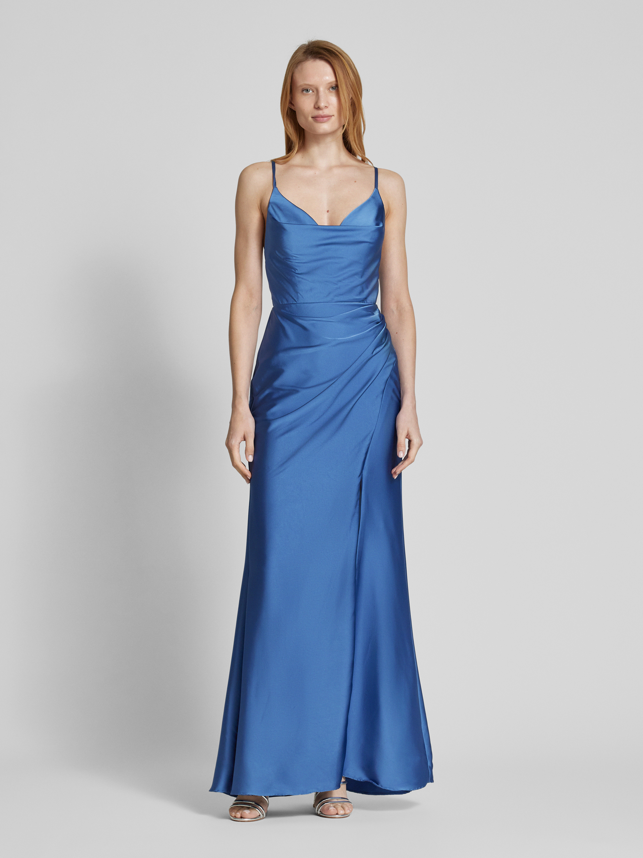 LaonaAbendkleid mit Wasserfall-Ausschnitt in blau