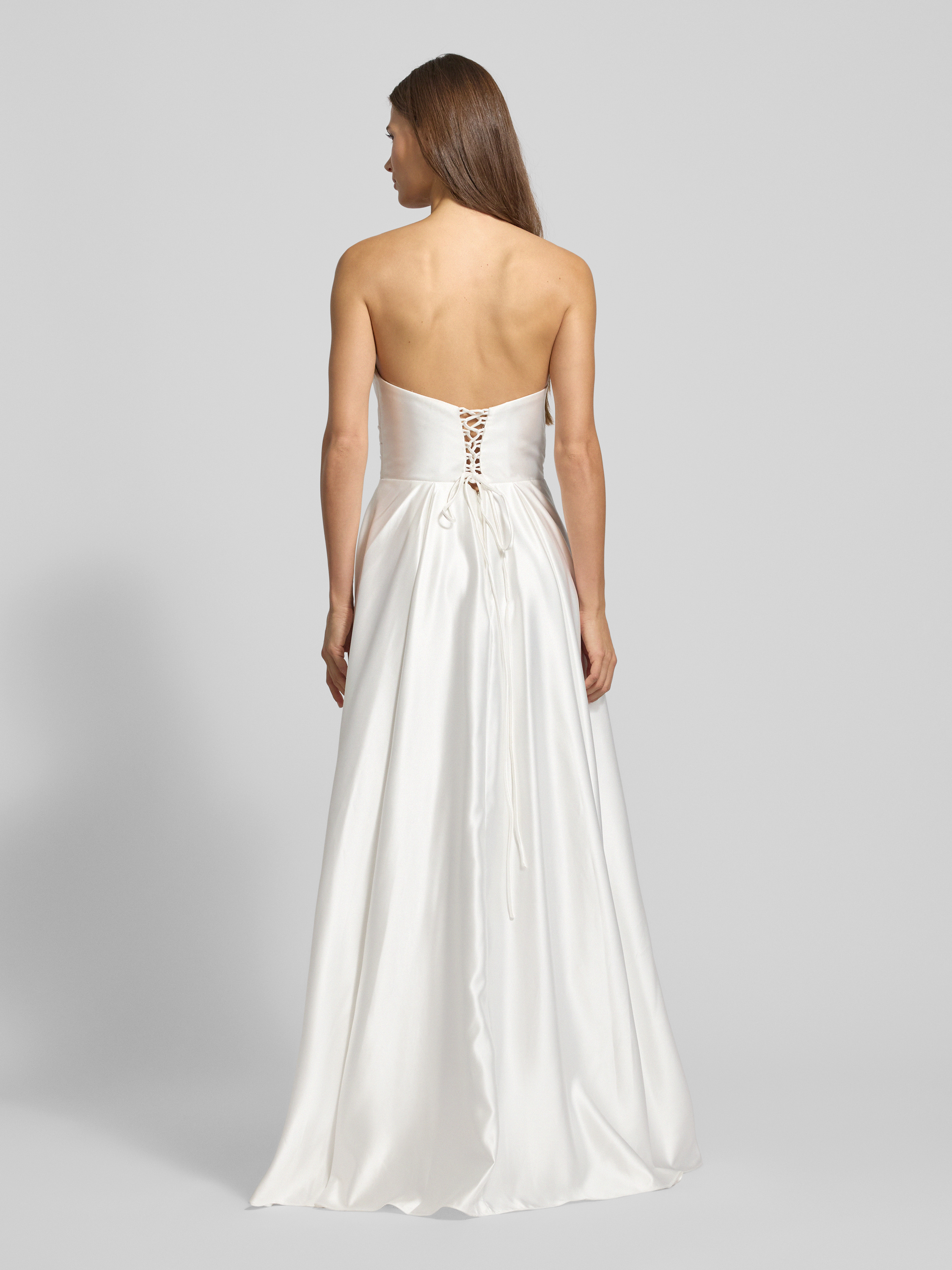 Das Damen Abendkleid von Laona aus Satin fällt in einer A-Linie locker und sorgt durch den Regular Fit für angenehme Bewegungsfreiheit. Gelegte Falten und der Sweetheart-Ausschnitt unterstreichen die feminine Silhouette, während der Schnürverschluss individuelle Anpassung ermöglicht. So eignet sich dieses Modell besonders für festliche Anlässe.