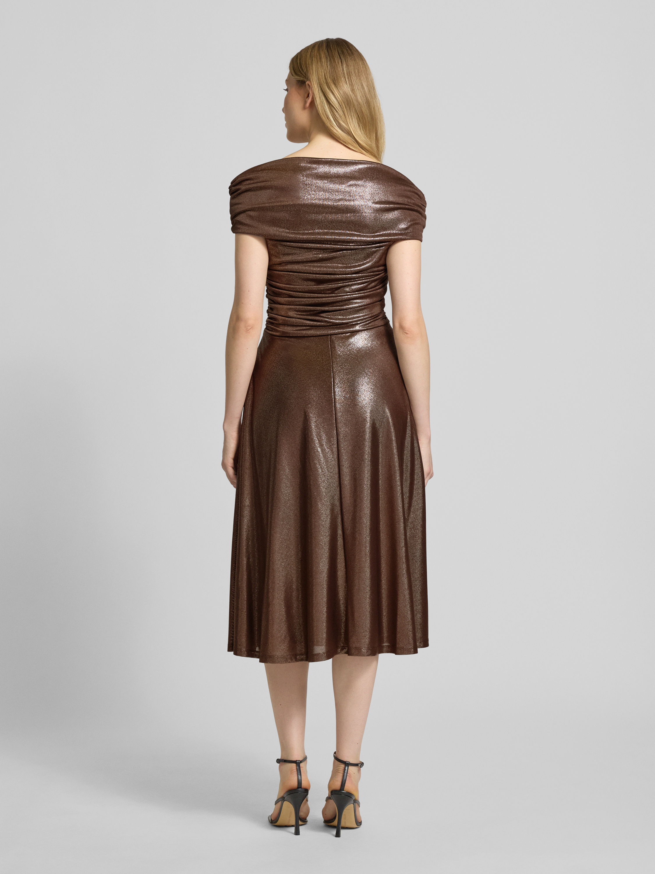 Lauren Ralph LaurenKnielanges Cocktailkleid mit Carmen-Ausschnitt Modell 'HELDAI' in taupe