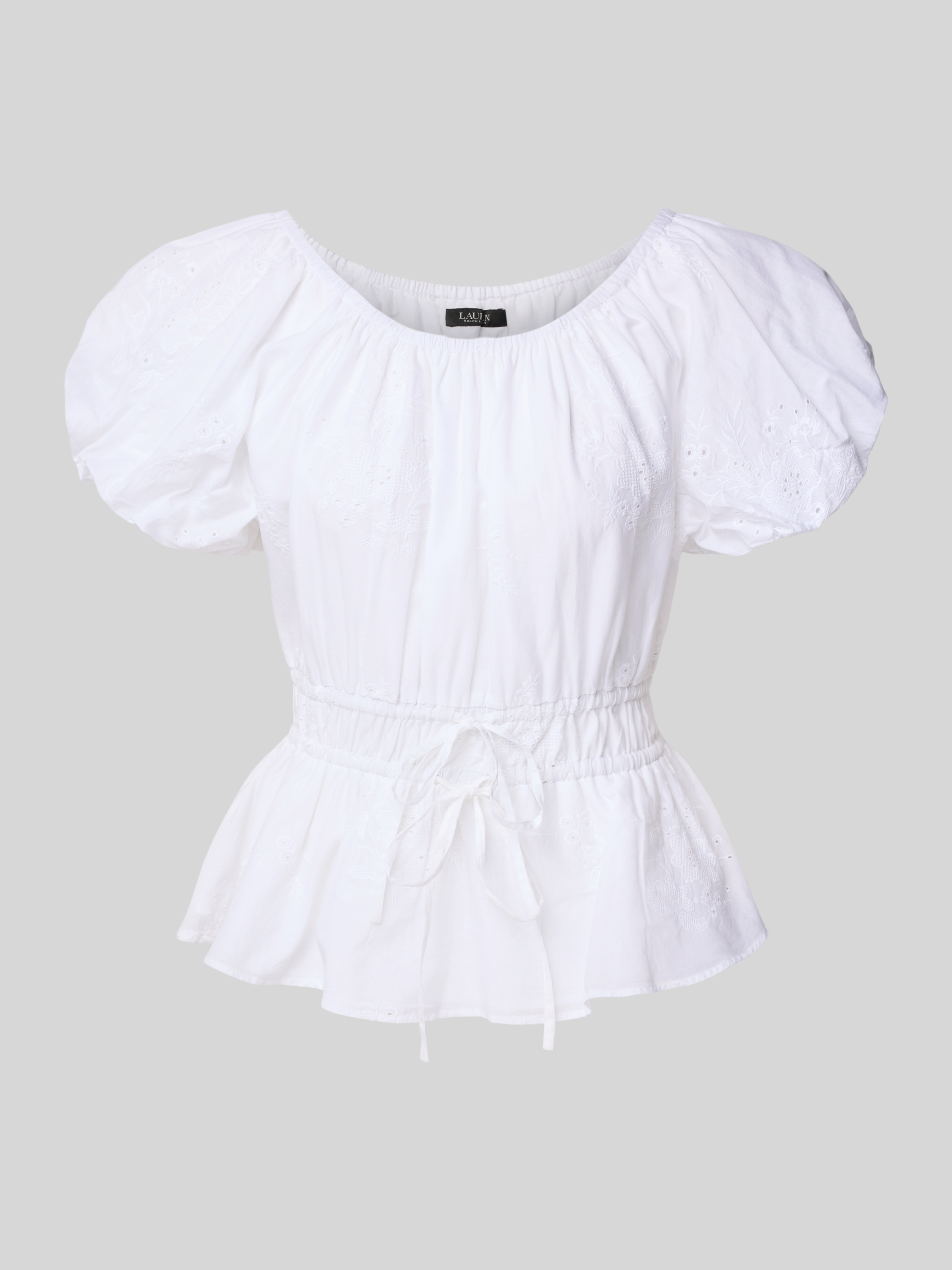 Lauren Ralph LaurenBluse mit Lochstickerei und Puffärmeln in weiss