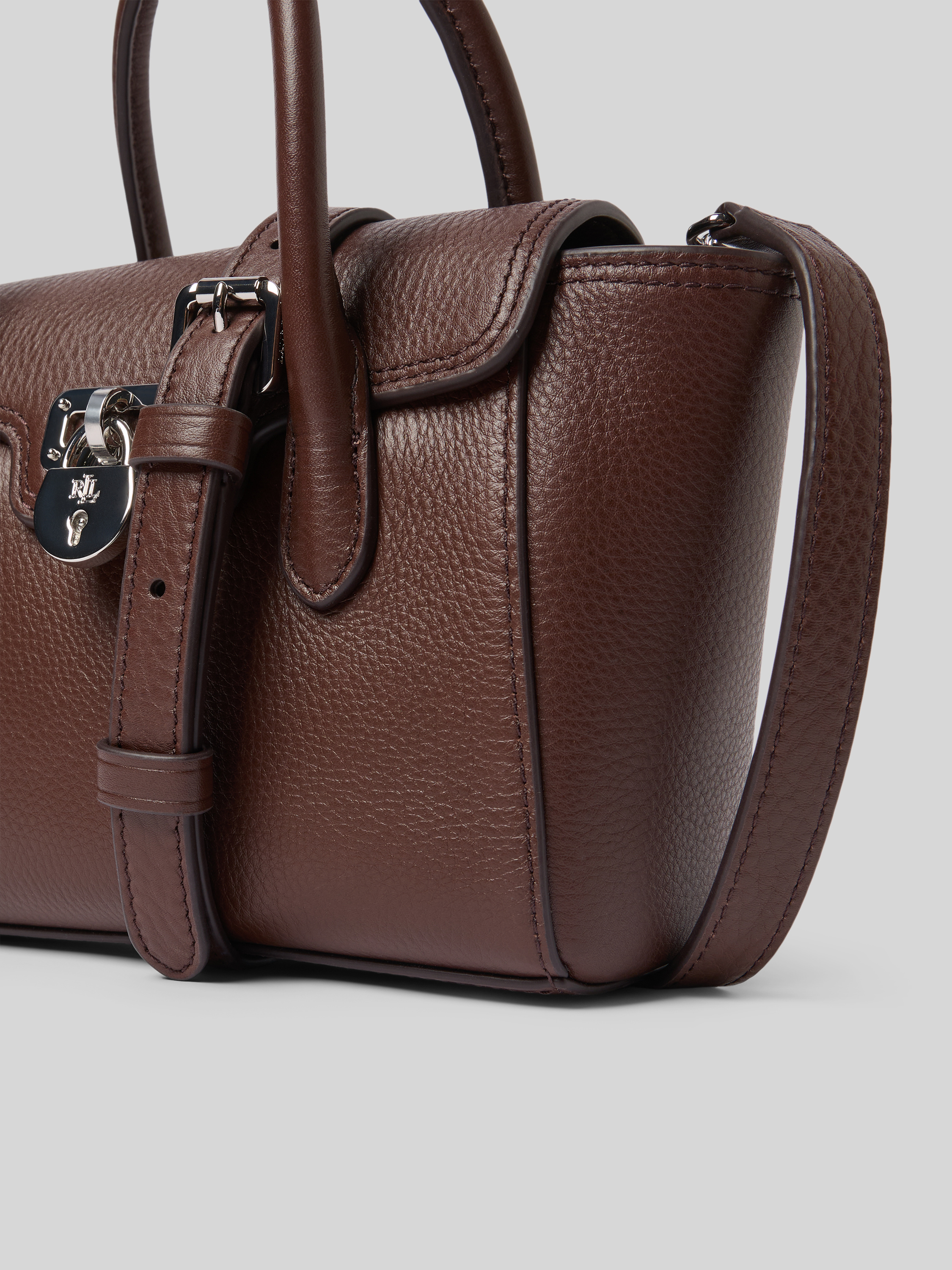 Handtasche aus Rindsleder mit Tragehenkeln in dunkelbraun