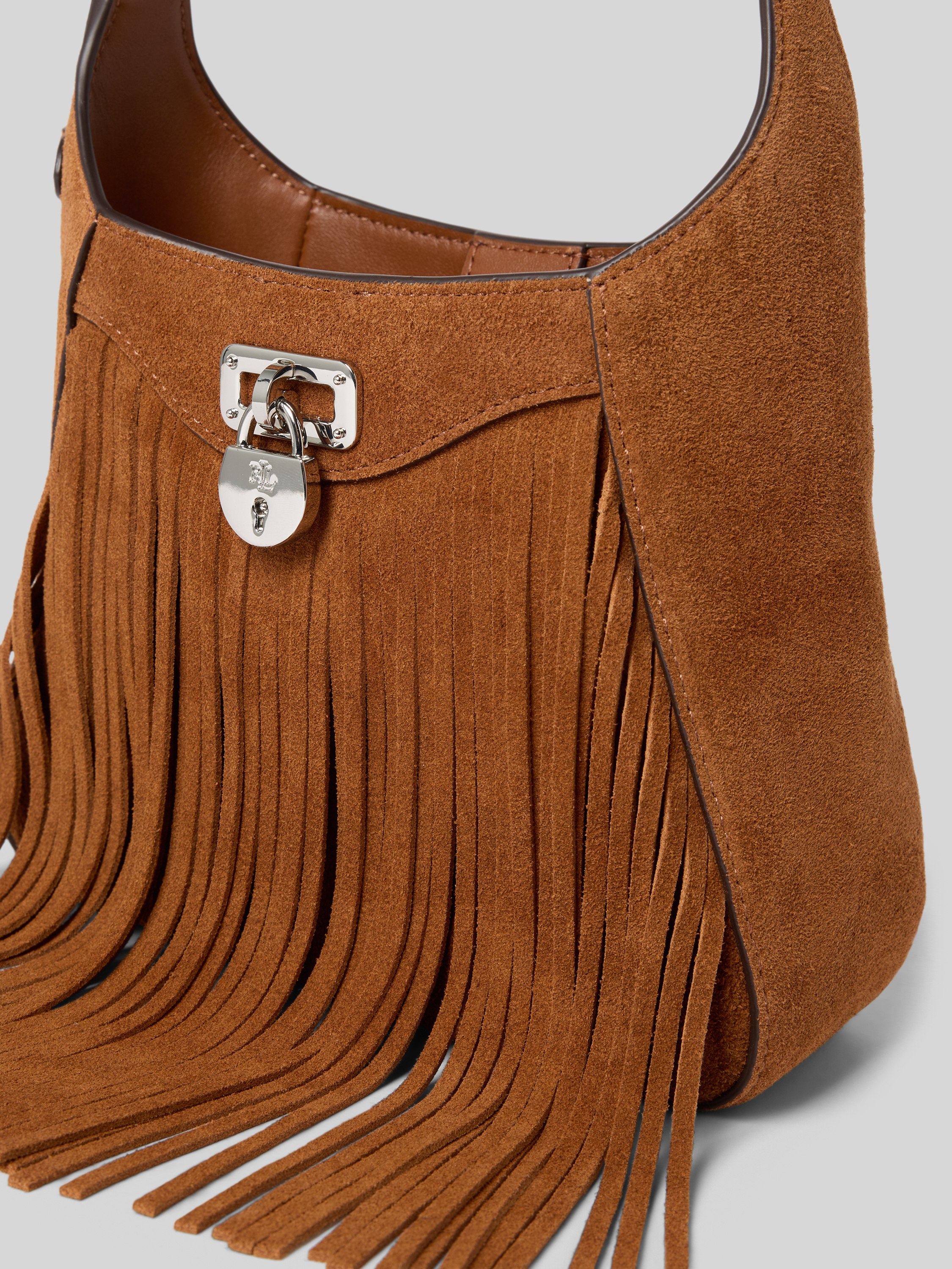 Lauren Ralph LaurenHandtasche mit Fransen und Tragehenkel in cognac