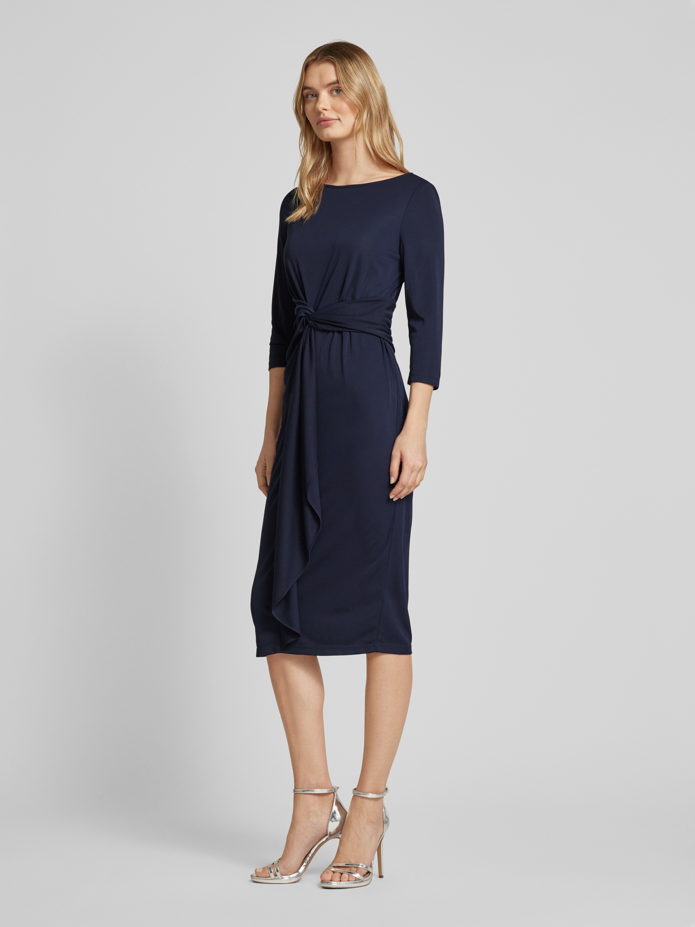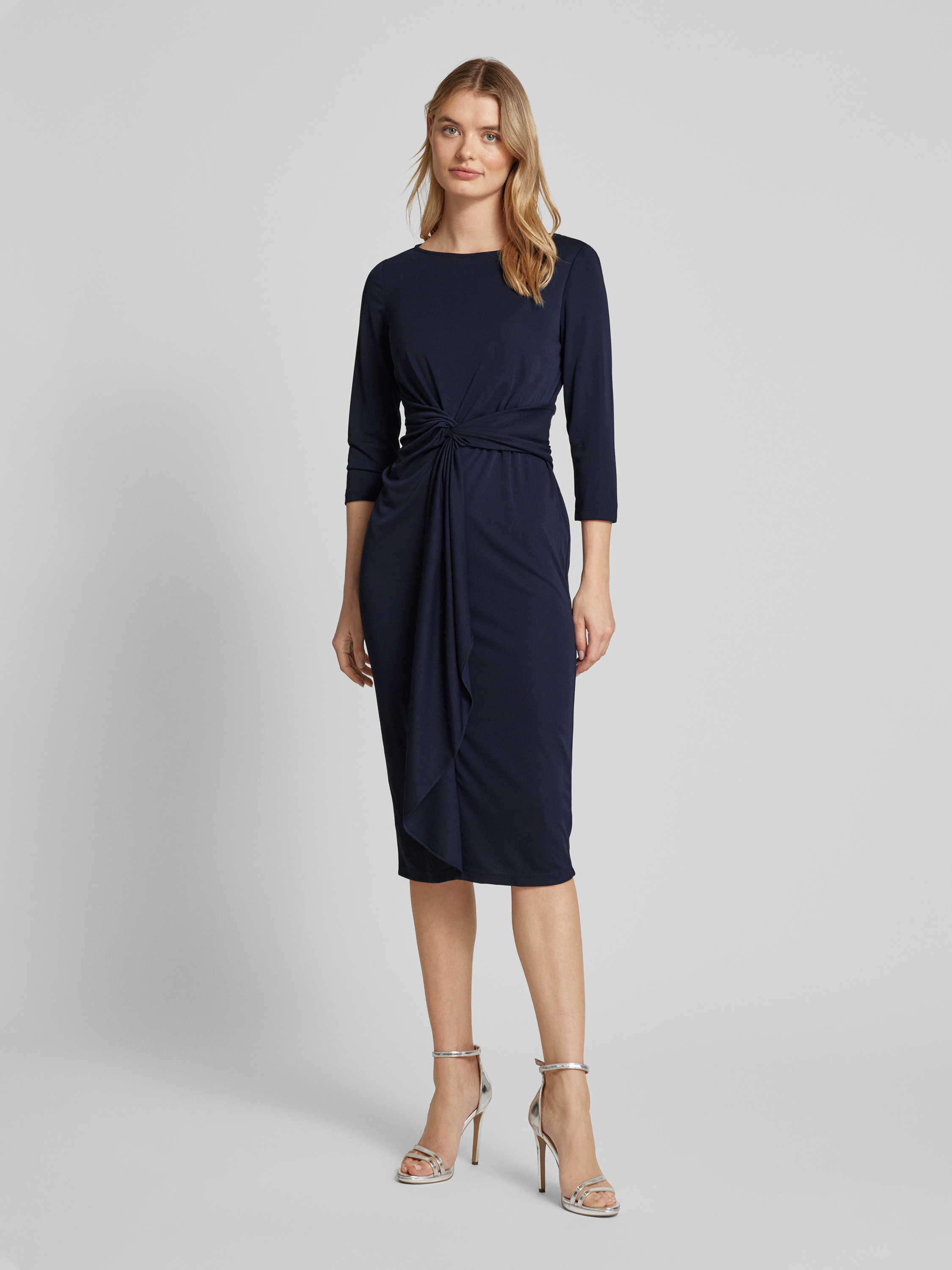 Lauren Ralph LaurenKnielanges Kleid mit Knotendetail Modell 'THALNEIA' in dunkelblau