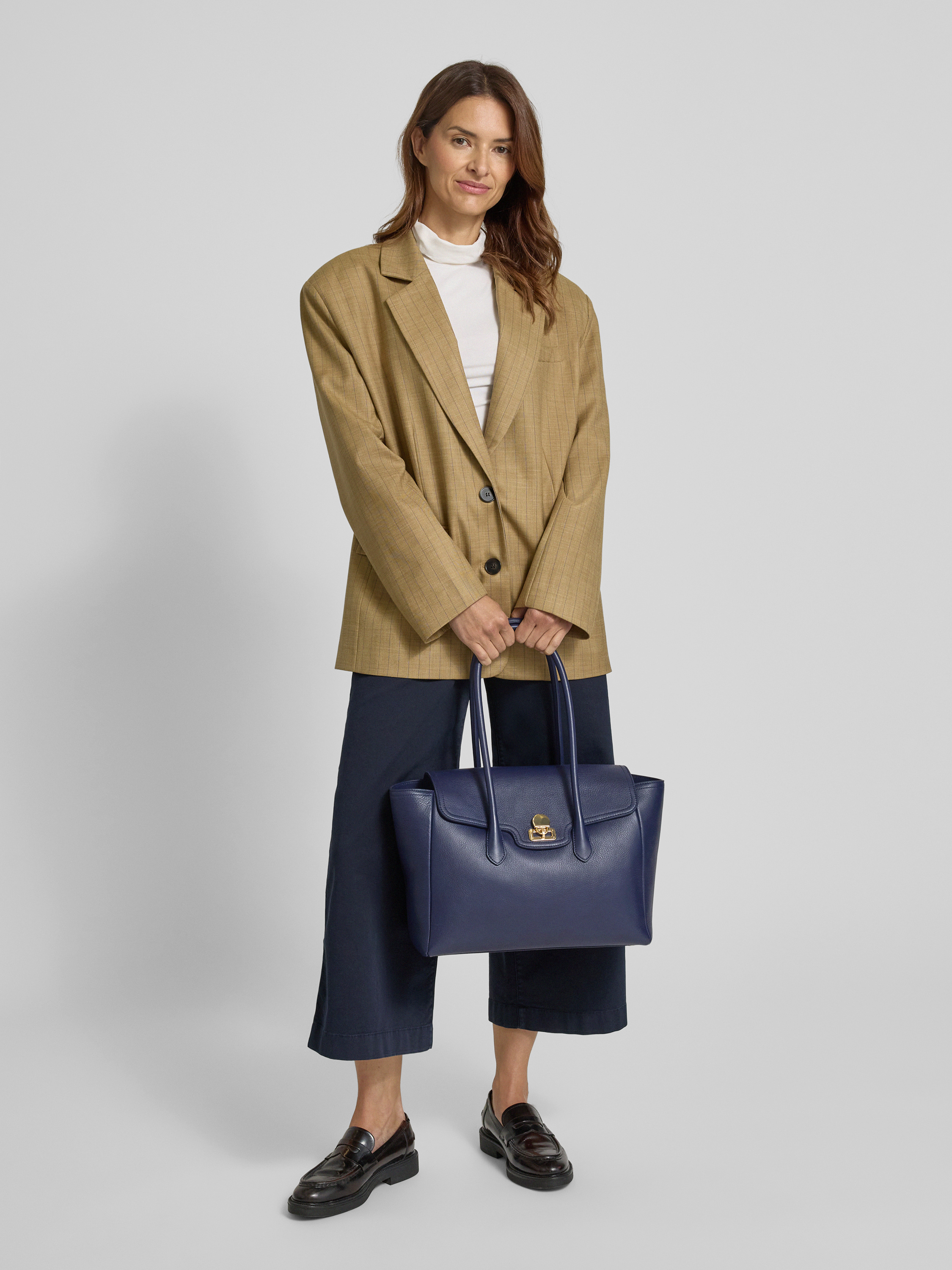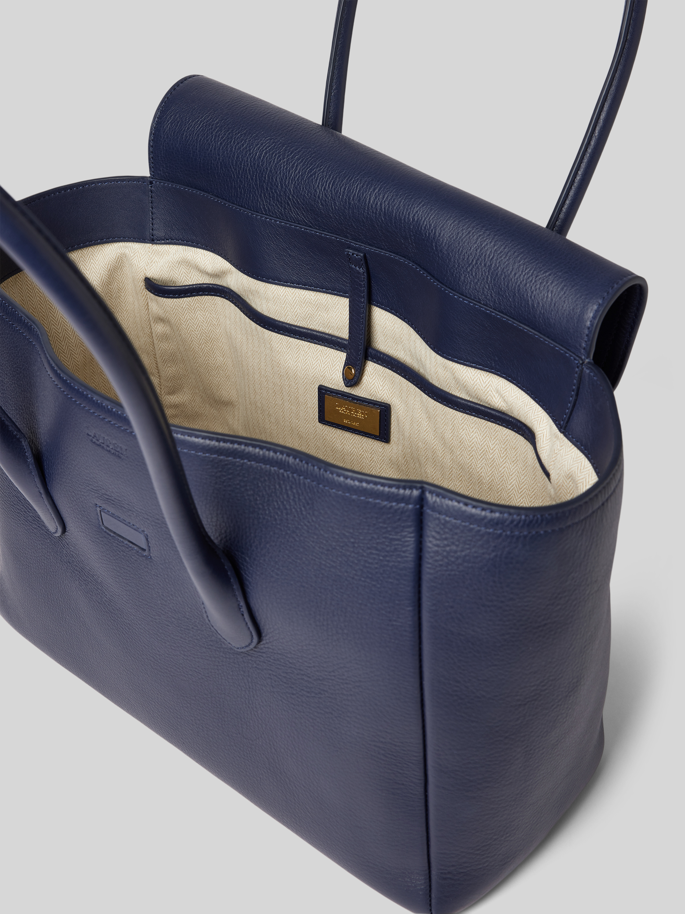 Lederhandtasche mit Label-Anhänger in marine