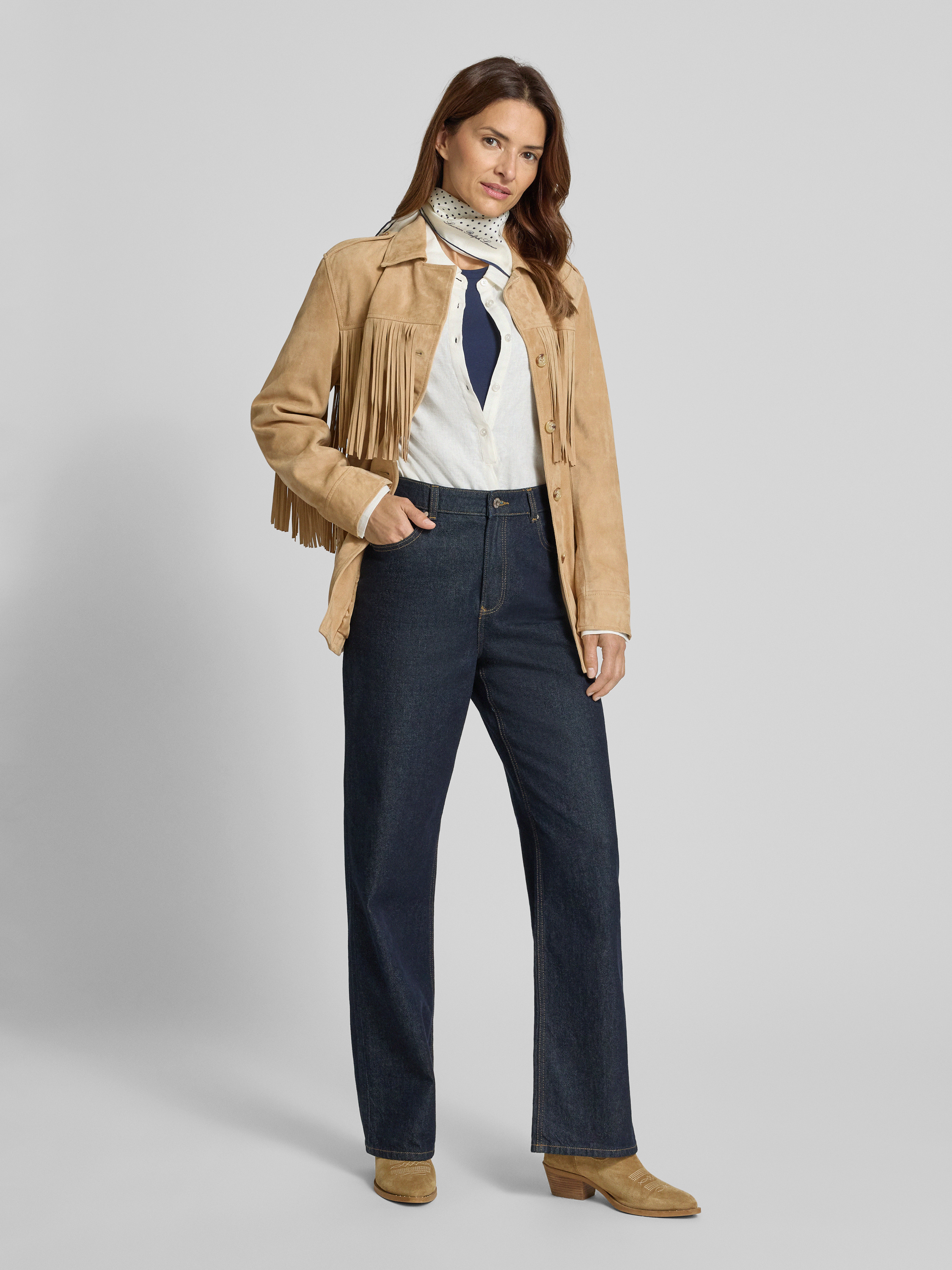 Lauren Ralph LaurenLederjacke aus Ziegenvelours mit Fransen Modell 'MAJAYA' in sand