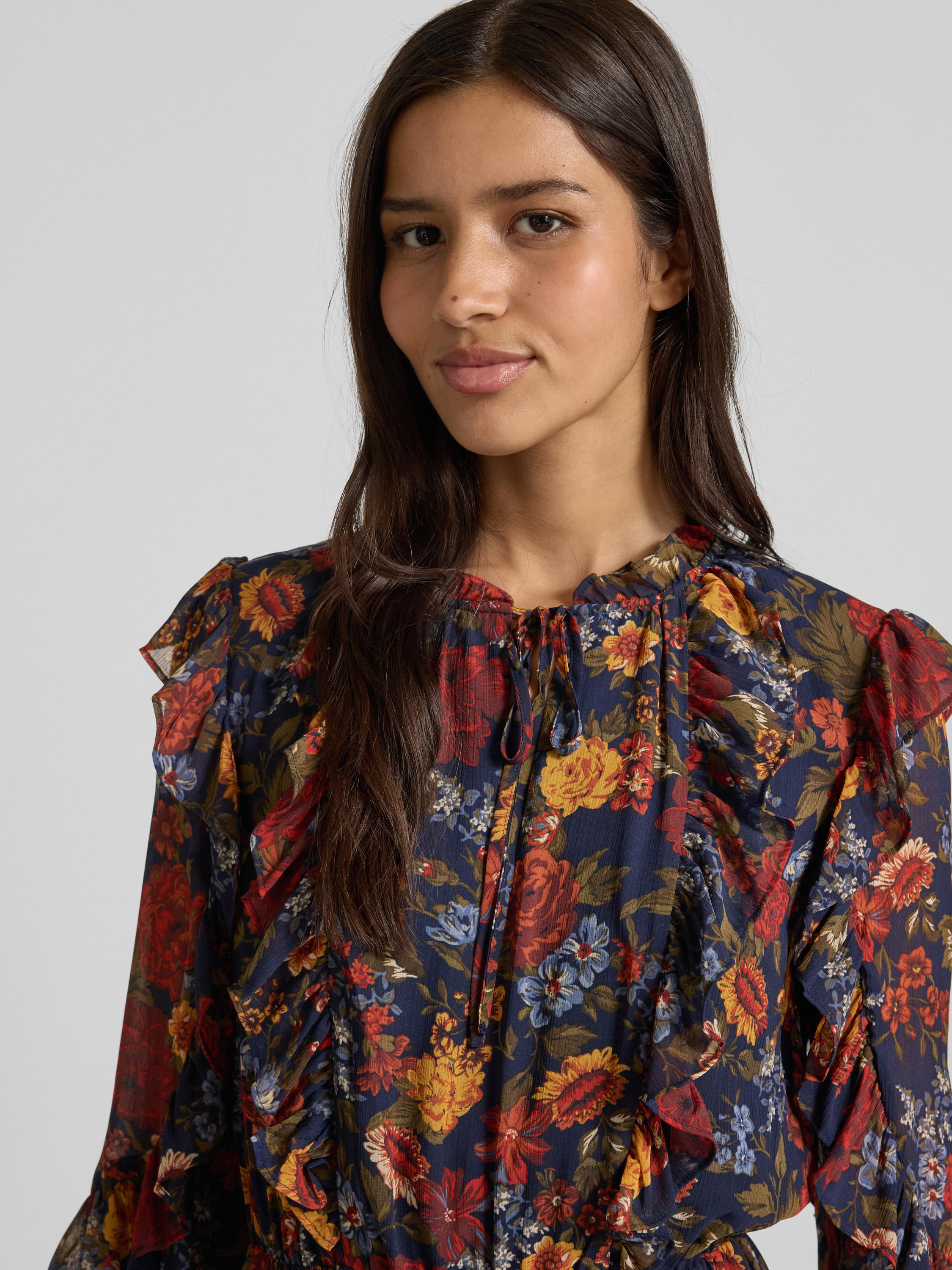 Das Maxikleid von Lauren Ralph Lauren im Modell 'DOBREY' fällt durch seinen leicht ausgestellten Schnitt und den markanten Stufen-Look auf. Ein Stehkragen sowie Ballonärmel sorgen für eine dezente Akzentuierung, während Volants dem Gesamtbild einen sanften Schwung verleihen. So entsteht ein angenehmes Tragegefühl, das Bewegung und Komfort in den Alltag bringt.
