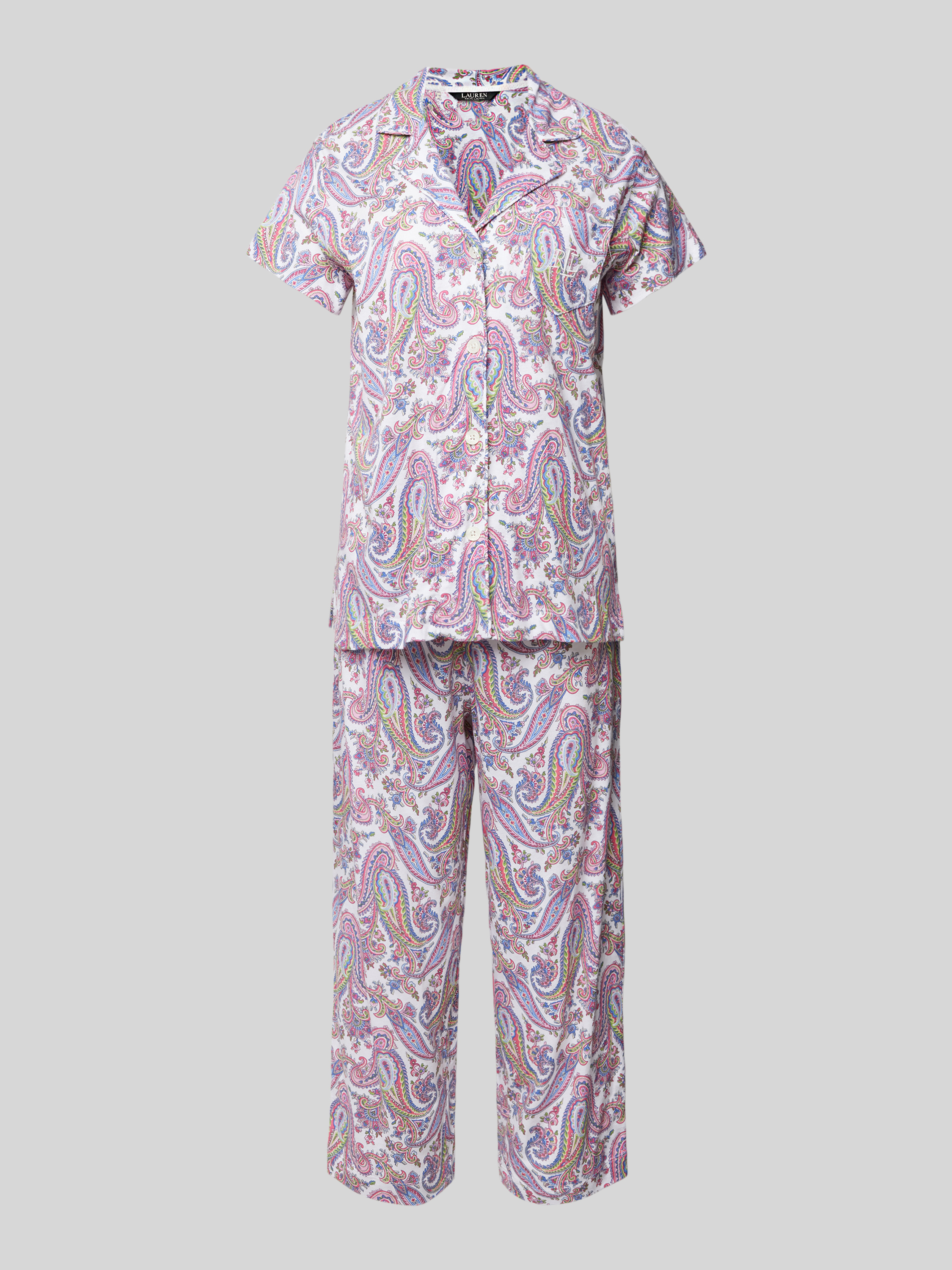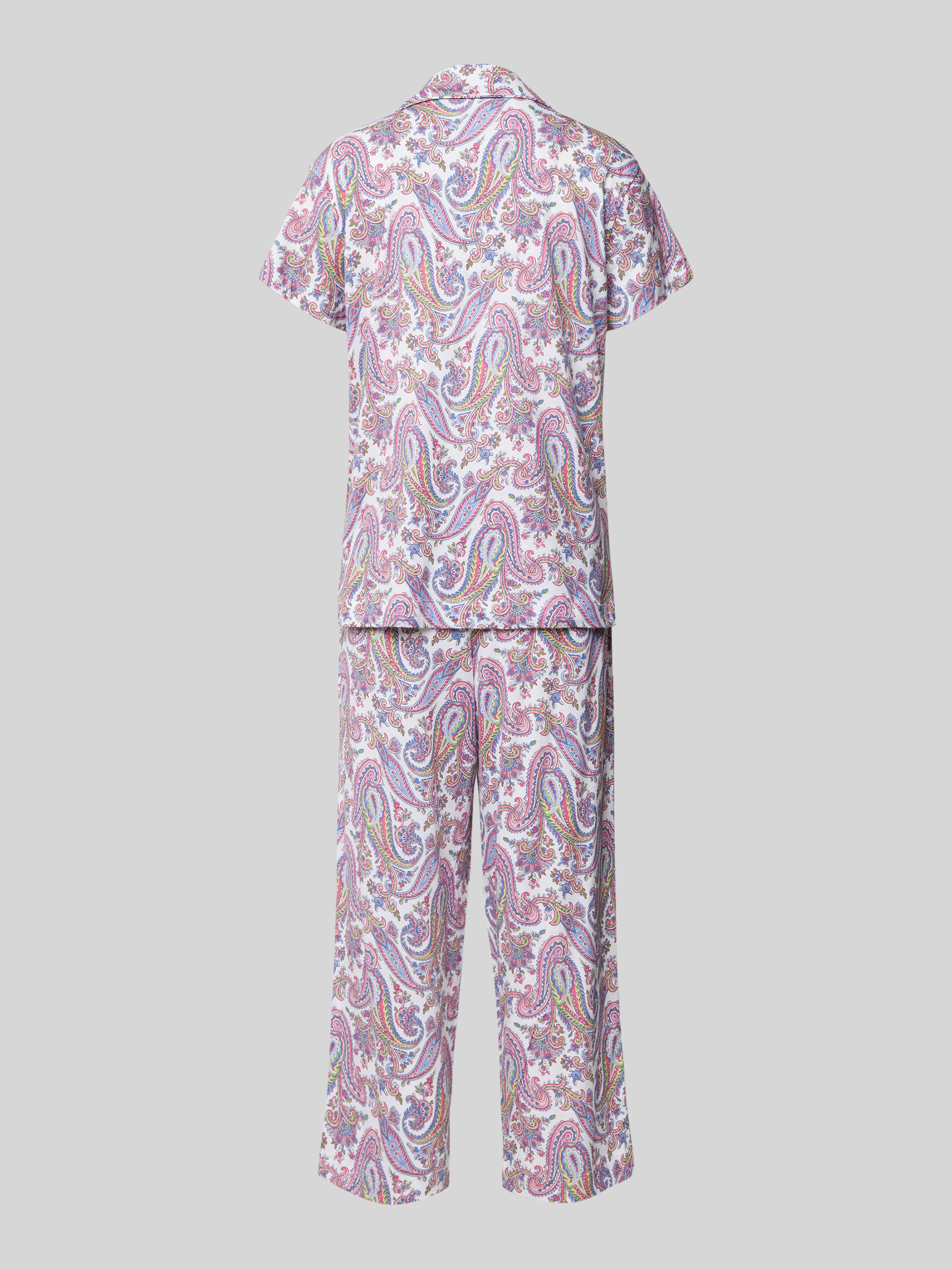 Der Damen Pyjama von Lauren Ralph Lauren, gefertigt aus einem Baumwoll-Viskose-Mix, bietet durch seinen geraden Schnitt und den Resortkragen eine angenehme Passform. Das Oberteil mit halblangen Ärmeln und die Hose mit Tunnelzugbund sorgen für Komfort. Ideal für entspannte Nächte.