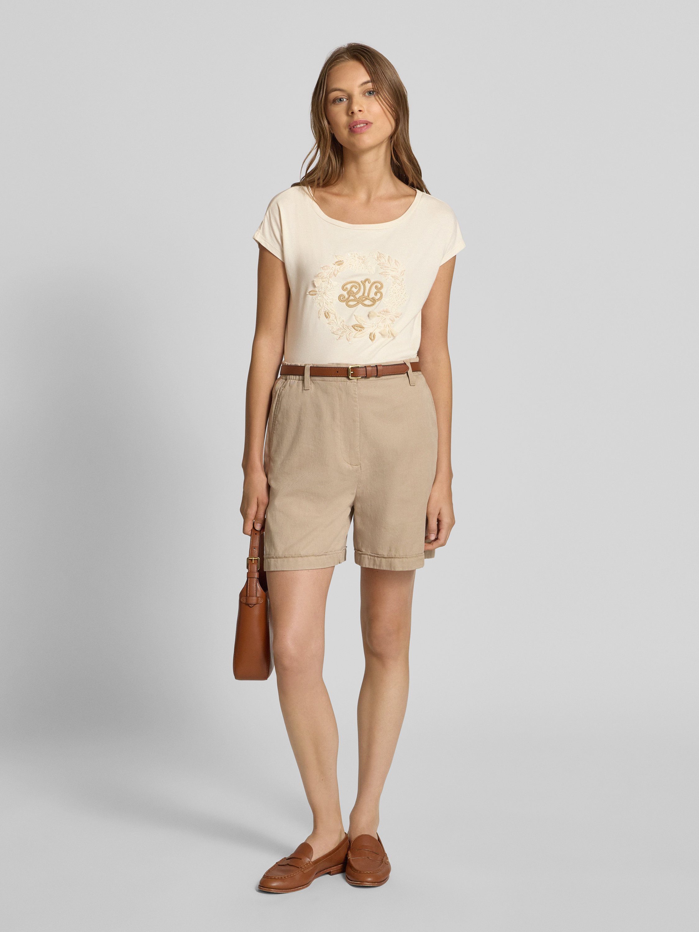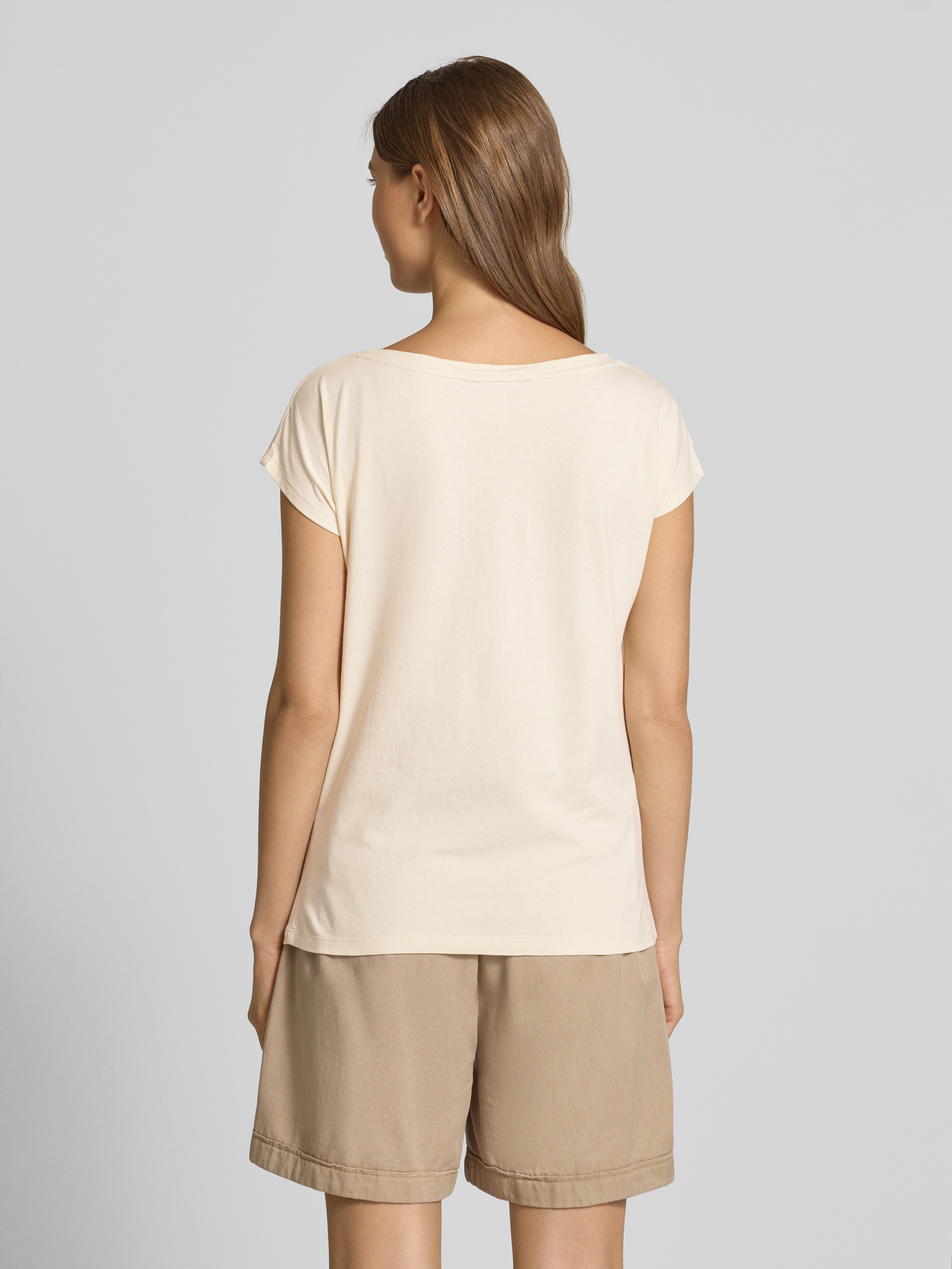 Lauren Ralph LaurenT-Shirt mit geripptem U-Boot-Ausschnitt Modell 'GRIETA' in offwhite melange