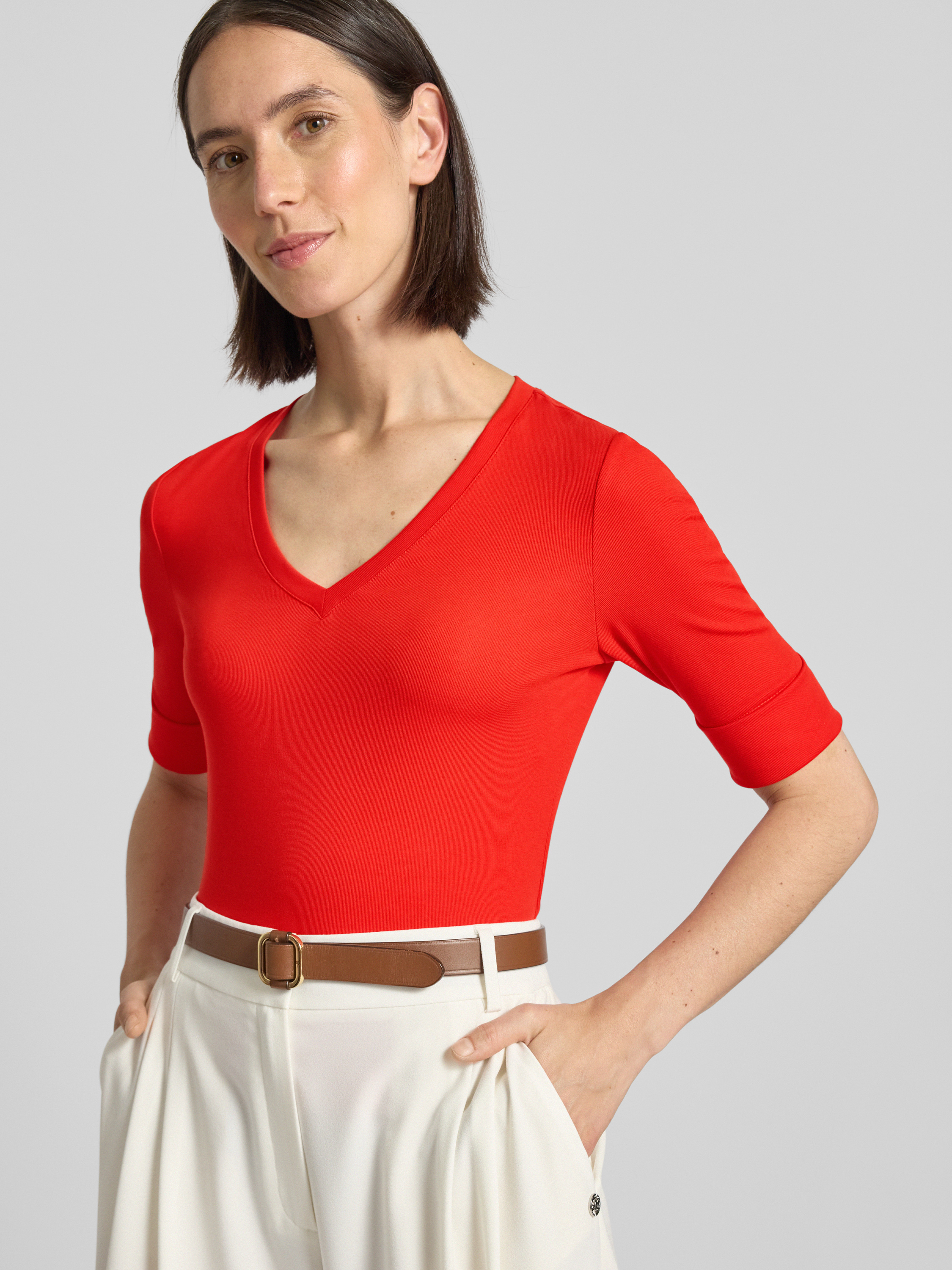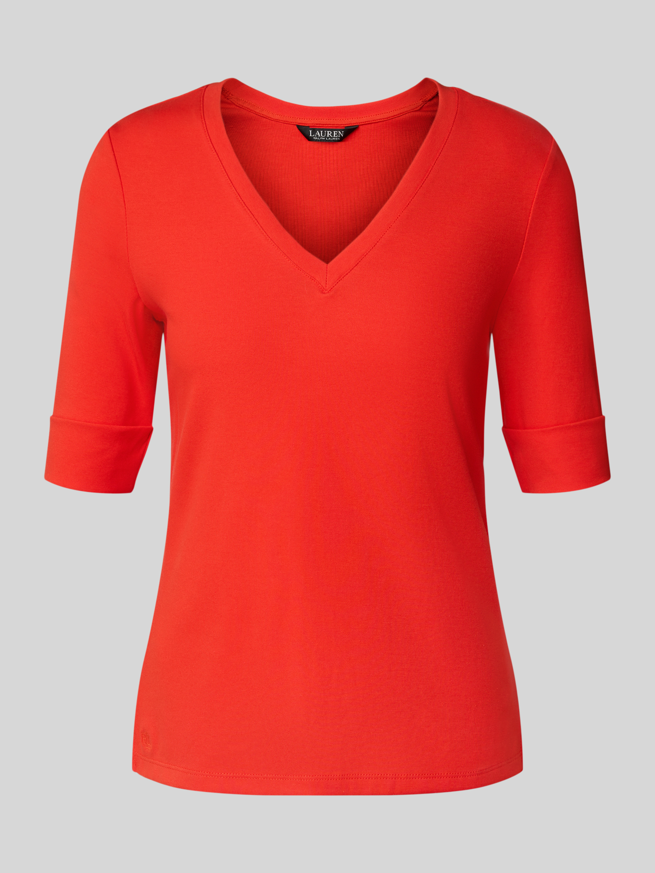 Lauren Ralph LaurenT-Shirt mit V-Ausschnitt Modell 'JUDY' in hellrot melange