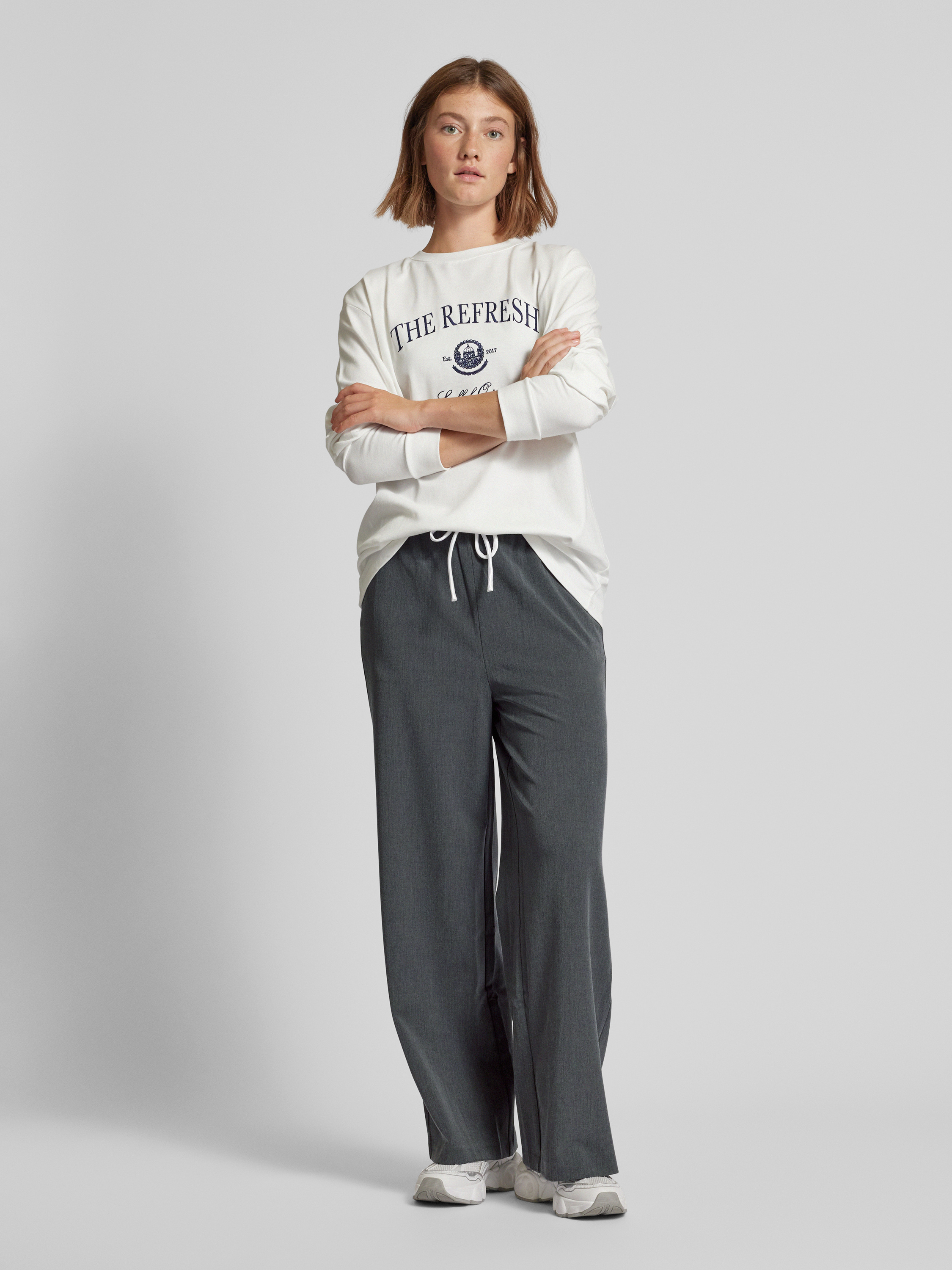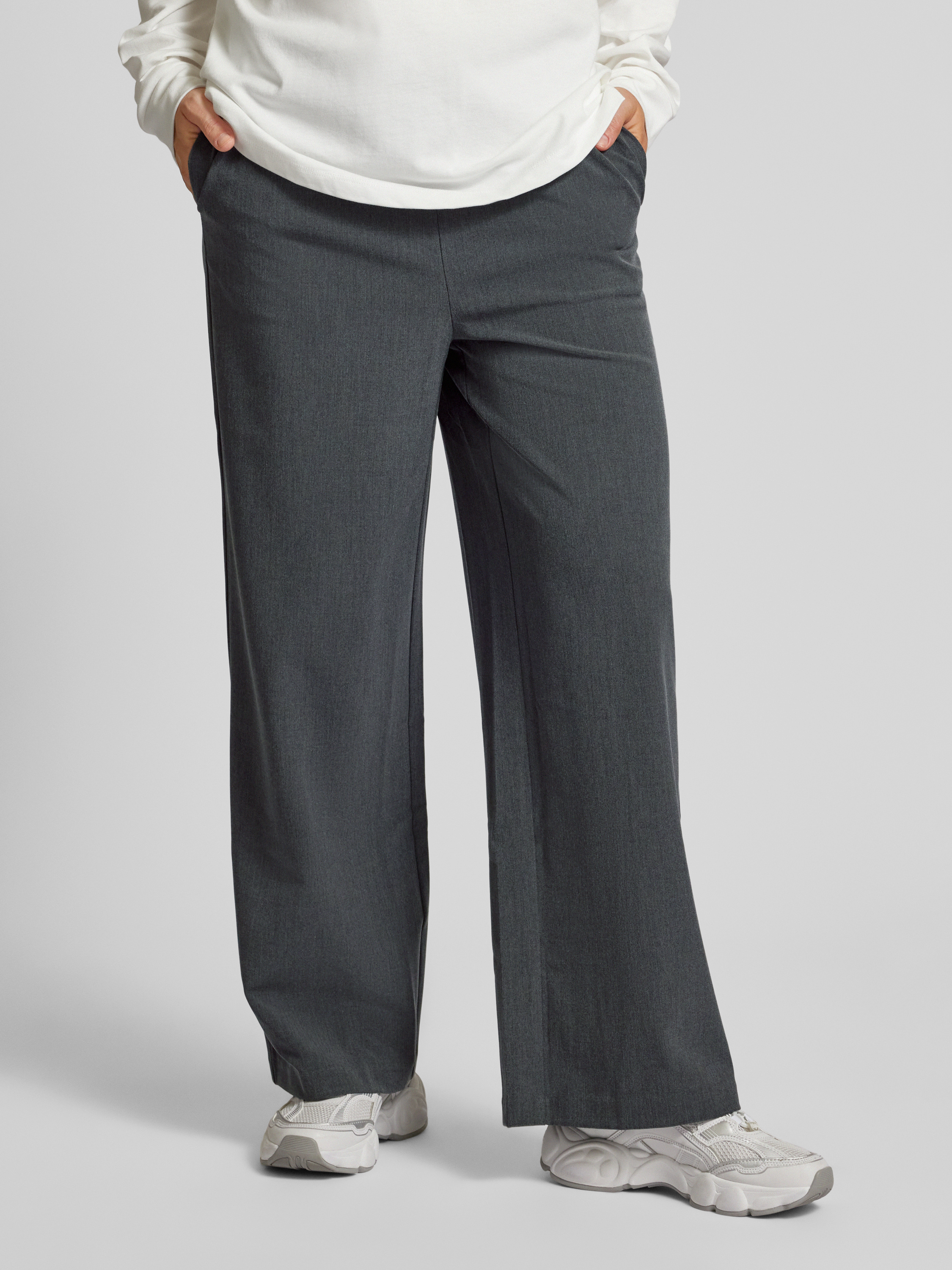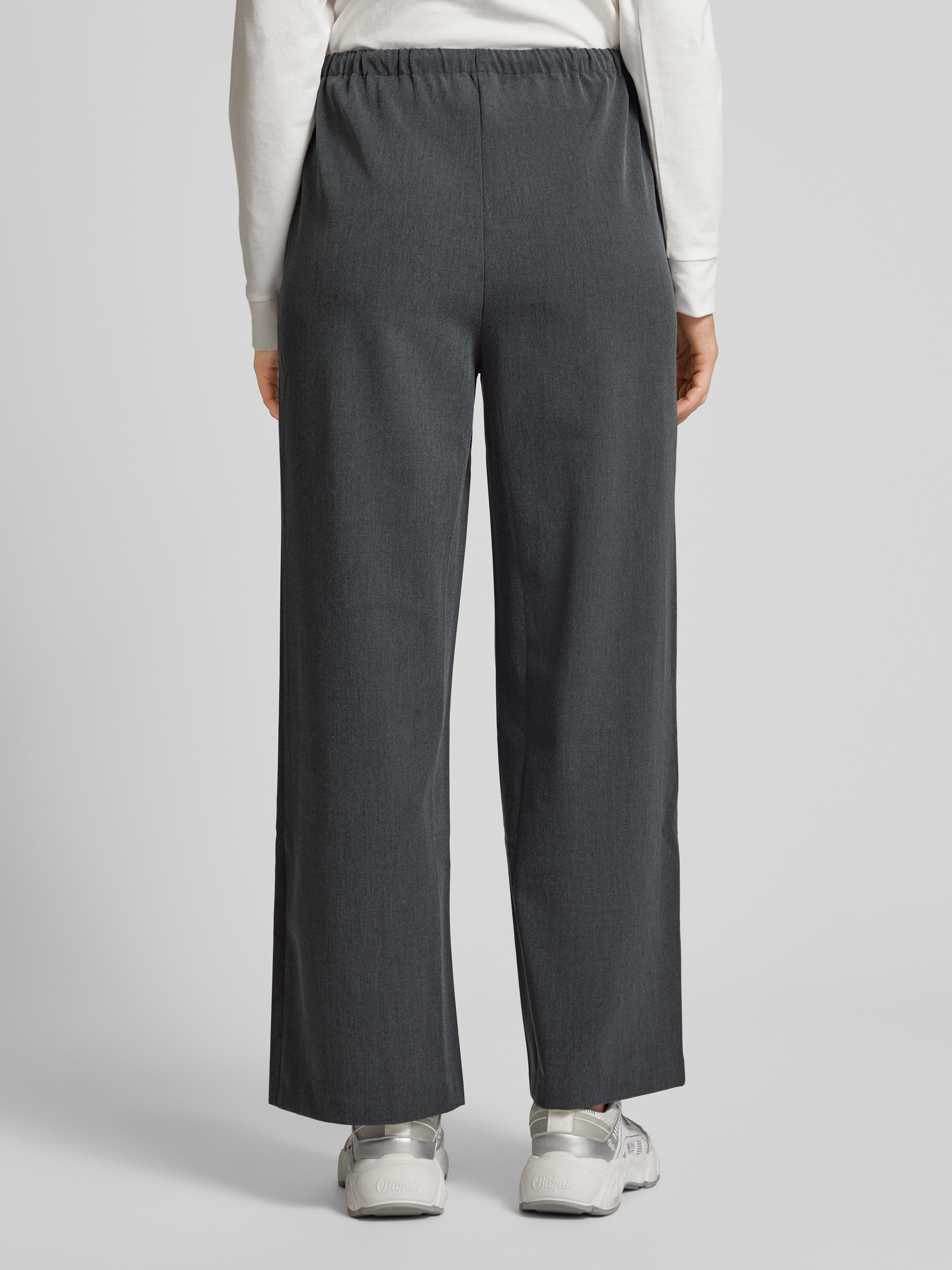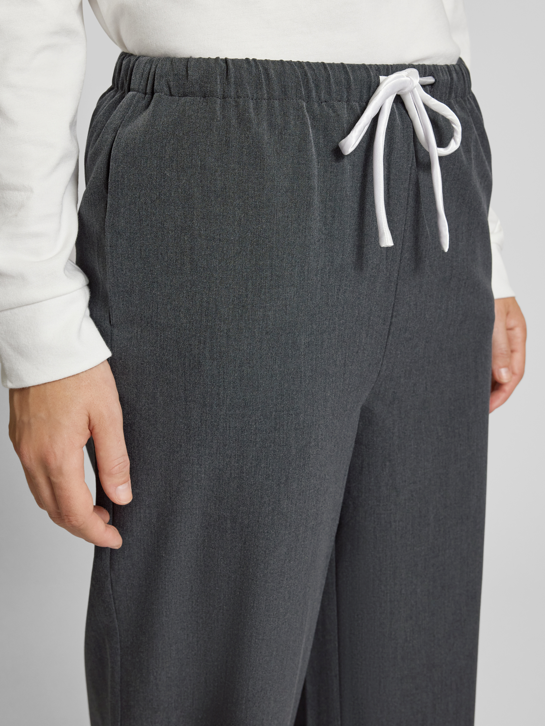 LeGer by Lena GerckeWide Leg Stoffhose mit Kordelzug Modell 'Kim' in mittelgrau melange