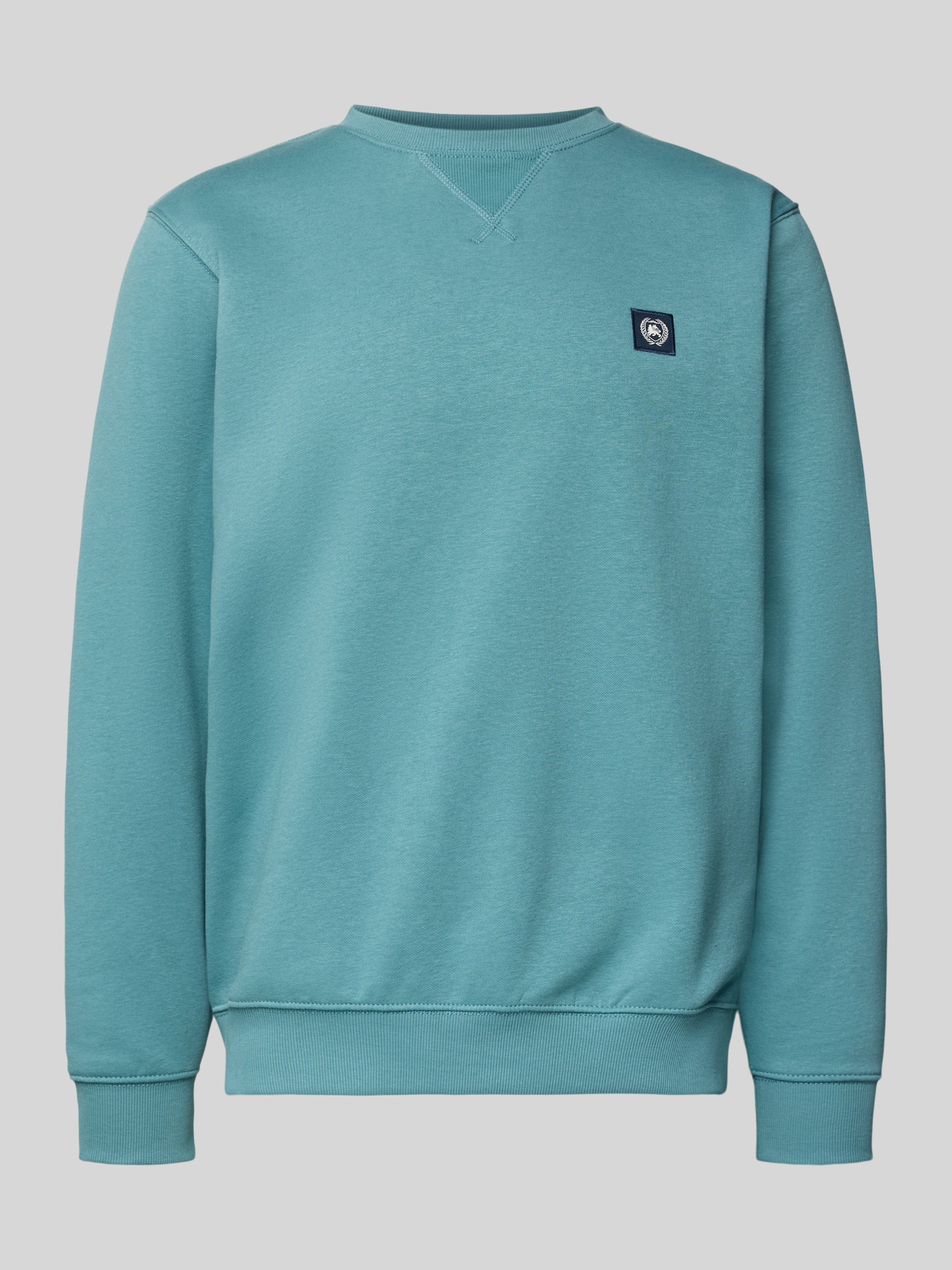 LerrosSweatshirt mit Rundhalsausschnitt und Label-Patch in tuerkis