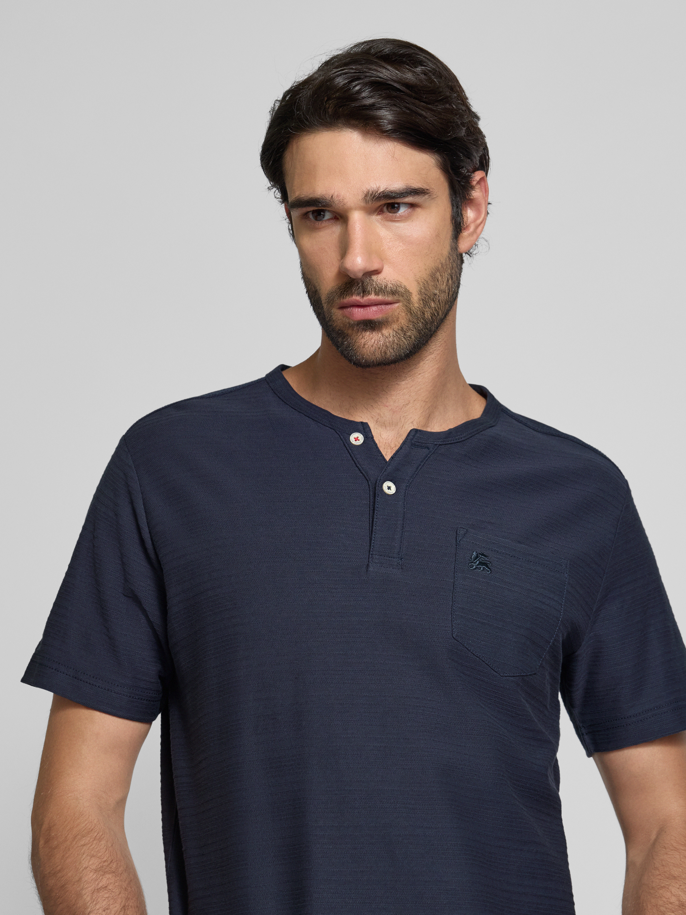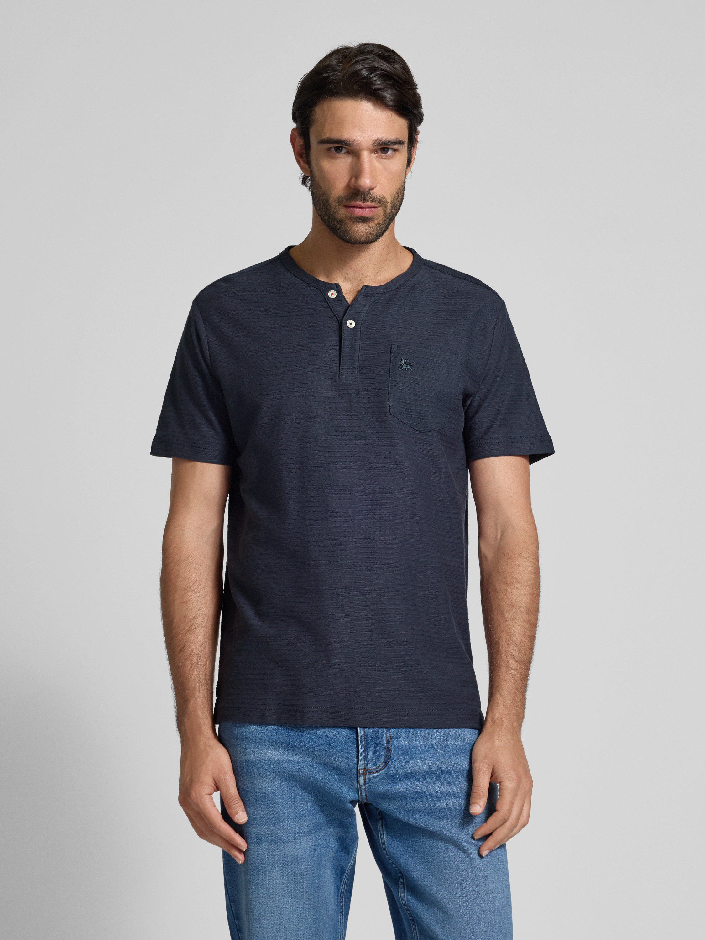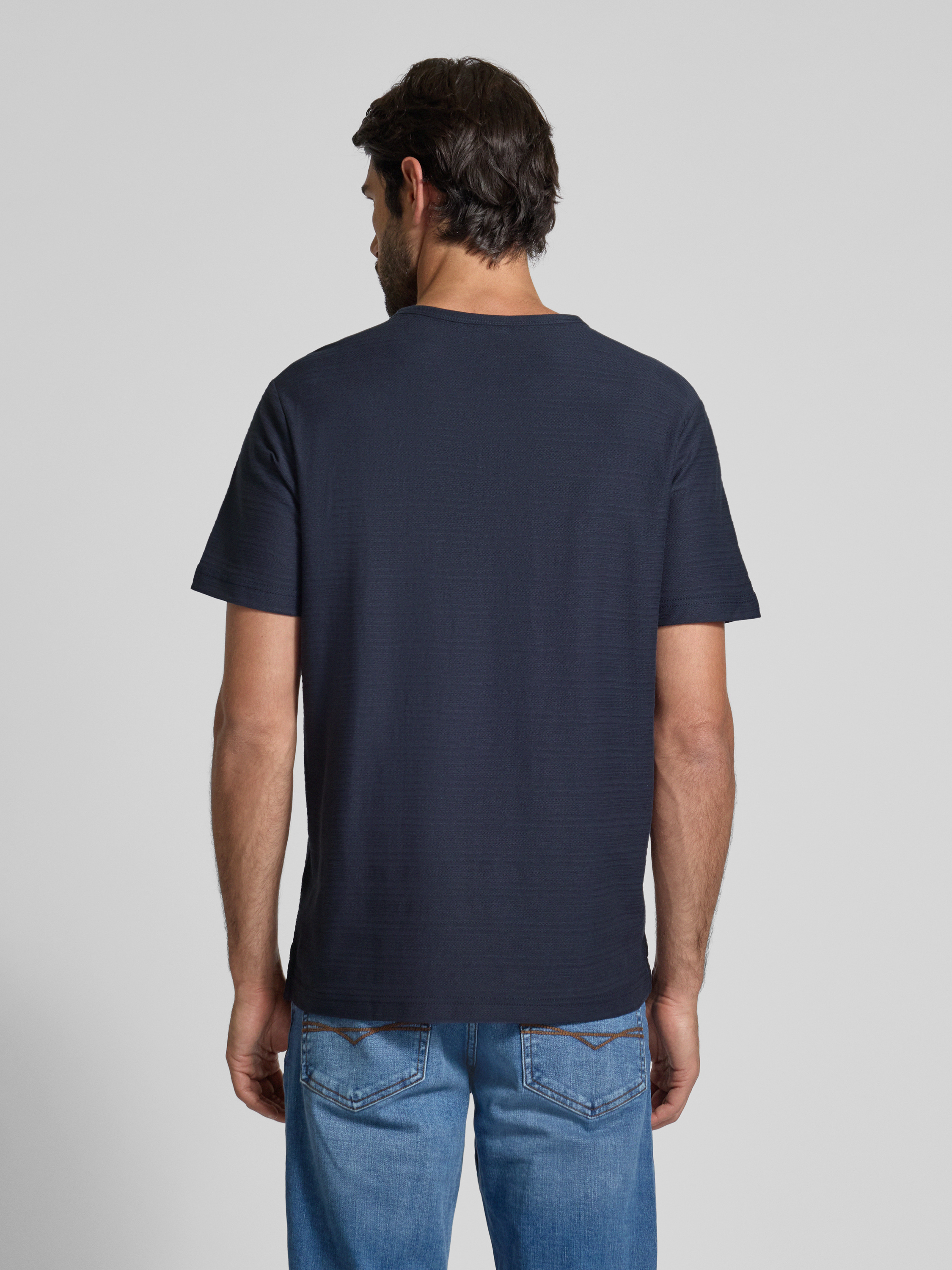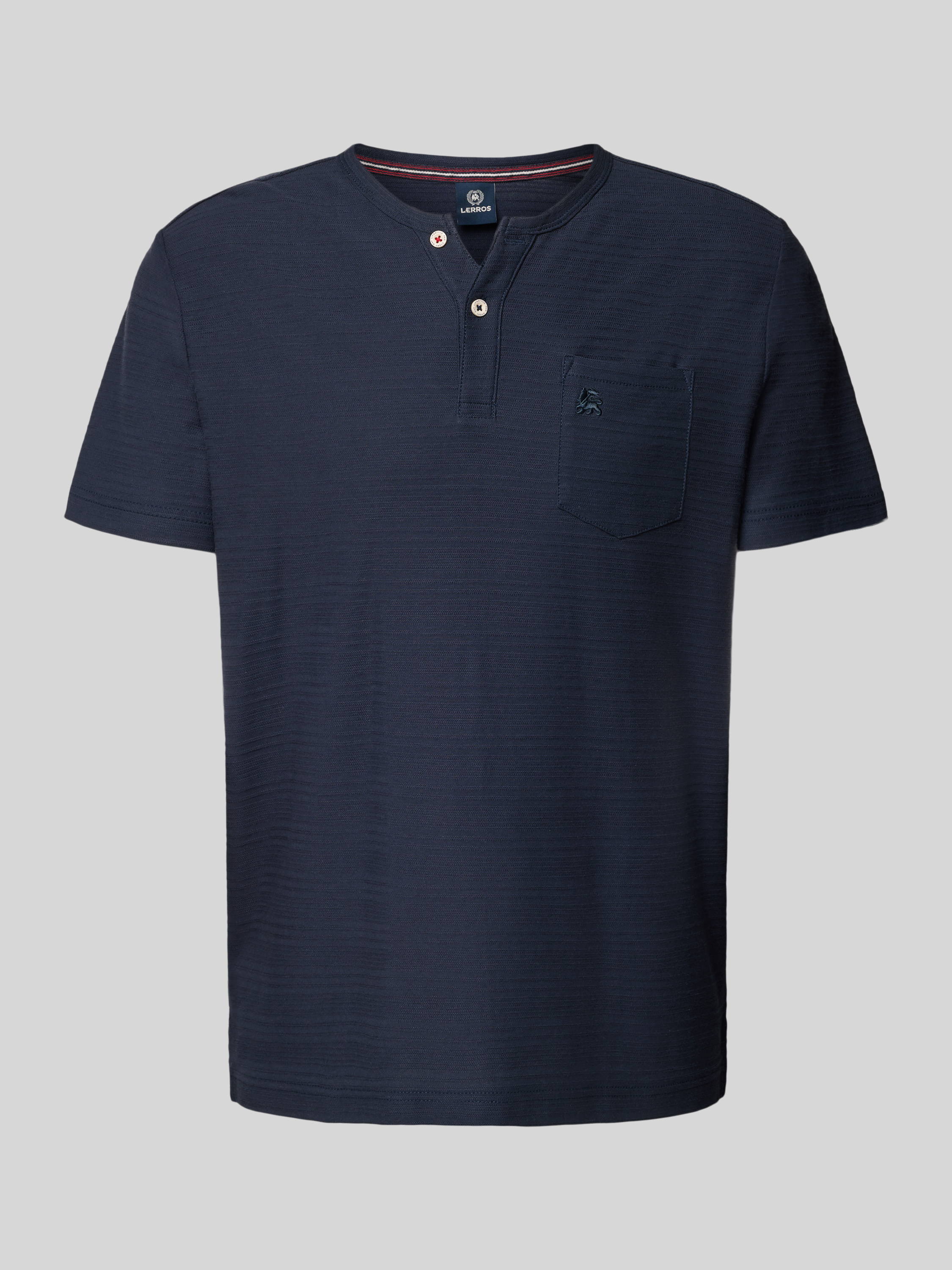 Das Herren T-Shirt von Lerros, Modell 'SERAFINO', kombiniert ein ansprechendes Strukturmuster mit einem klassischen Serafino-Ausschnitt. Gefertigt aus reiner Baumwolle, bietet es einen angenehmen Regular Fit. Die dezente Brusttasche und das Label-Stitching verleihen dem Design eine interessante Note.