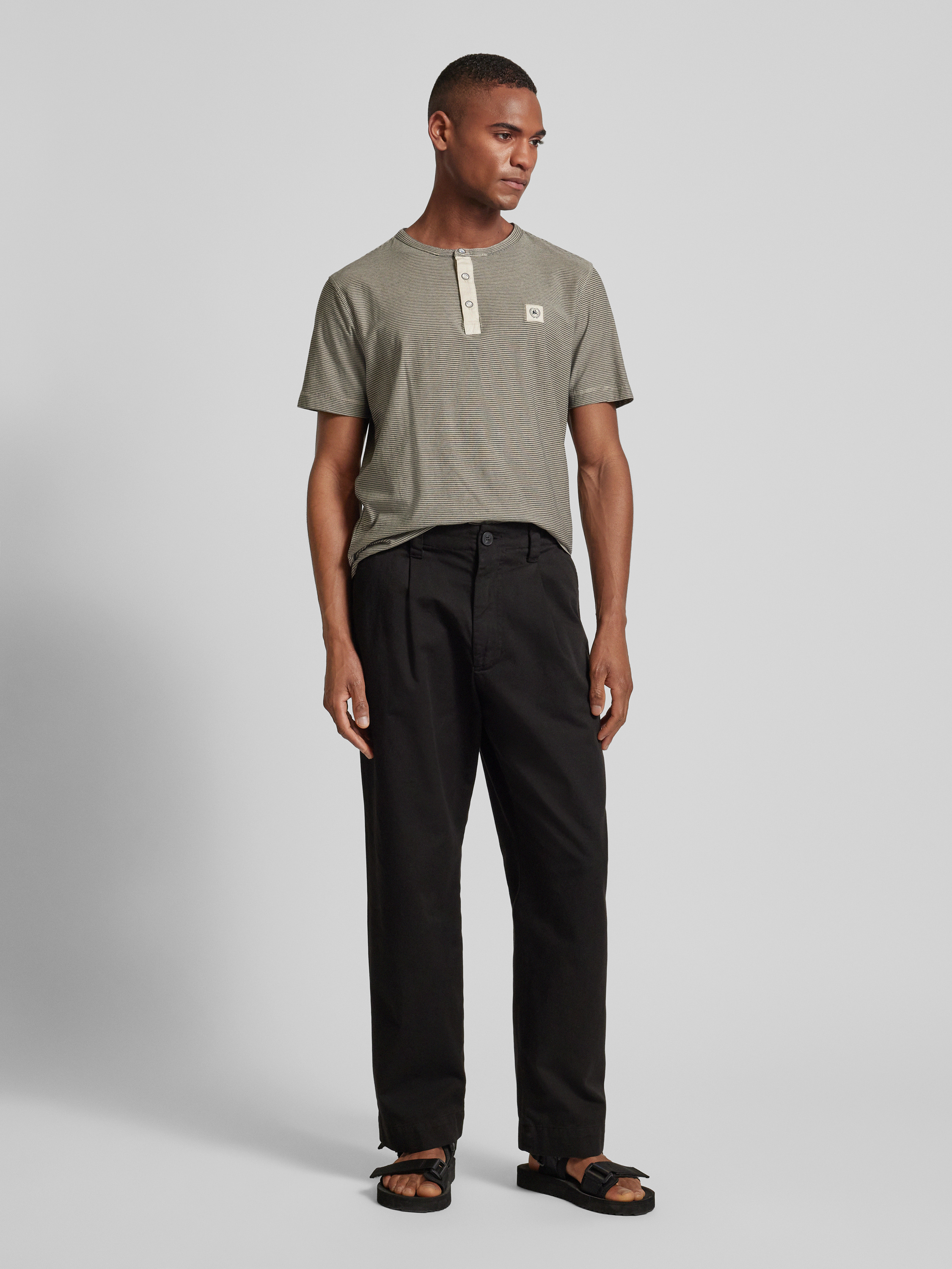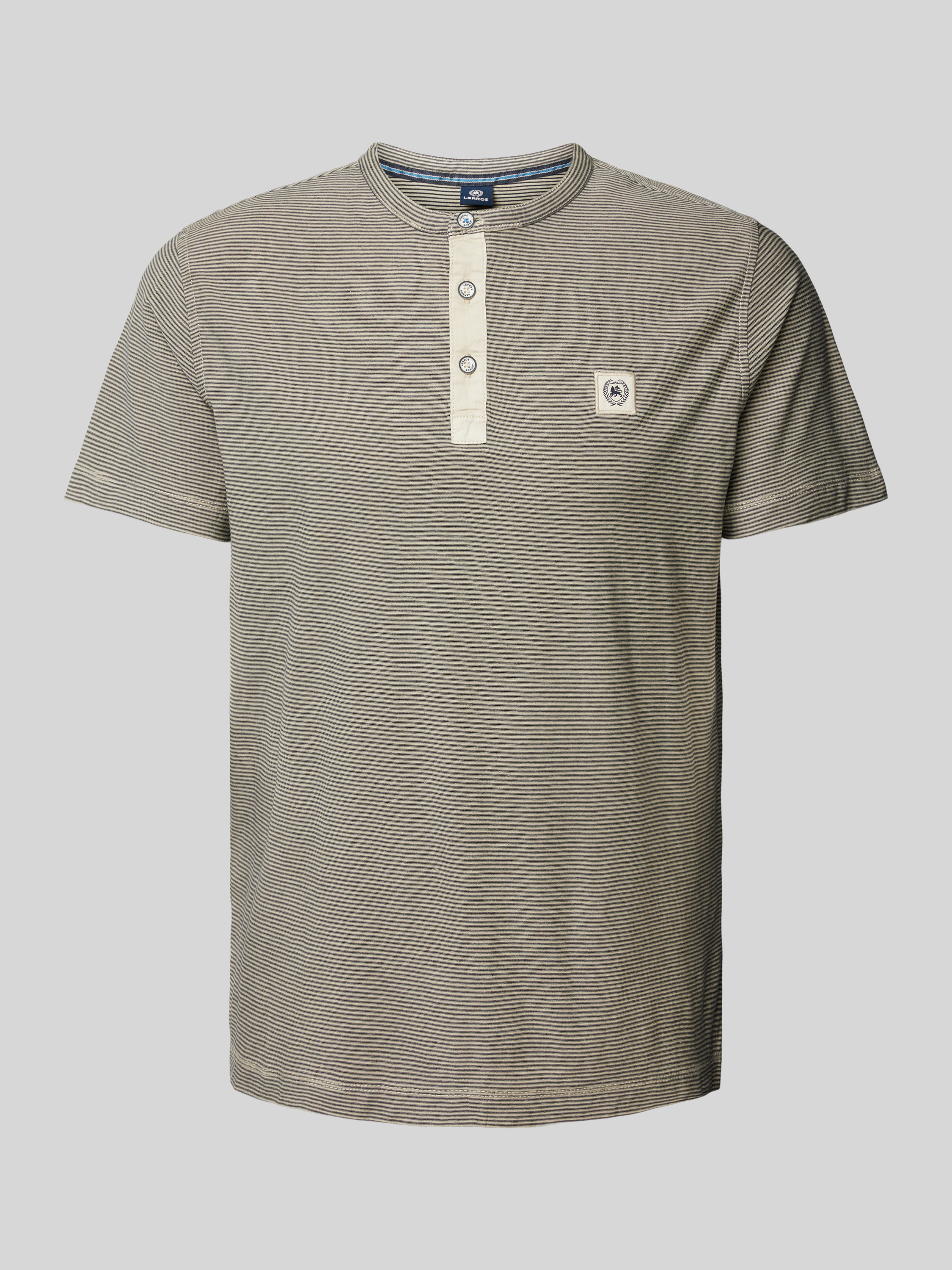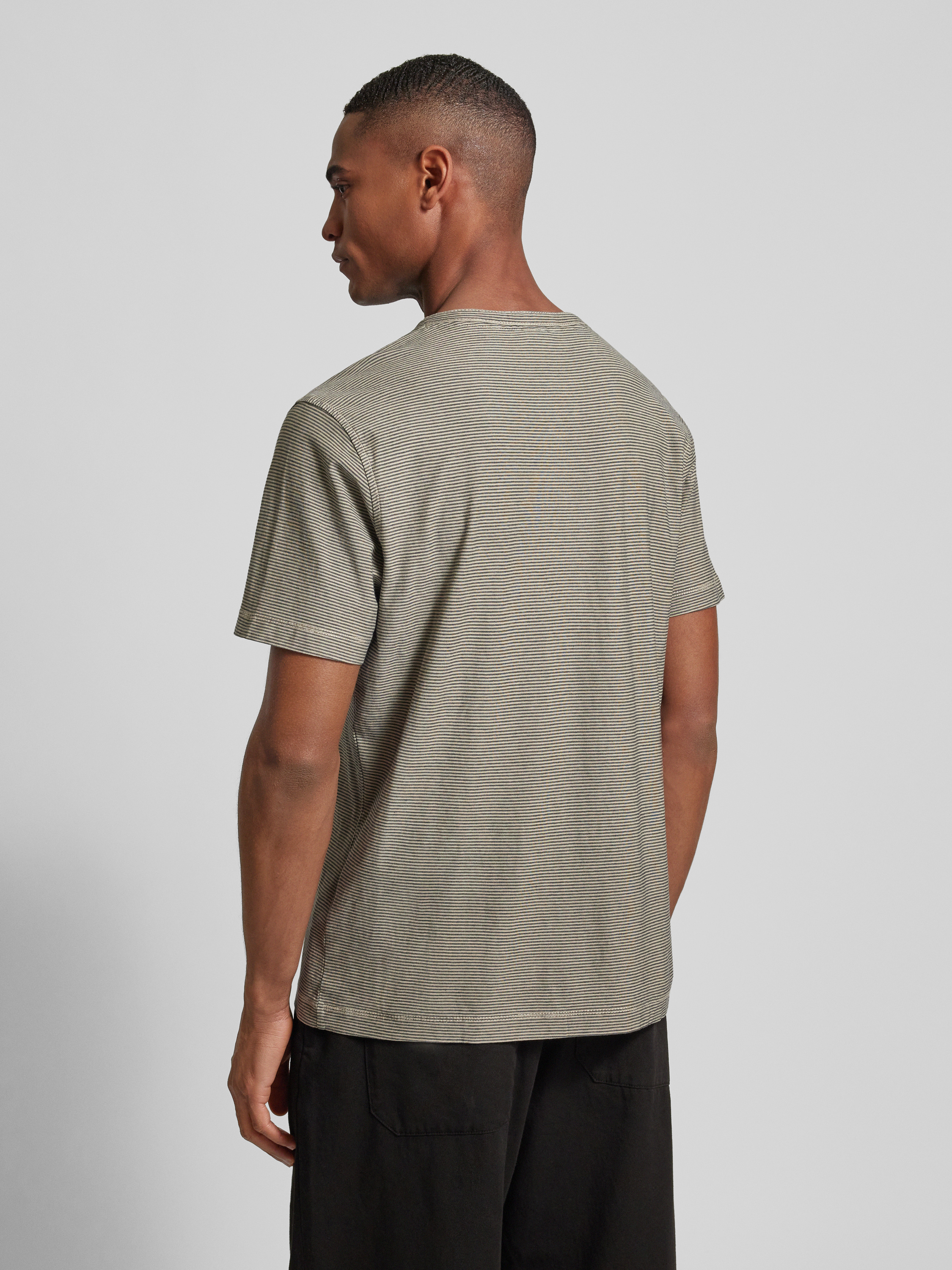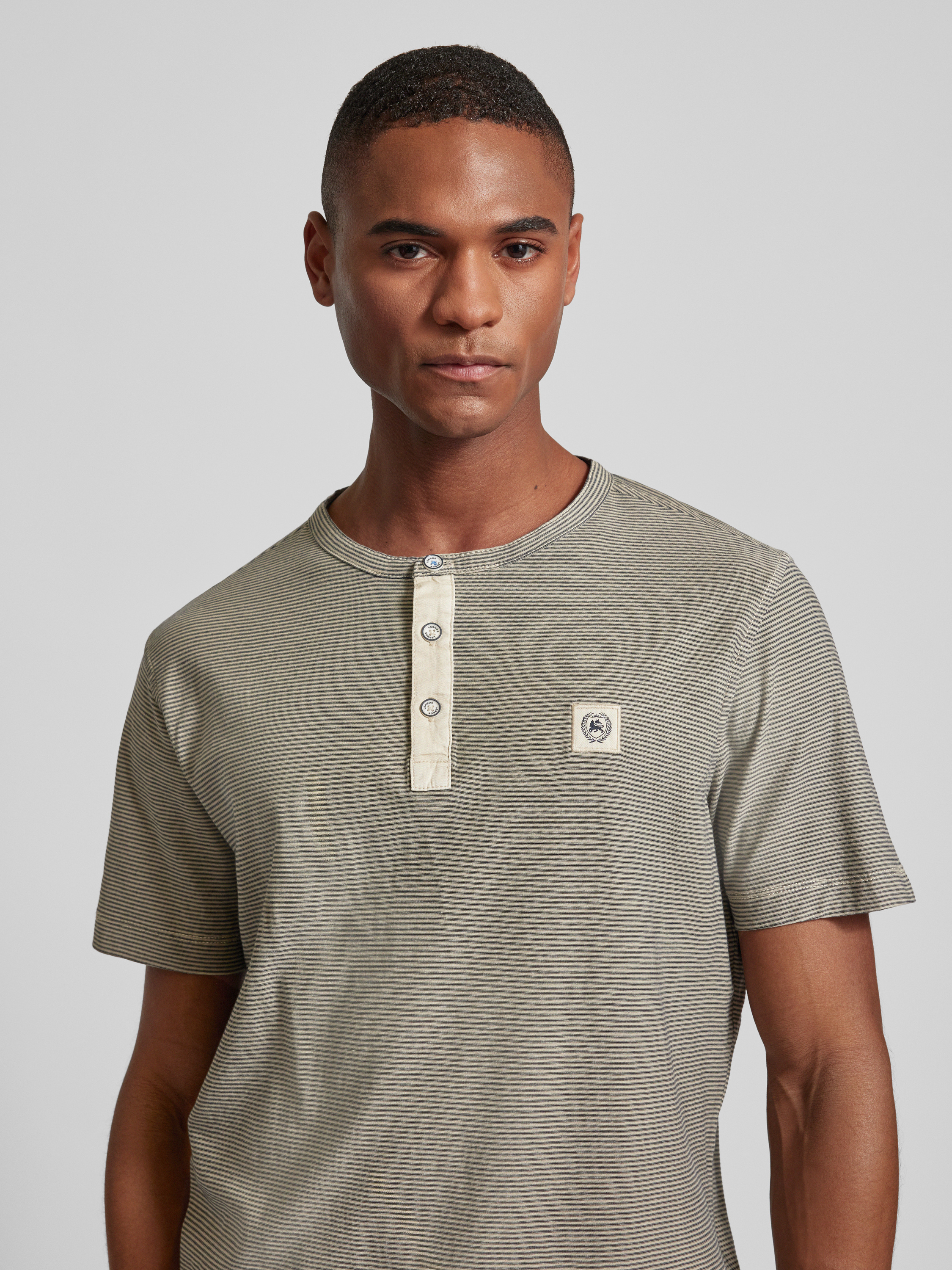 Das Herren T-Shirt von LERROS aus reiner Baumwolle kombiniert Komfort mit einem ansprechenden Streifenmuster. Der gerade Schnitt sorgt für eine bequeme Passform, während der Serafino-Ausschnitt einen lässigen Akzent setzt. Ein dezentes Label-Patch rundet das Design stilvoll ab.
