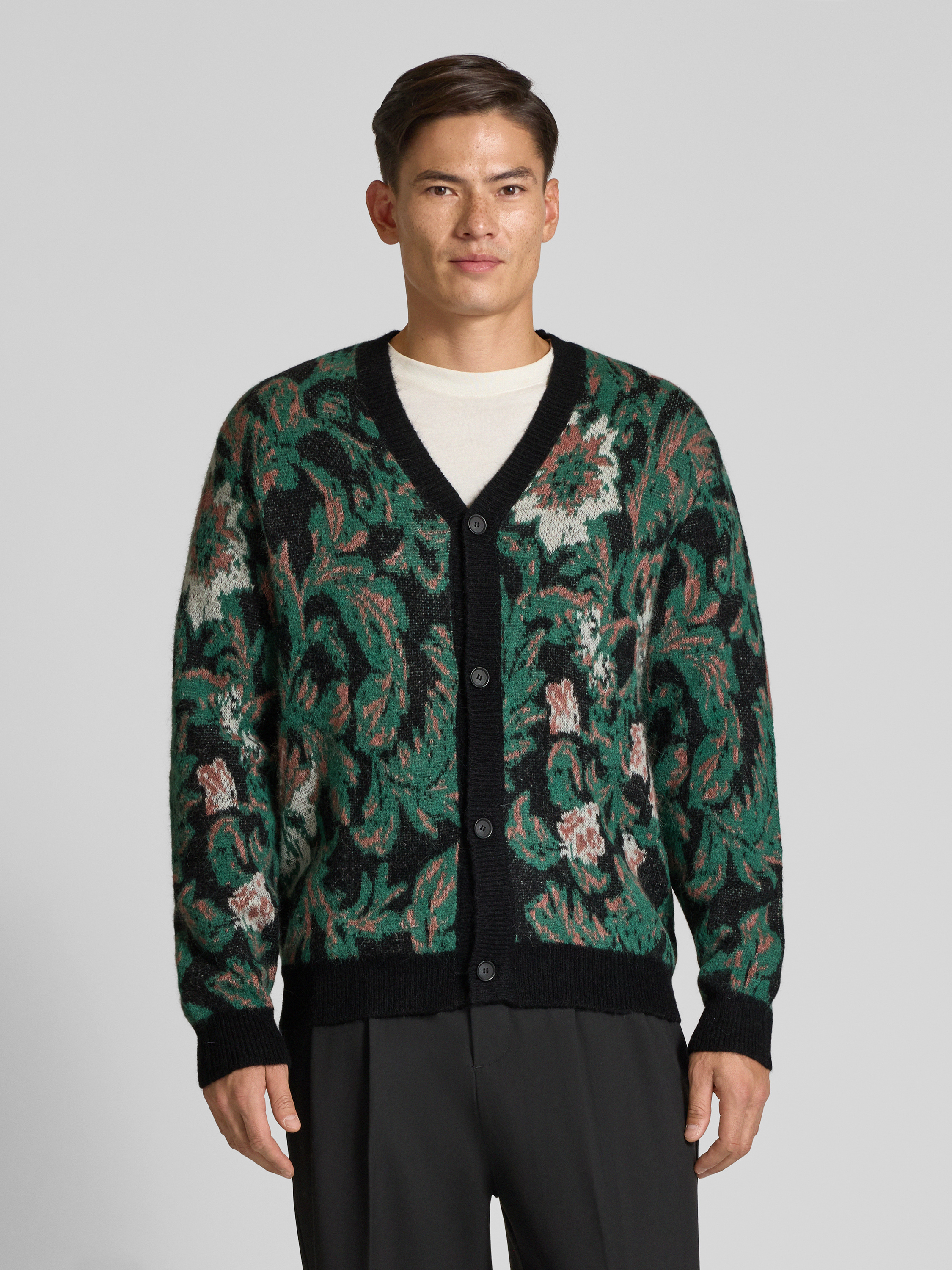 Die Herrenjacke Alex von Les Deux fällt durch ihren floralen Allover-Print angenehm ins Auge und liegt durch den Regular Fit entspannt am Körper. Der Materialmix mit Woll- und Alpaka-Anteil sorgt für ein angenehmes Tragegefühl, das an kühleren Tagen zuverlässig wärmt. Ein V-Ausschnitt und elastische Abschlüsse runden den vielseitigen Look ab.