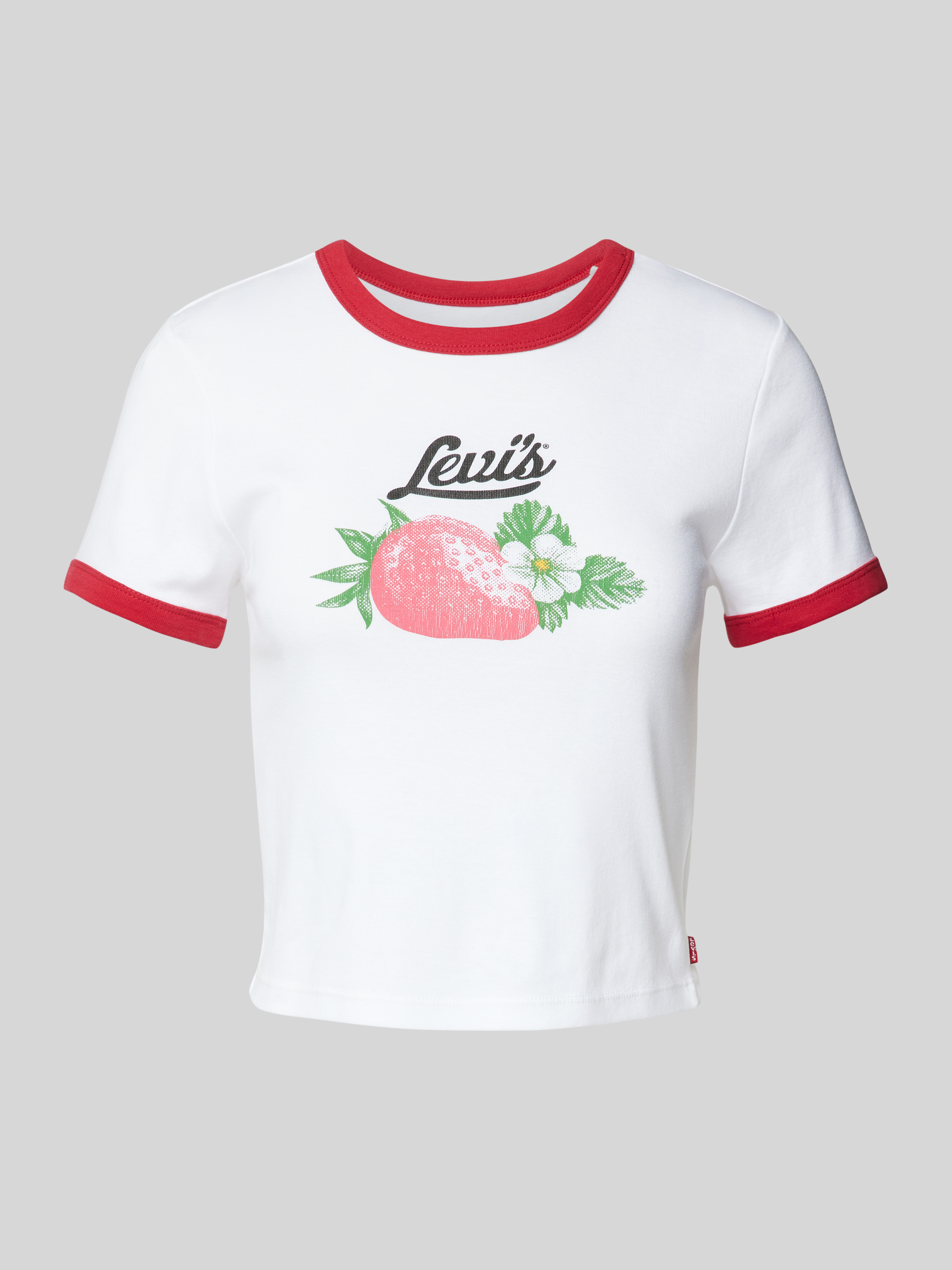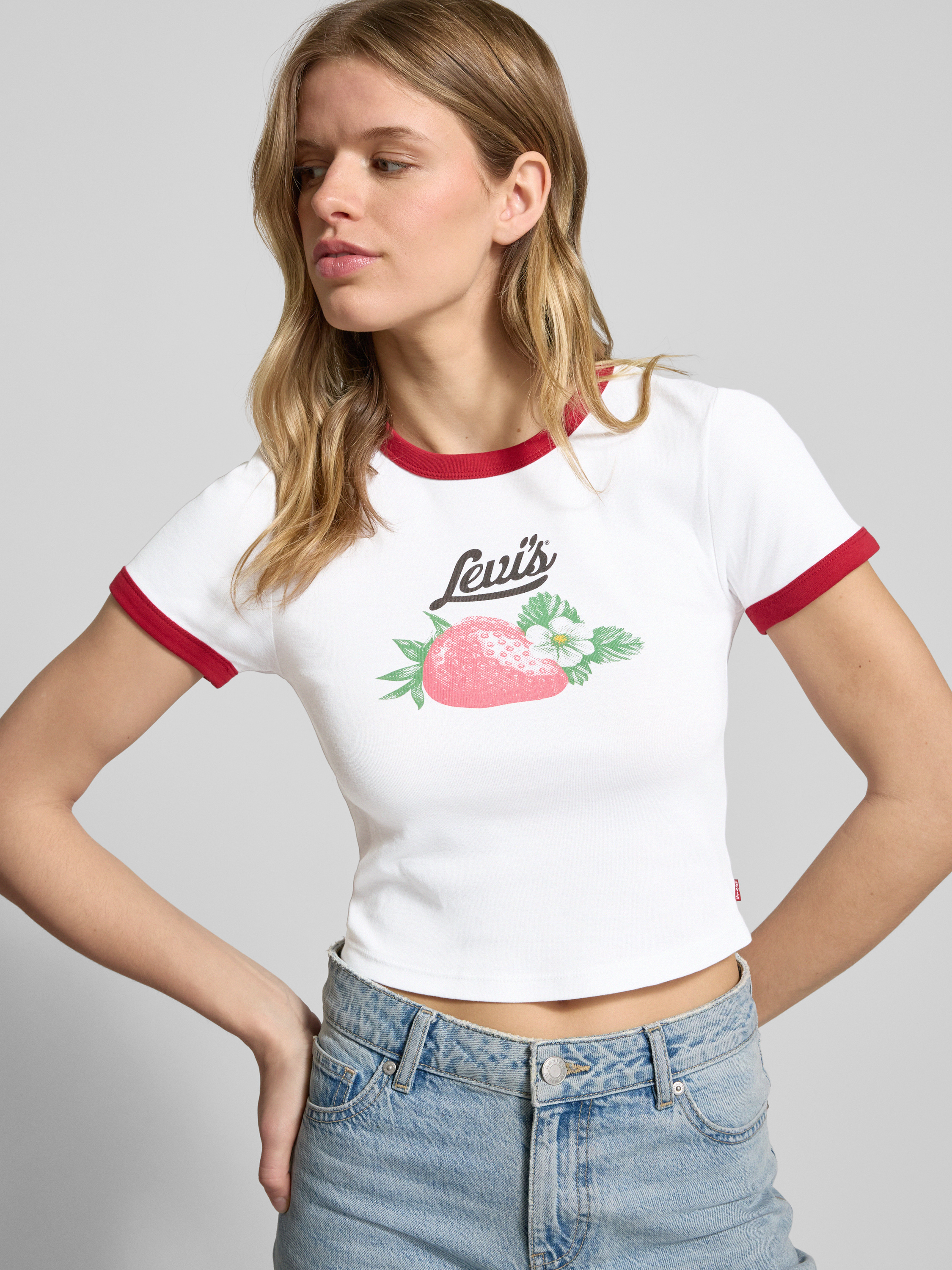 Das Levi's® Cropped T-Shirt 'MINI RINGER' aus reiner Baumwolle bietet mit seinem körpernahen Schnitt und dem klassischen Rundhalsausschnitt einen modernen Look. Der Motiv-Print mit Label-Detail verleiht dem T-Shirt einen besonderen Akzent. Ideal für einen lässigen und zugleich stilvollen Auftritt.