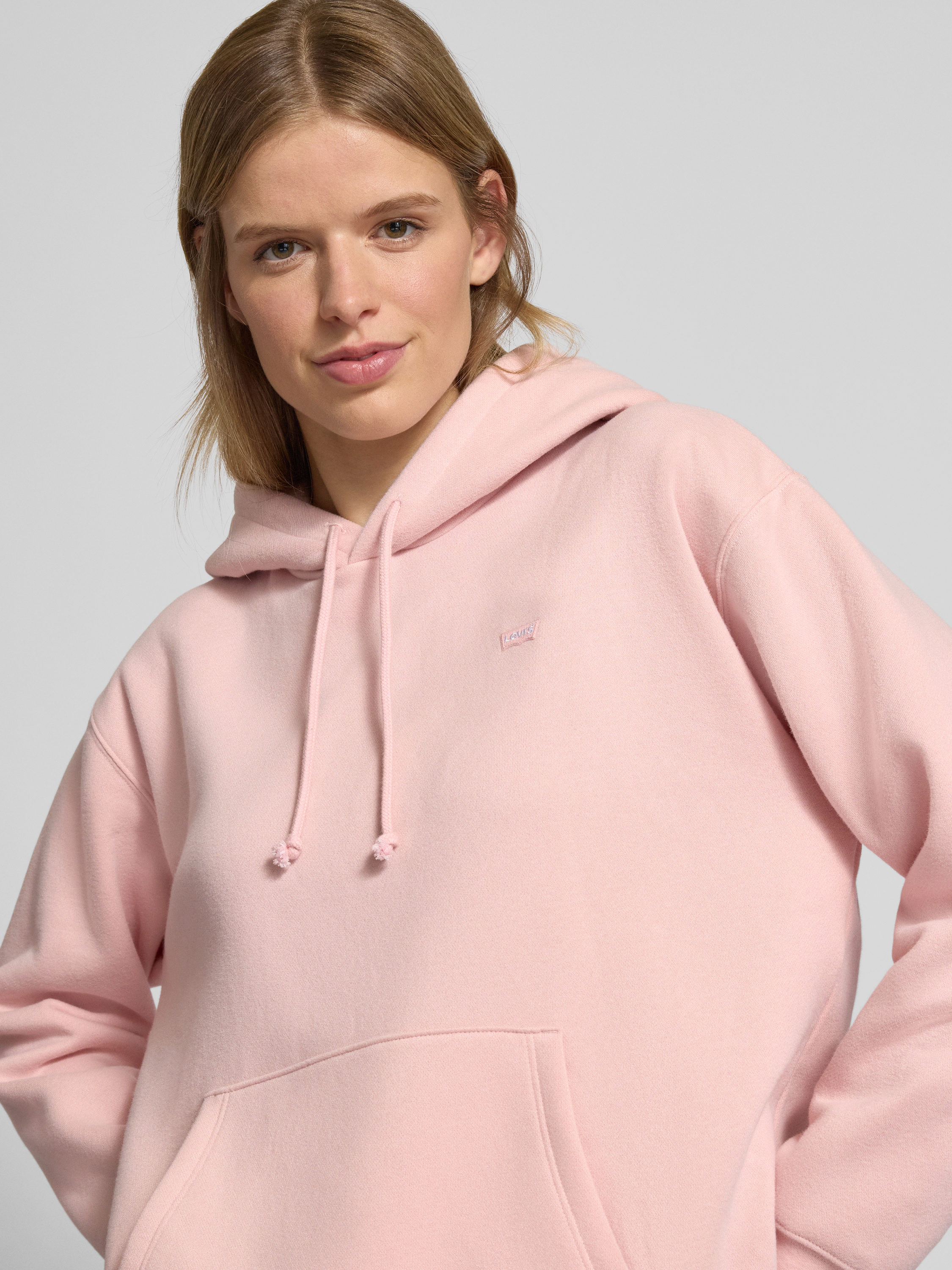 Der Damen Hoodie von Levi's® aus einem weichen Baumwoll-Mix fällt durch seinen lockeren Schnitt angenehm leger. Eine großzügige Kapuze mit Tunnelzug und die praktische Känguru-Tasche machen das Modell vielseitig, da man sich flexibel auf unterschiedliche Situationen einstellen kann. So lässt sich der Hoodie mit Kapuze unkompliziert im Alltag tragen.