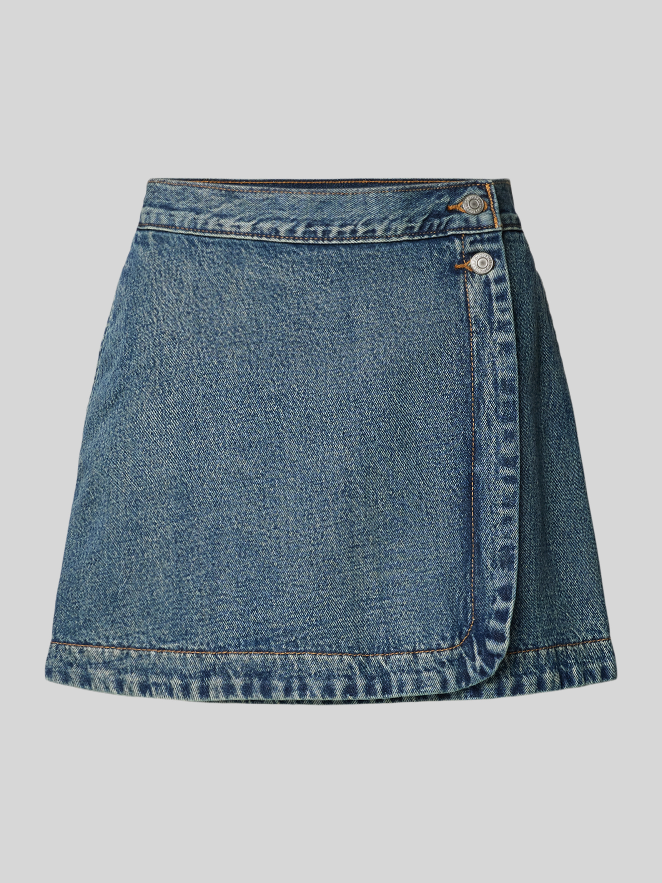 Der Levi's® Jeansrock in Wickel-Optik, Modell 'YOU NEED ME', aus reiner Baumwolle kombiniert lässigen Stil mit einer A-Linie, die sich für vielseitige Outfits eignet. Der Minirock lässt sich angenehm tragen und bietet durch seine Schnittform Bewegungsfreiheit. Ideal für einen unkomplizierten, modischen Auftritt.