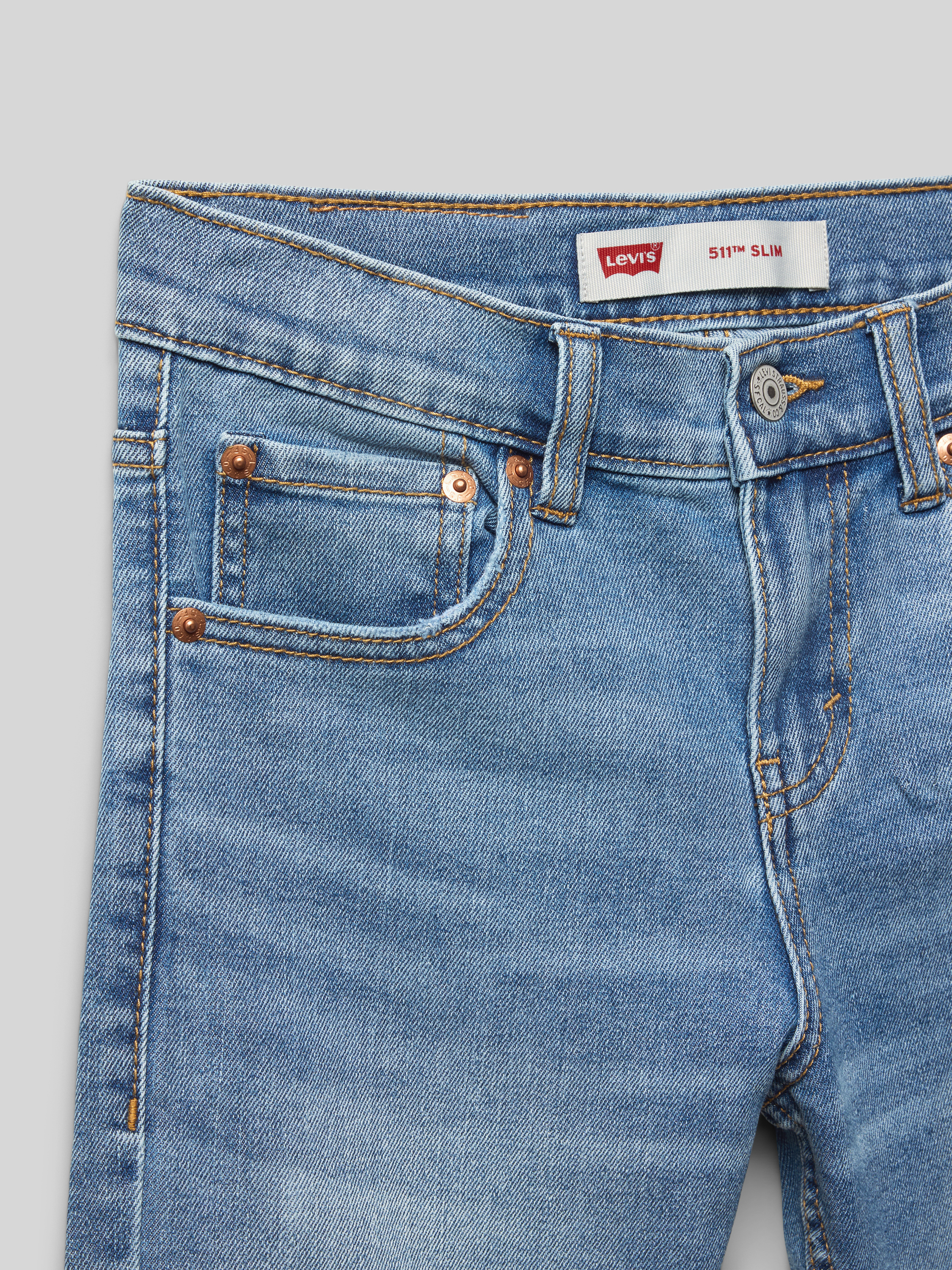 Die Slim Fit Jeansshorts von Levi’s® Kids, Modell '511', kombinieren einen angenehmen Baumwoll-Mix mit einem Hauch Stretch für optimale Bewegungsfreiheit. Durch den schmalen Schnitt entsteht eine moderne Silhouette, während die praktischen Eingrifftaschen zusätzlichen Stauraum bieten. Ideal für aktive Tage voller Spiel und Spaß.