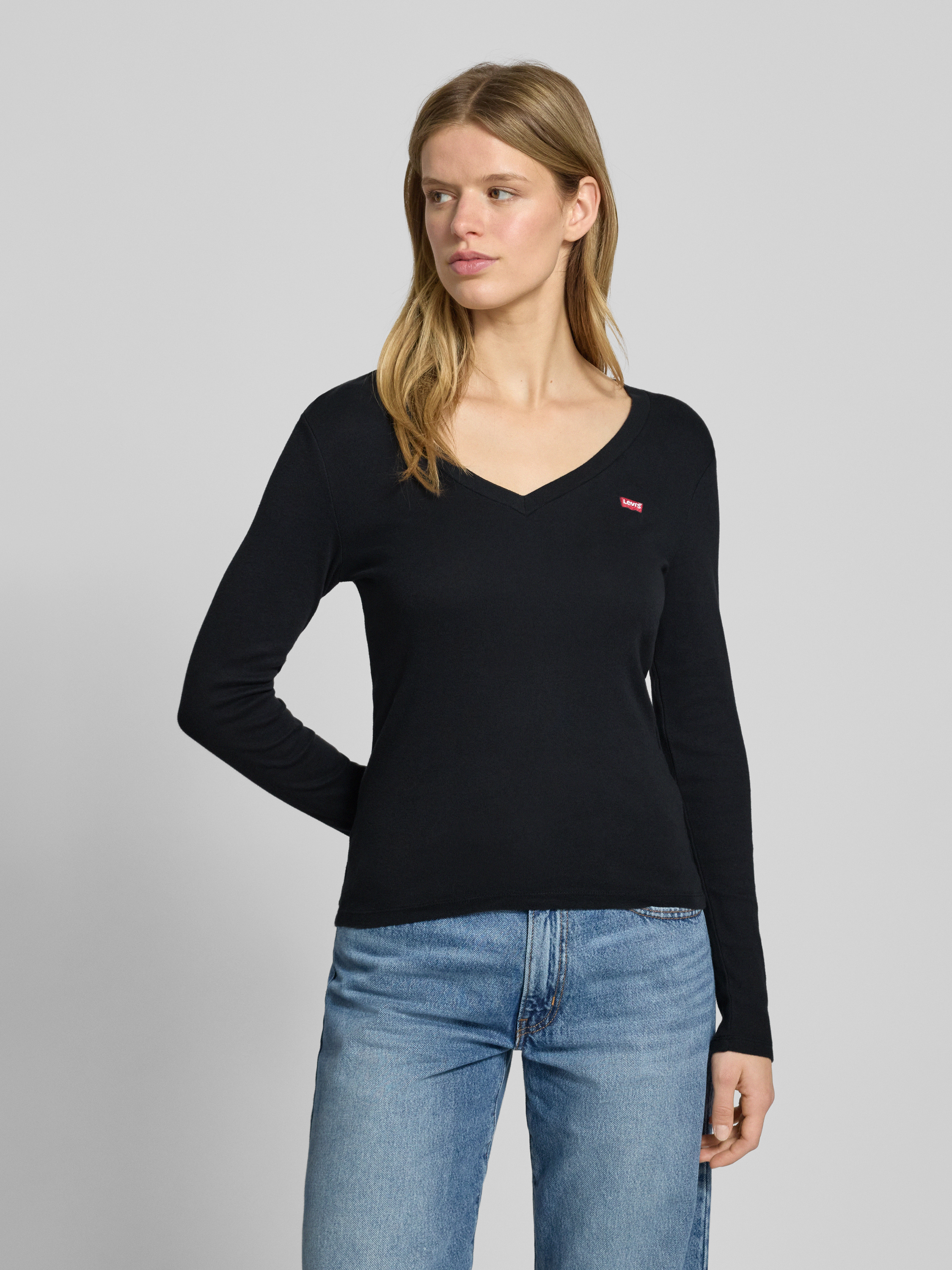 Levi's®Longsleeve mit Label-Stitching und V-Ausschnitt in black