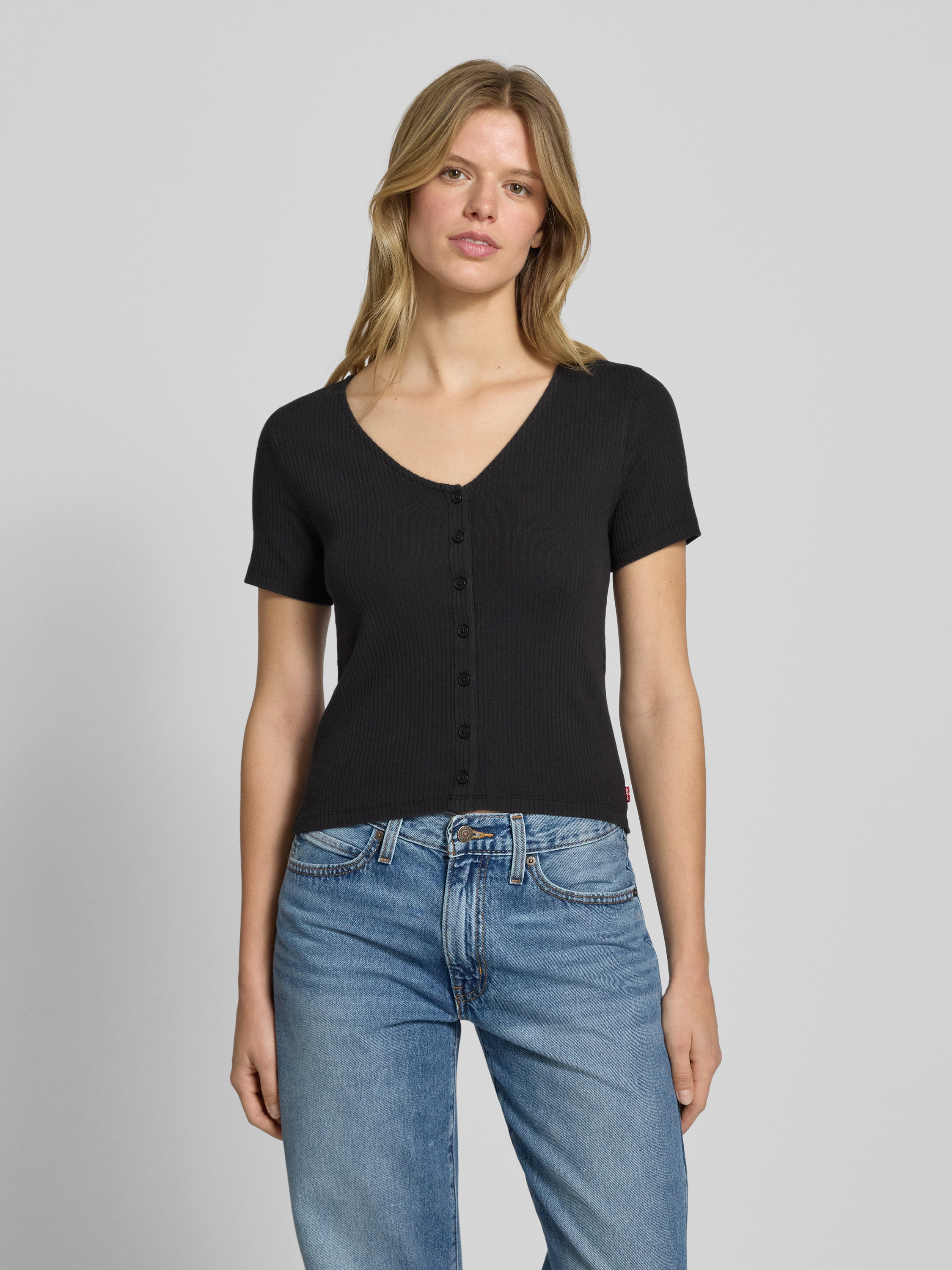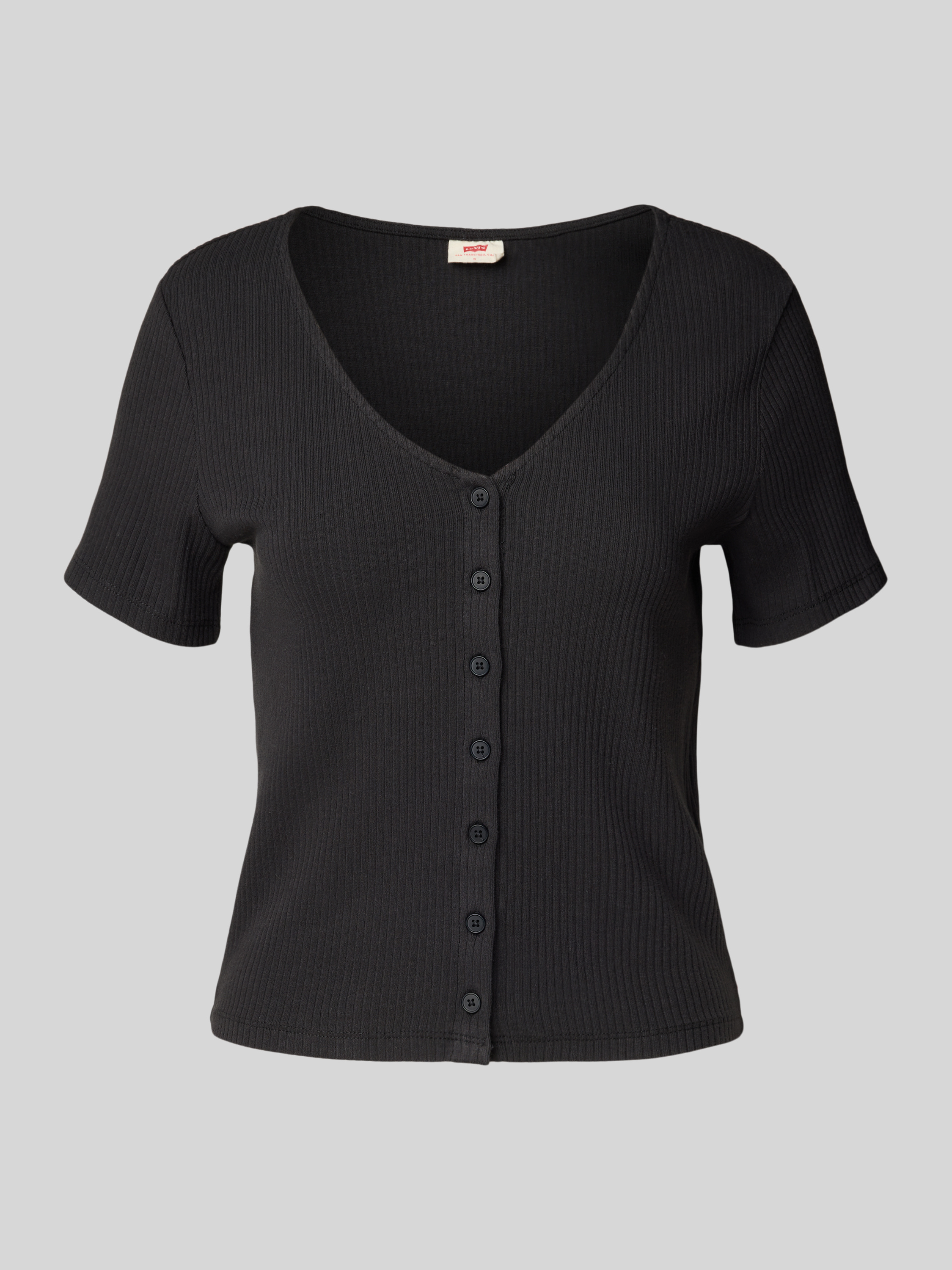 Levi's®T-Shirt in Ripp-Optik mit V-Ausschnitt und Knopfleiste in black