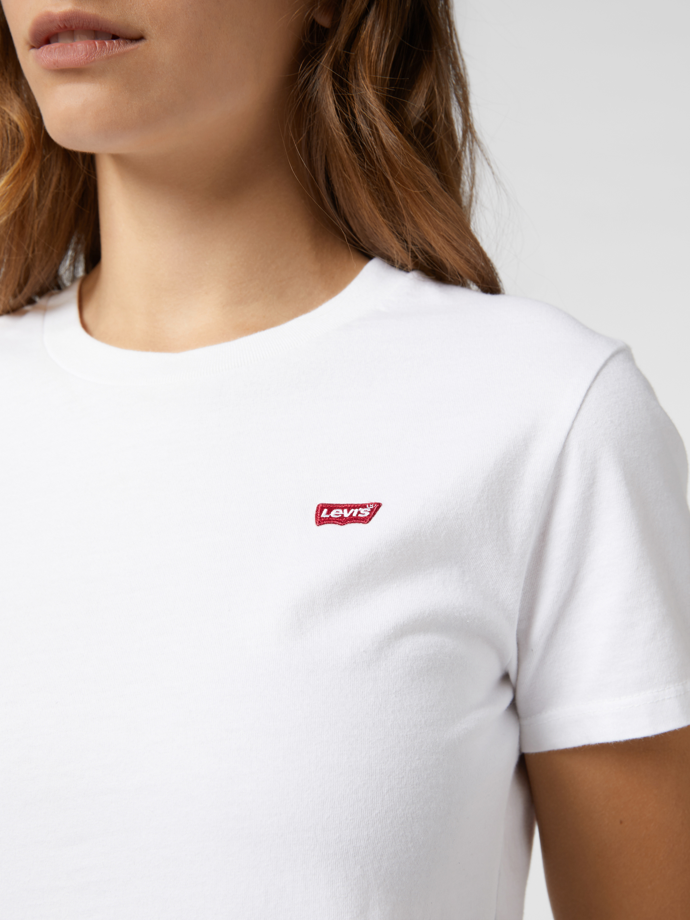 Das Levi’s® T-Shirt "THE PERFECT TEE WHITE" kombiniert schlichte Eleganz mit angenehmem Tragekomfort. Gefertigt aus reiner Baumwolle, bietet es eine luftige Leichtigkeit, die sich ideal für den Alltag eignet. Der gerade Schnitt sorgt für eine legere Passform.