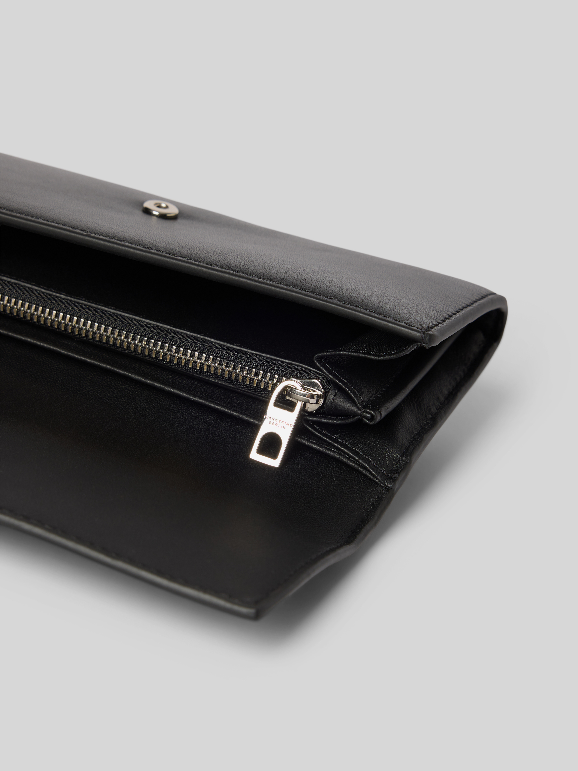 Das Portemonnaie 'Valentina' von LIEBESKIND BERLIN überzeugt durch ein elegantes Design mit Label-Print. Gefertigt aus weichem Leder, bietet es ein geräumiges Hauptfach mit Druckknopfverschluss. Im Inneren sorgt ein separates Fach mit Reißverschluss für zusätzliche Ordnung. Ideal für stilvolle Aufbewahrung.