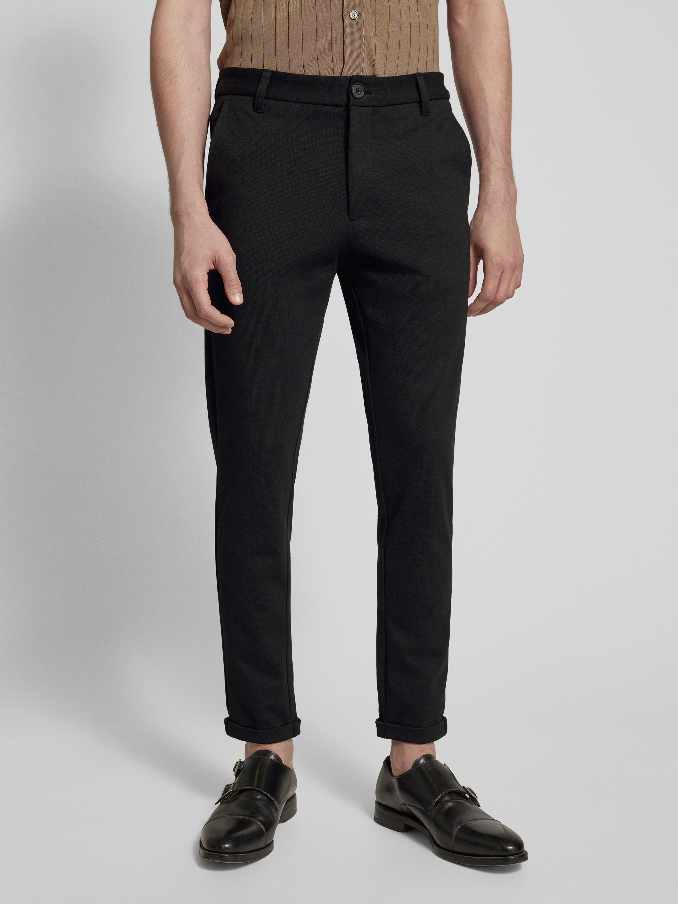 Slim Fit Stoffhose mit verkürztem Schnitt in black