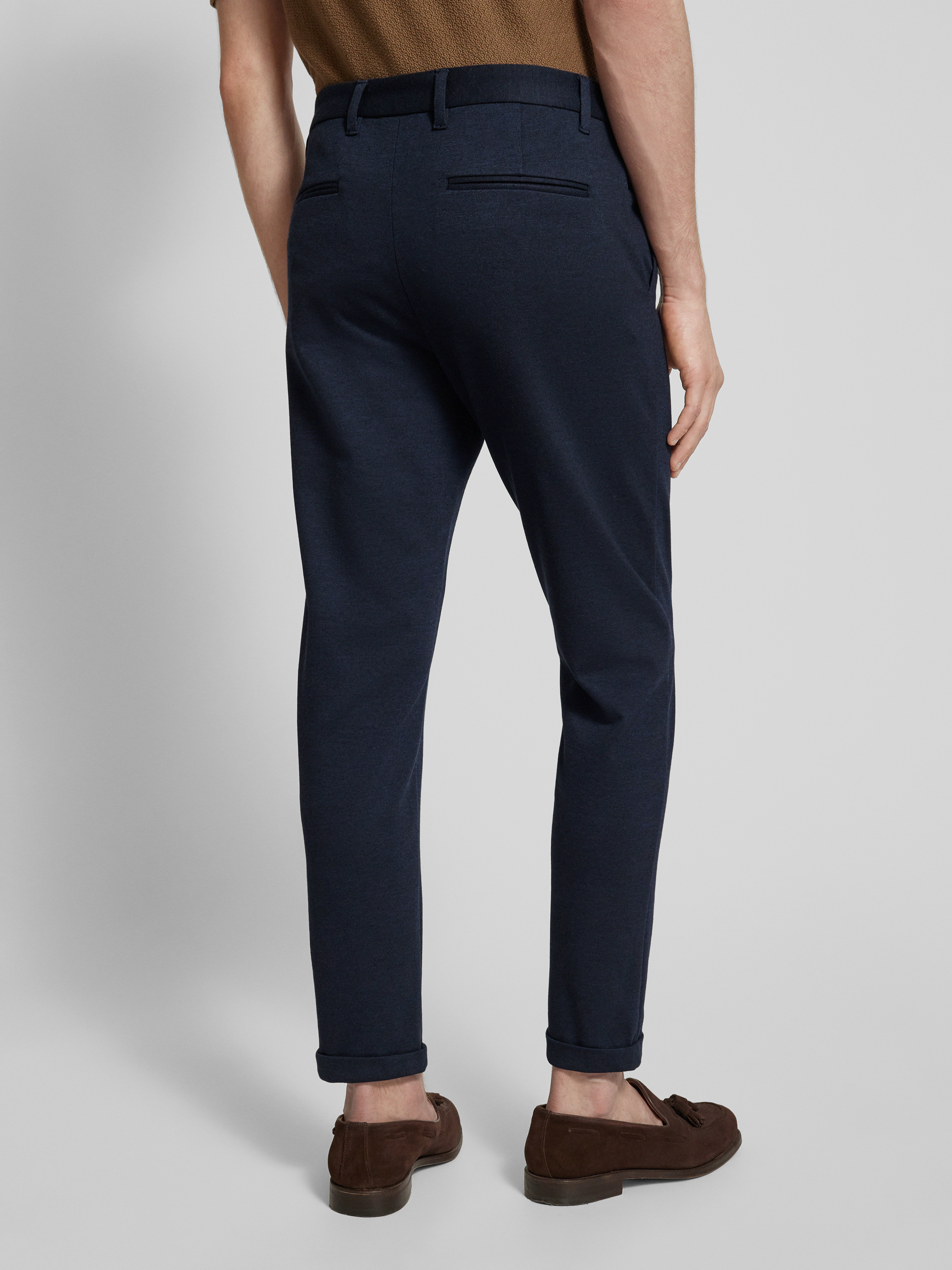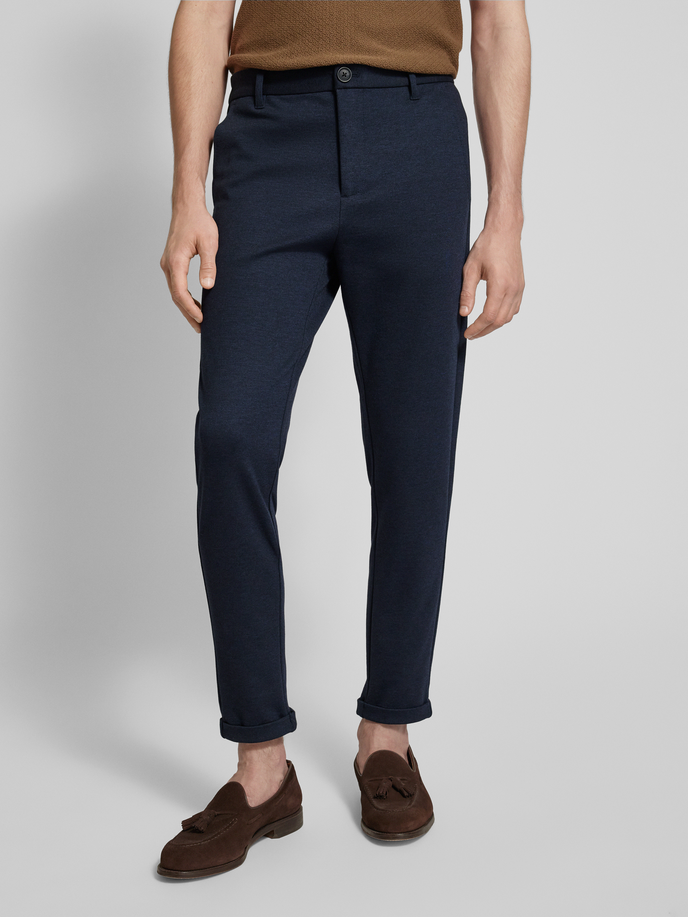 Slim Fit Stoffhose mit verkürztem Schnitt in dunkelblau