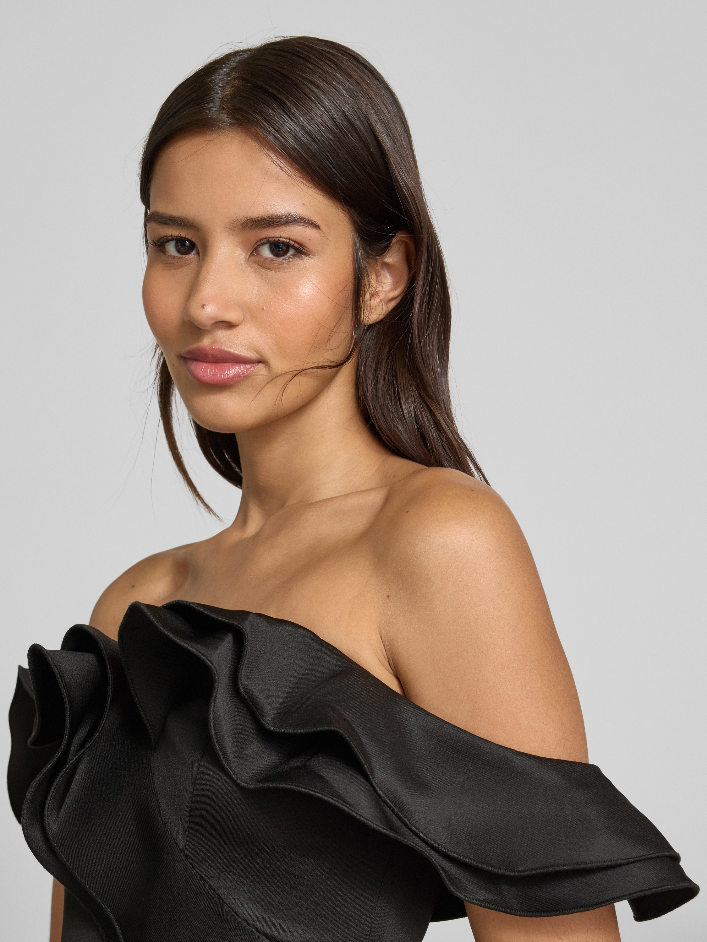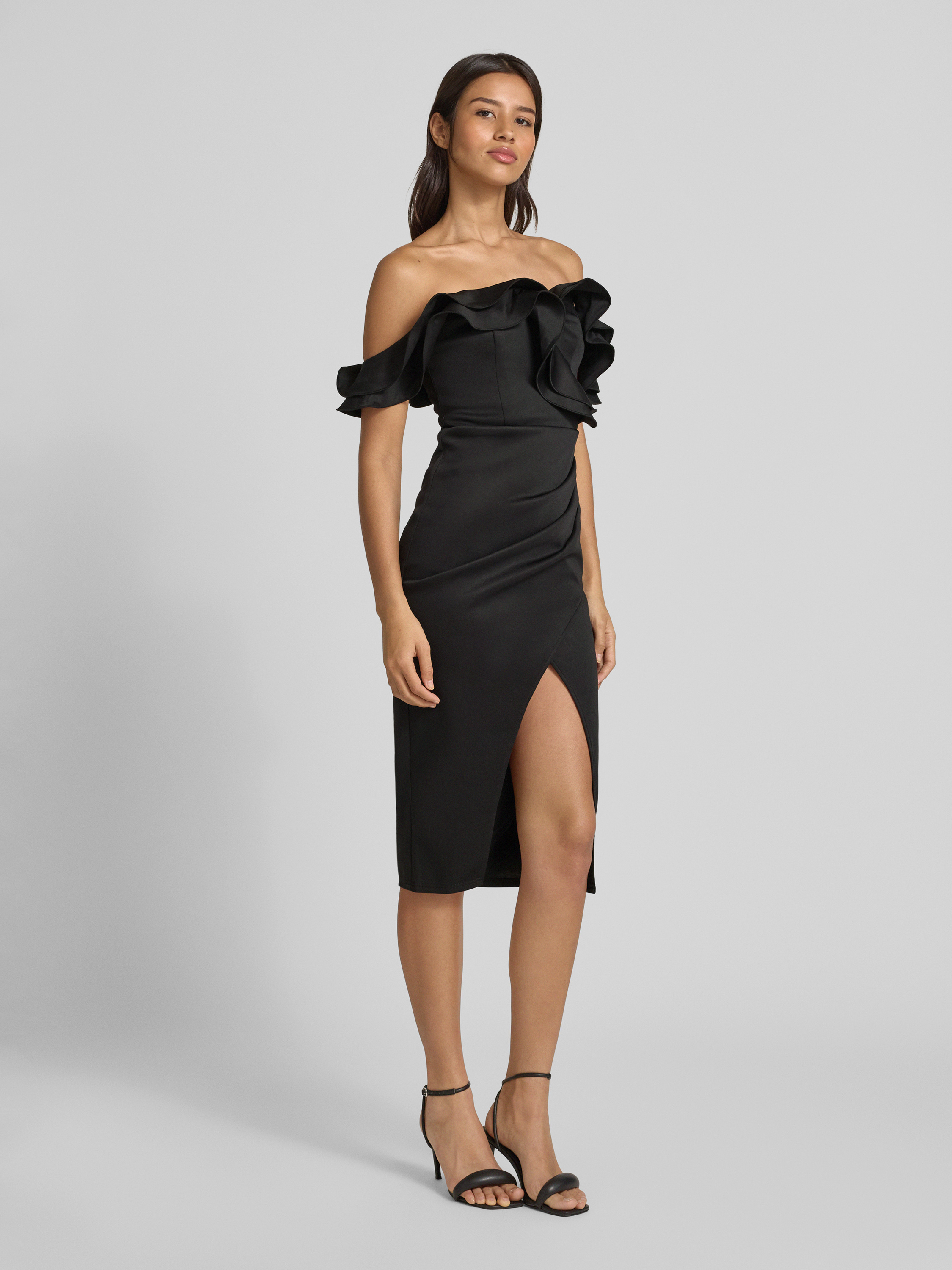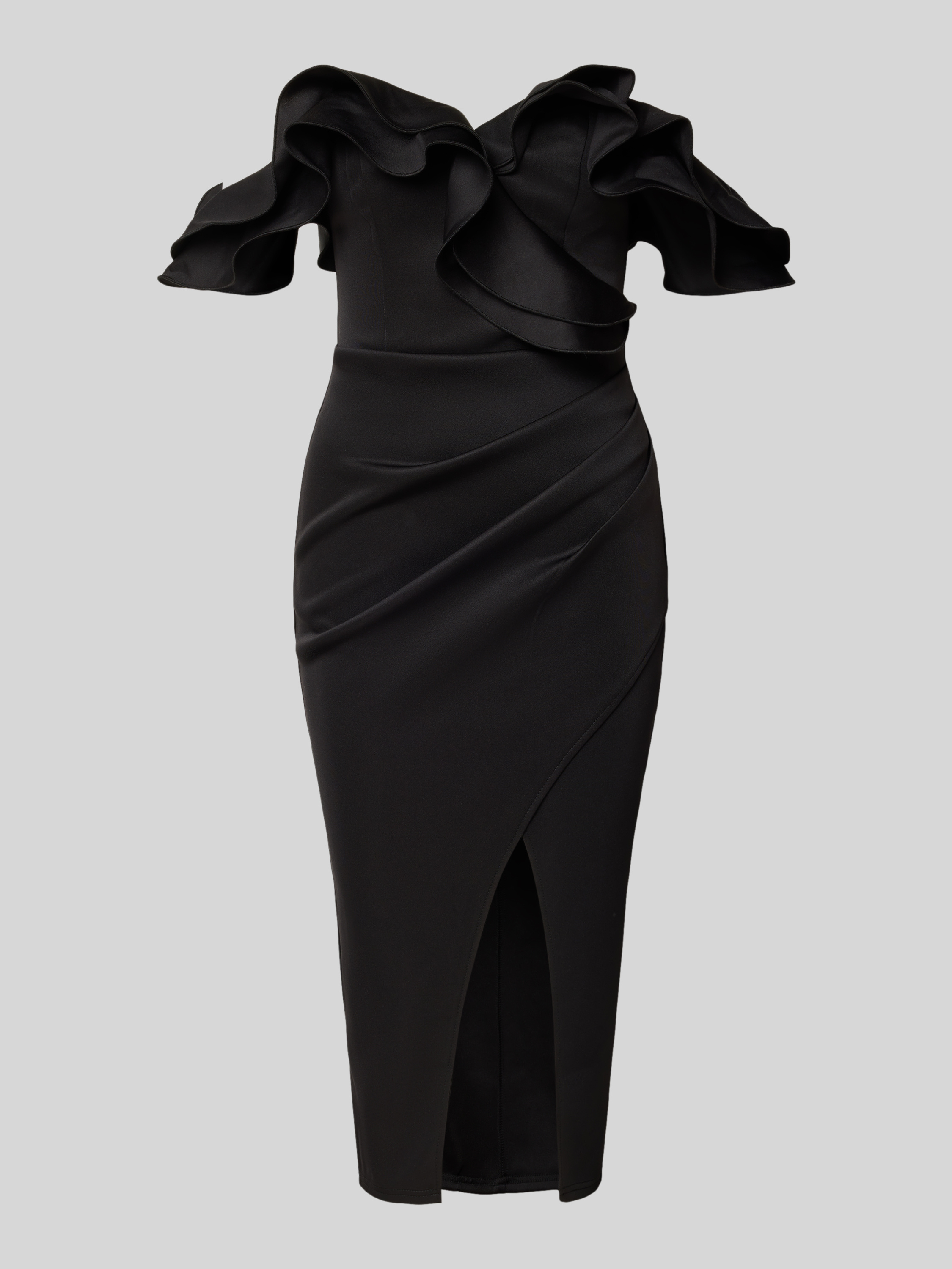 Das Damen Cocktailkleid von Lipsy fällt durch seinen figurnahen Schnitt und die raffiniert drapierten Rüschen angenehm auf. Ein elastischer Material-Mix sorgt für angenehme Bewegungsfreiheit, während das Off-Shoulder-Design und gelegte Falten einen modernen Akzent setzen. So eignet sich dieses Kleid gut für besondere Anlässe.