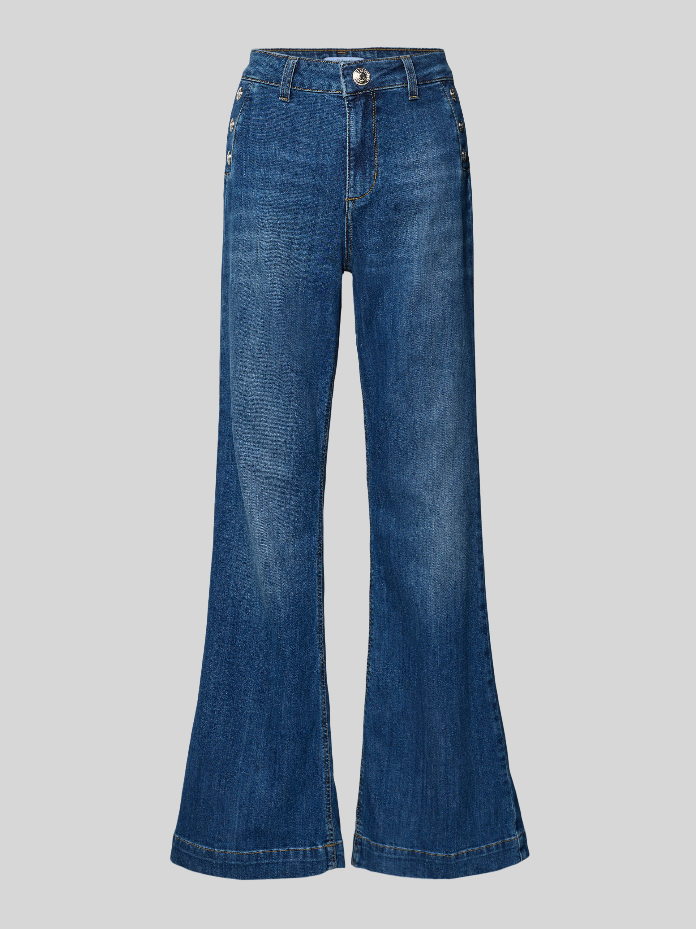 Die Damen Jeans von Liu Jo White zeigt sich im Flared-Cut und setzt durch den Used-Look lässige Akzente. Ein Baumwoll-Mix mit Stretch-Anteil sorgt für angenehme Bewegungsfreiheit im Alltag. Durch die markanten Knöpfe entsteht ein dezenter Blickfang, der sich vielseitig kombinieren lässt.
