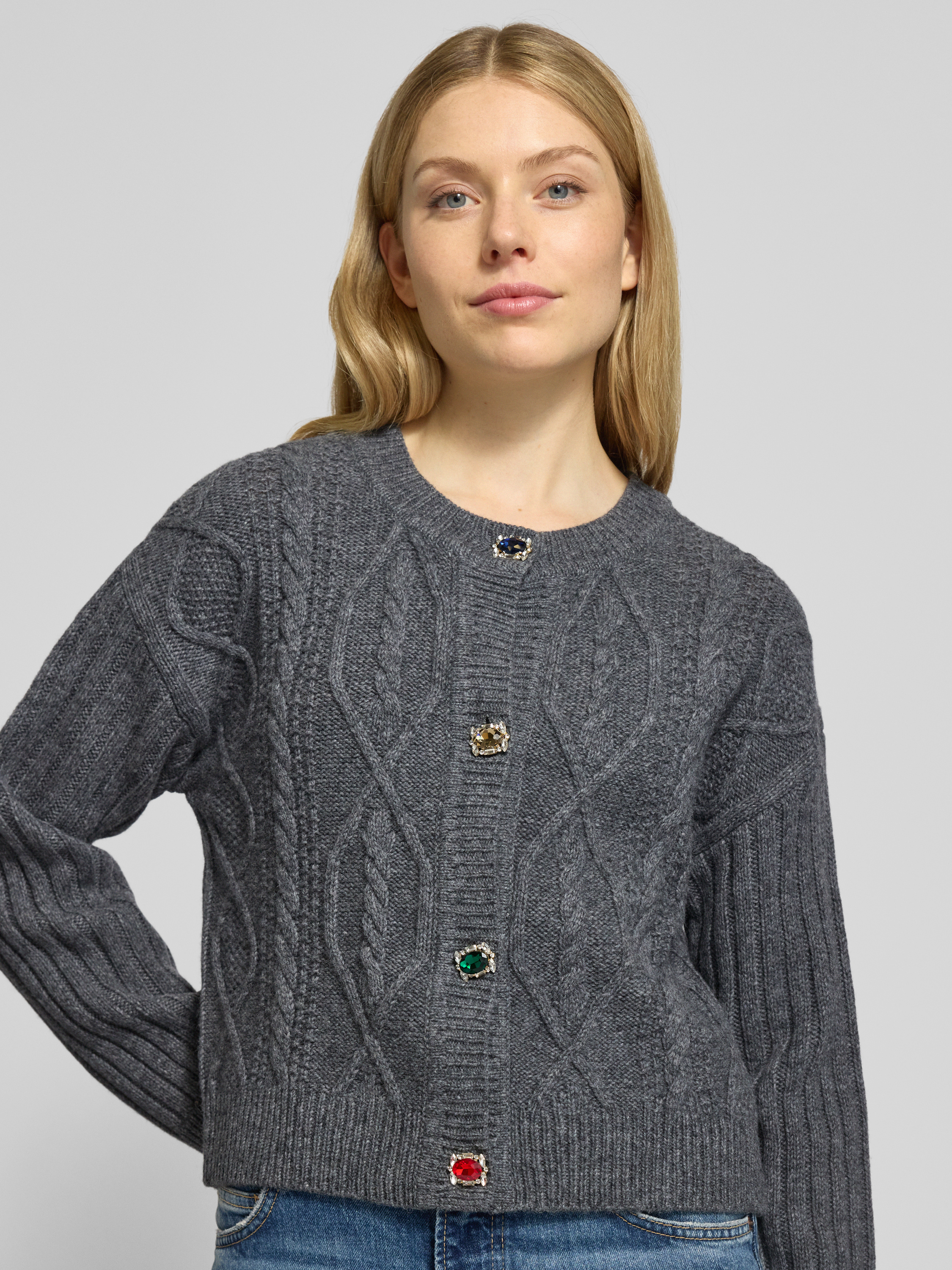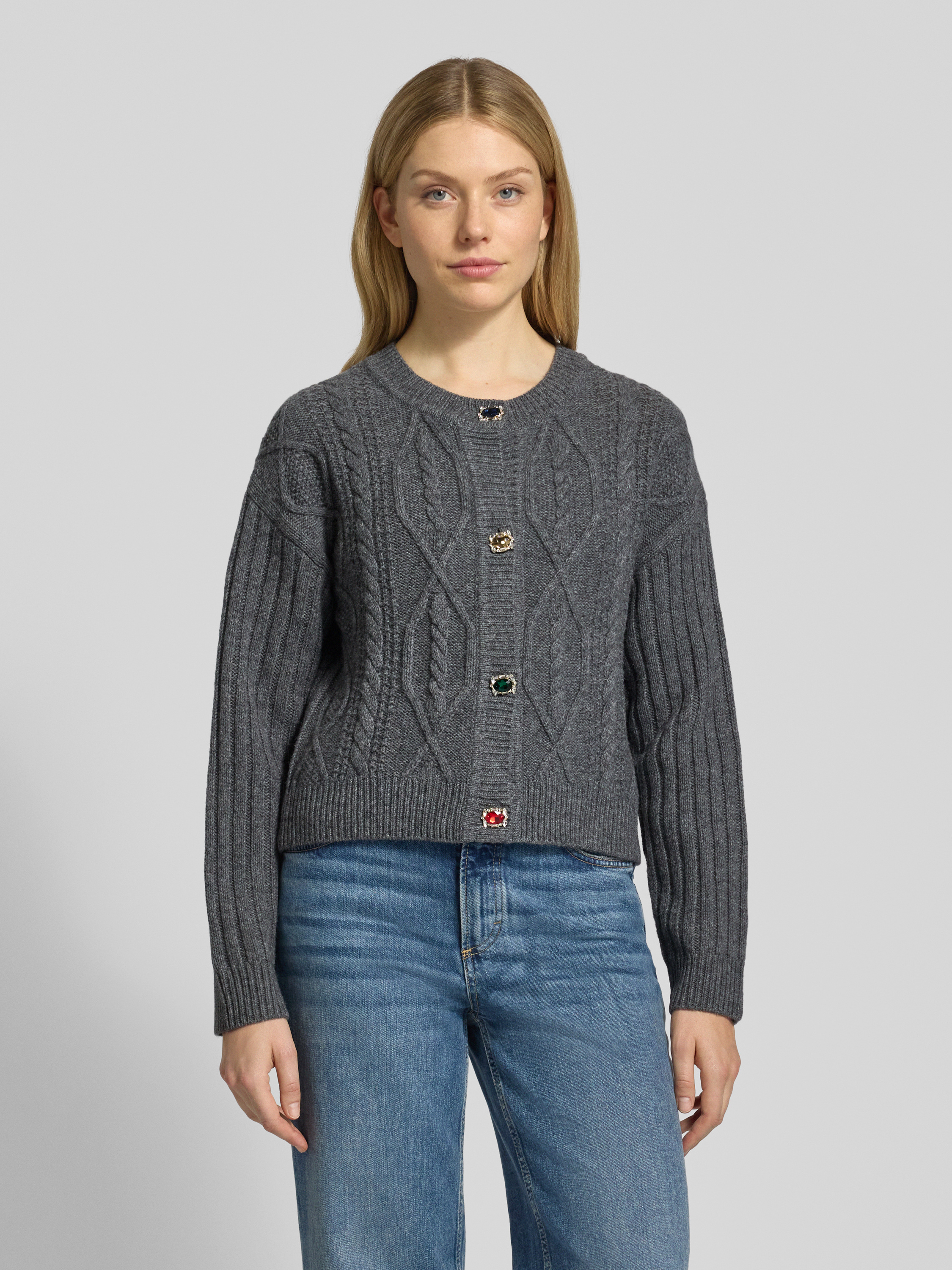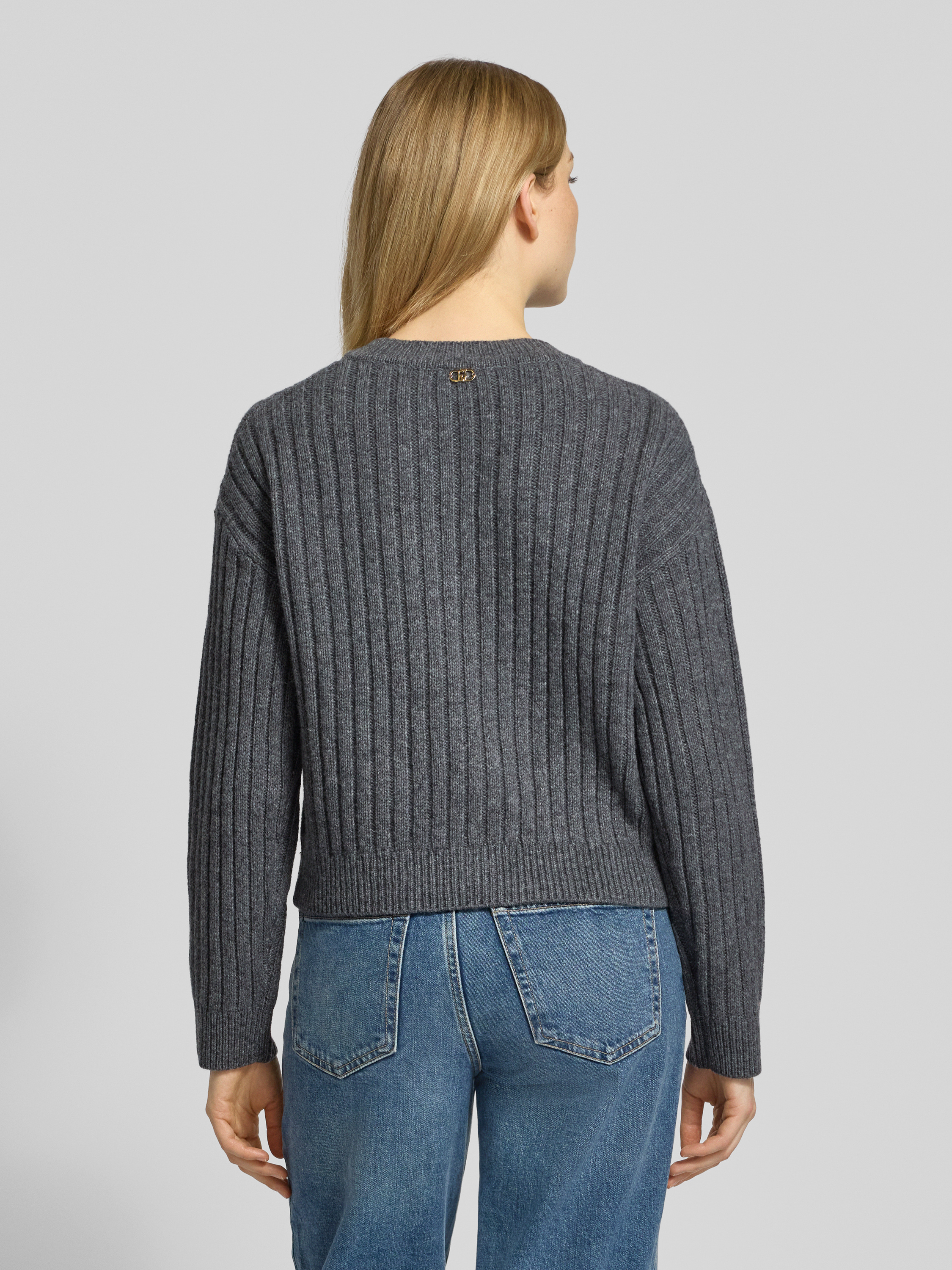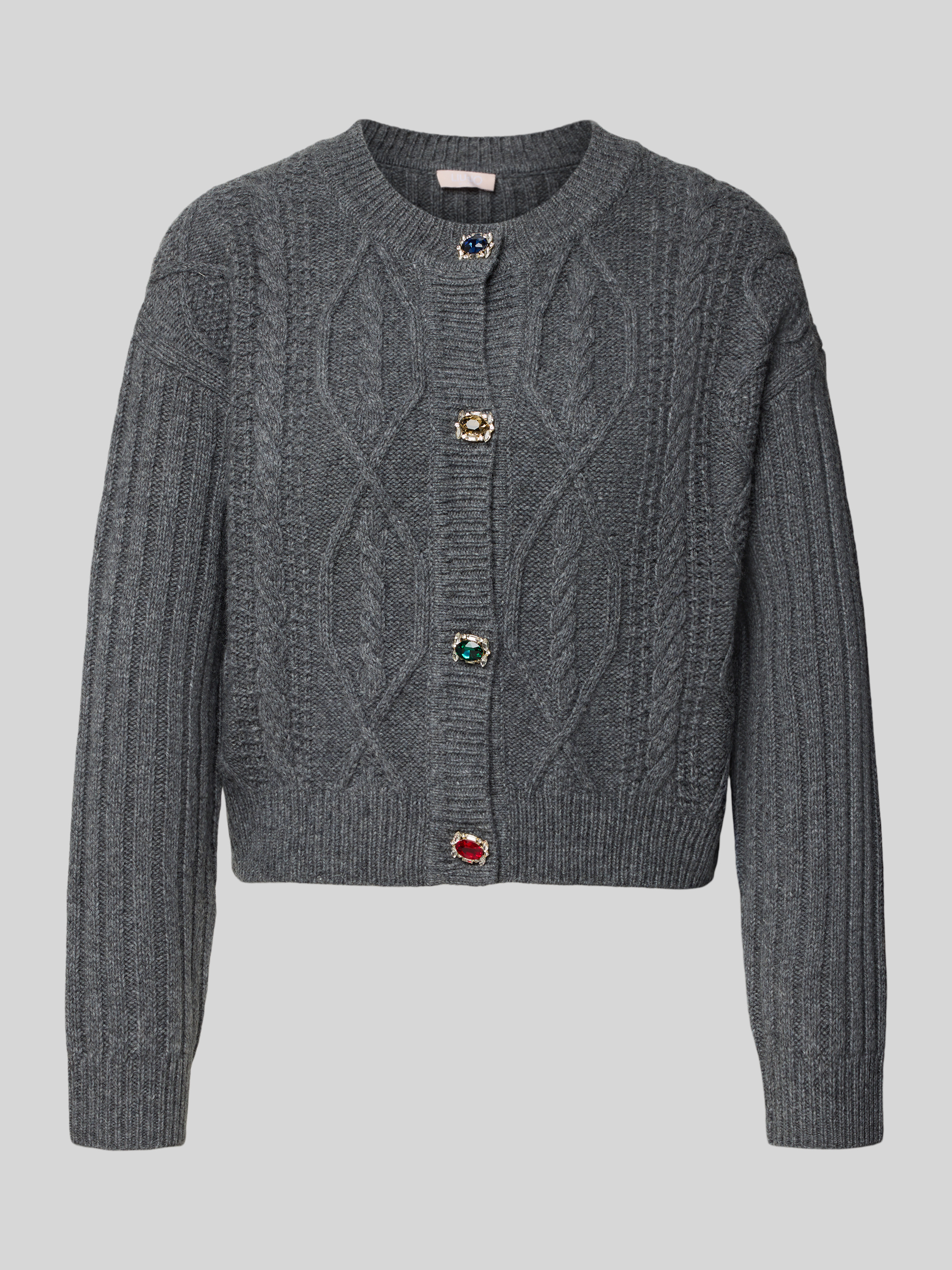 Liu Jo WhiteStrickjacke mit gerippten Abschlüssen in mittelgrau