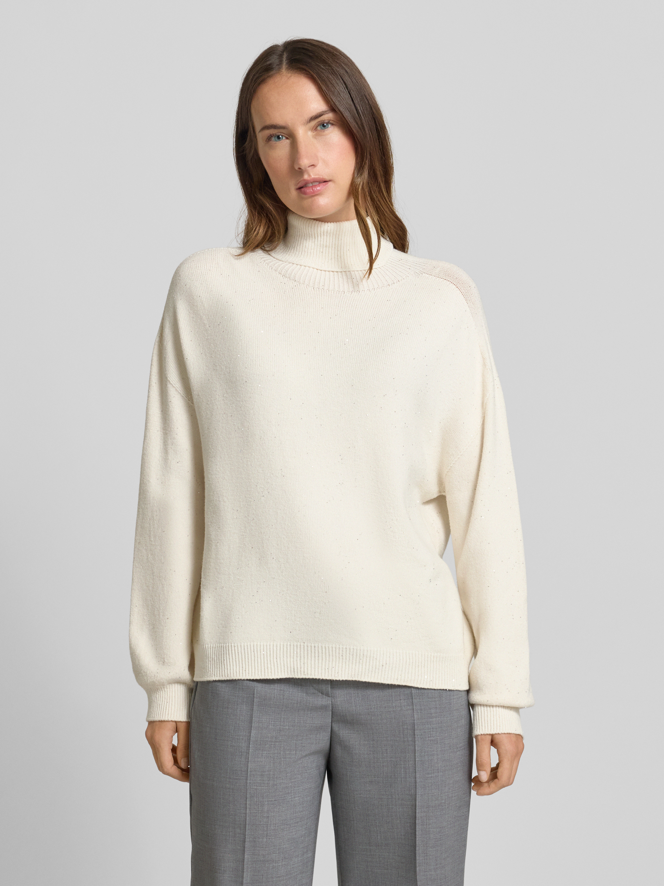 Der Damen Strickpullover von Liu Jo White zeichnet sich durch einen angenehm geraden Schnitt aus, der für Bewegungsfreiheit sorgt. Durch den Rollkragen entsteht eine dezente Wärme am Hals, während der Viskose-Mix für ein weiches Tragegefühl sorgt. Dezente Details, wie gerippte Abschlüsse, runden das Gesamtbild ab.