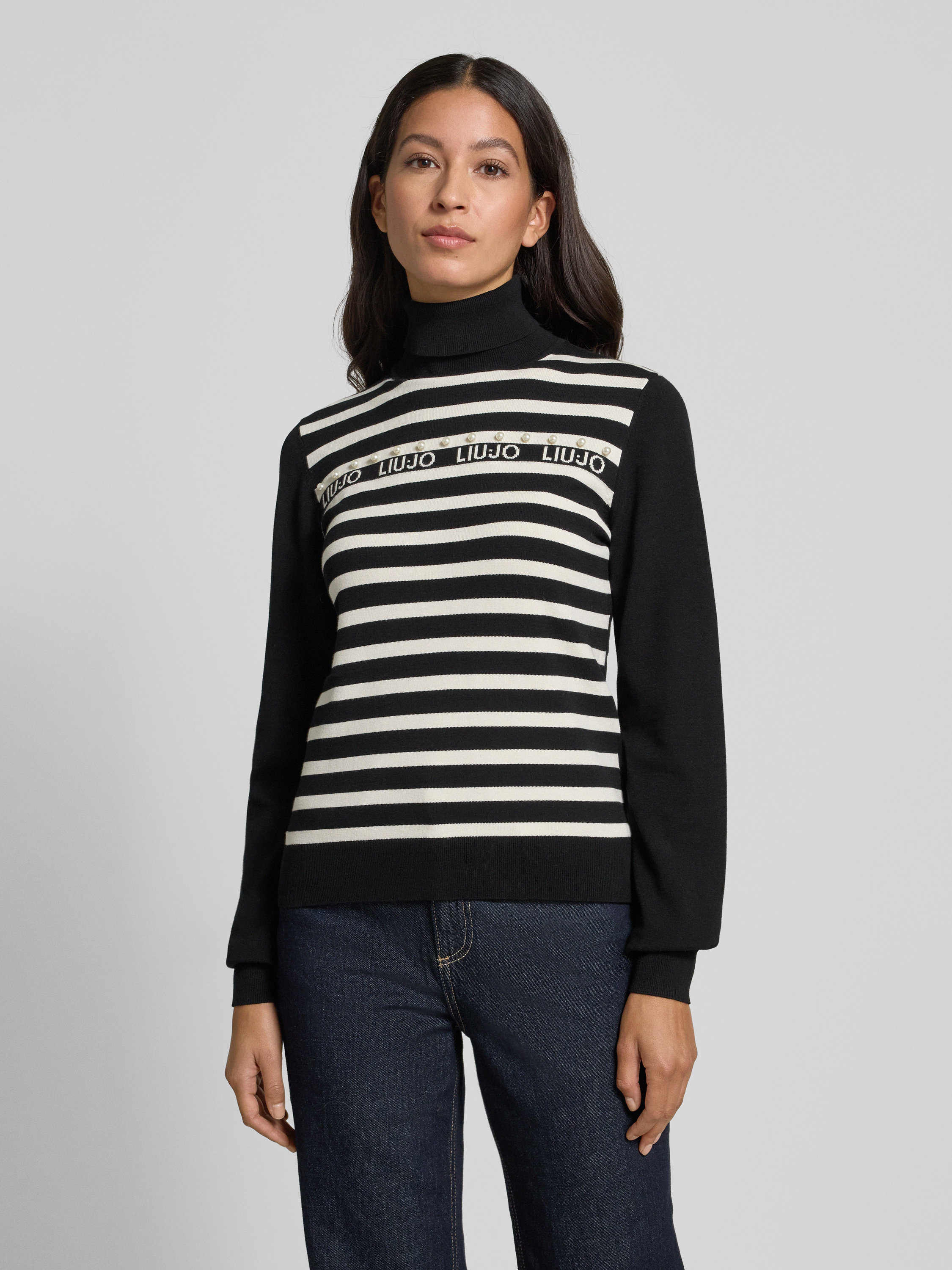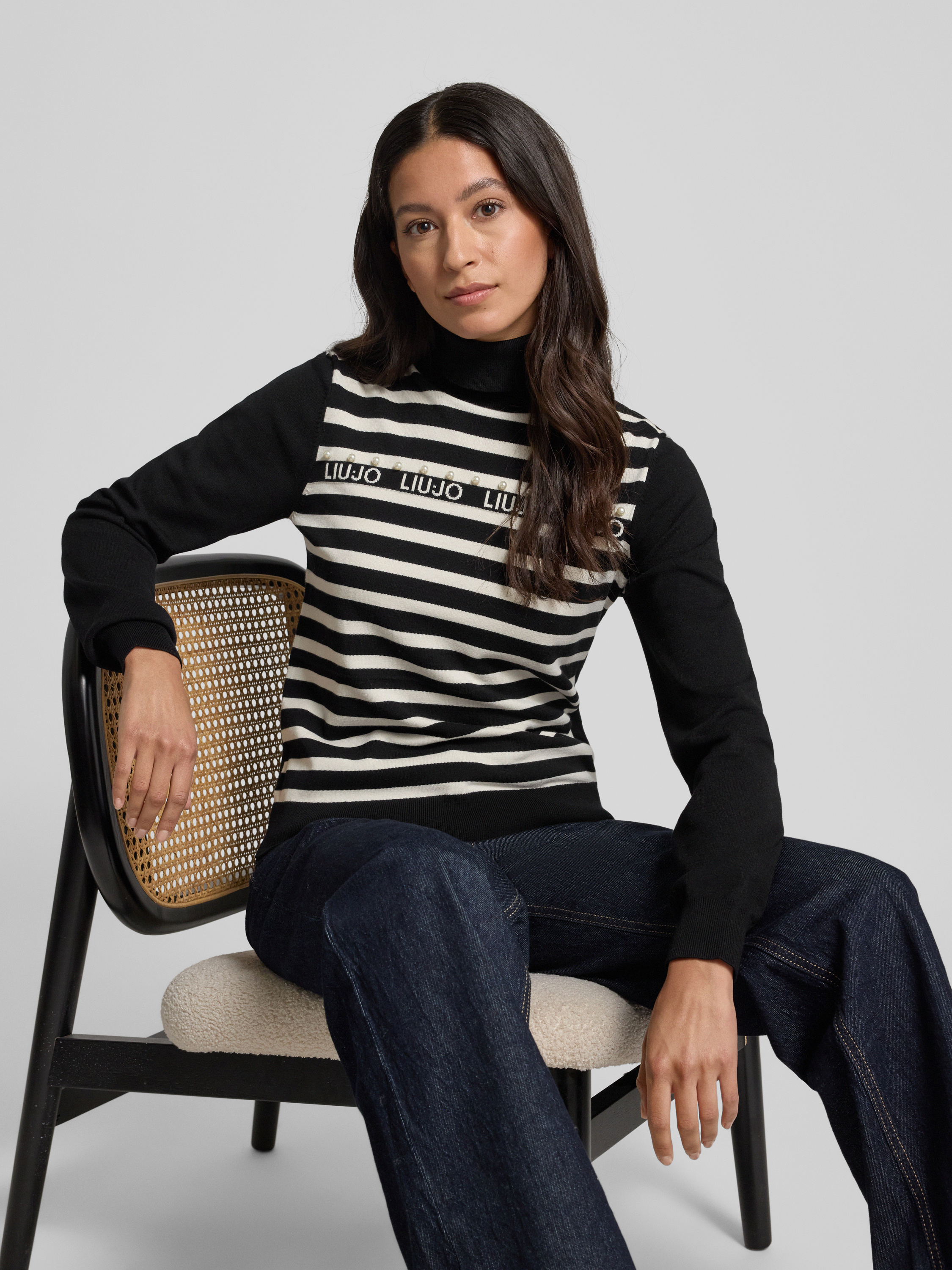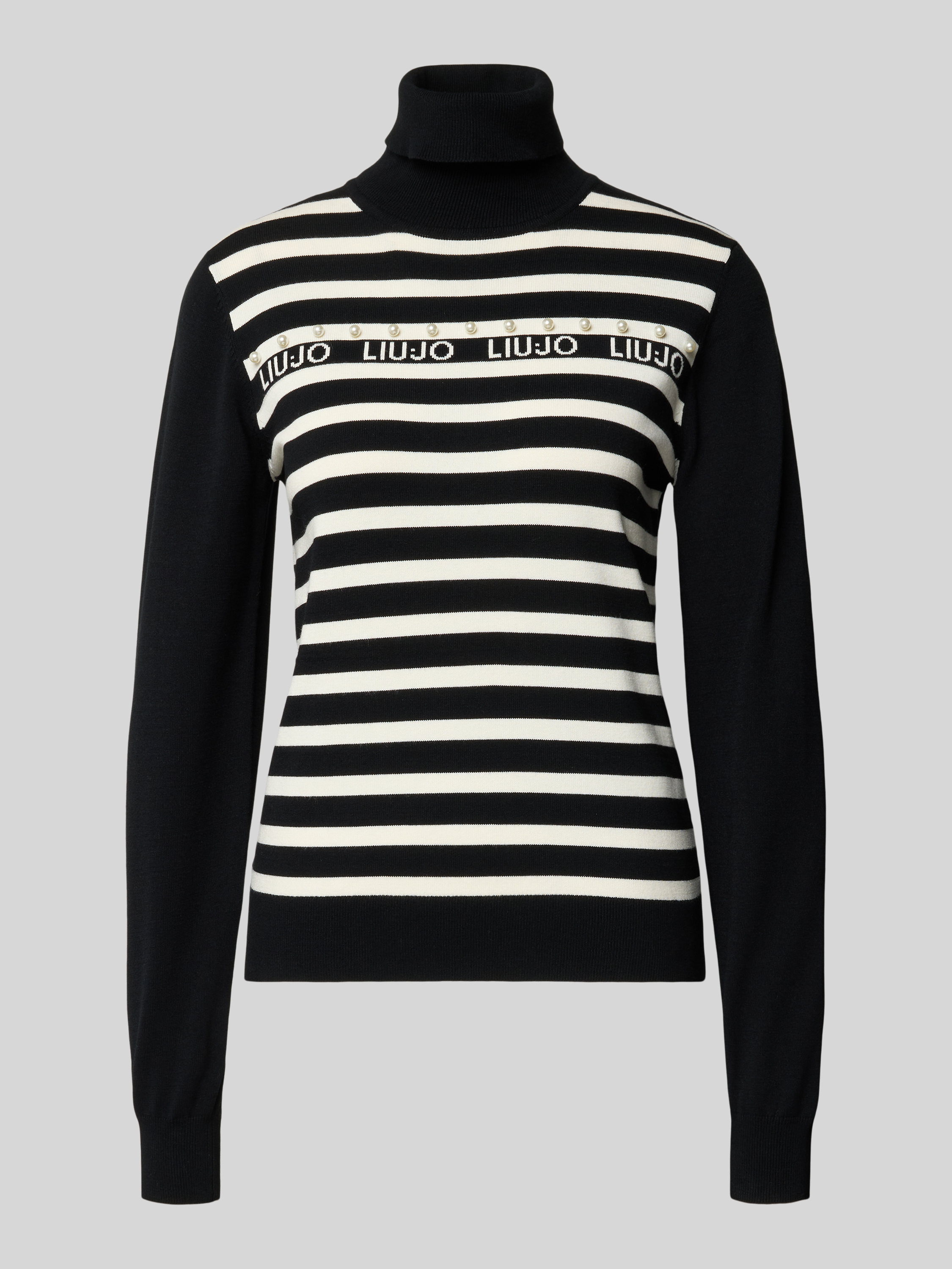LIU JO SPORTSlim Fit Rollkragenpullover aus Viskose-Mix in Strick-Optik in black