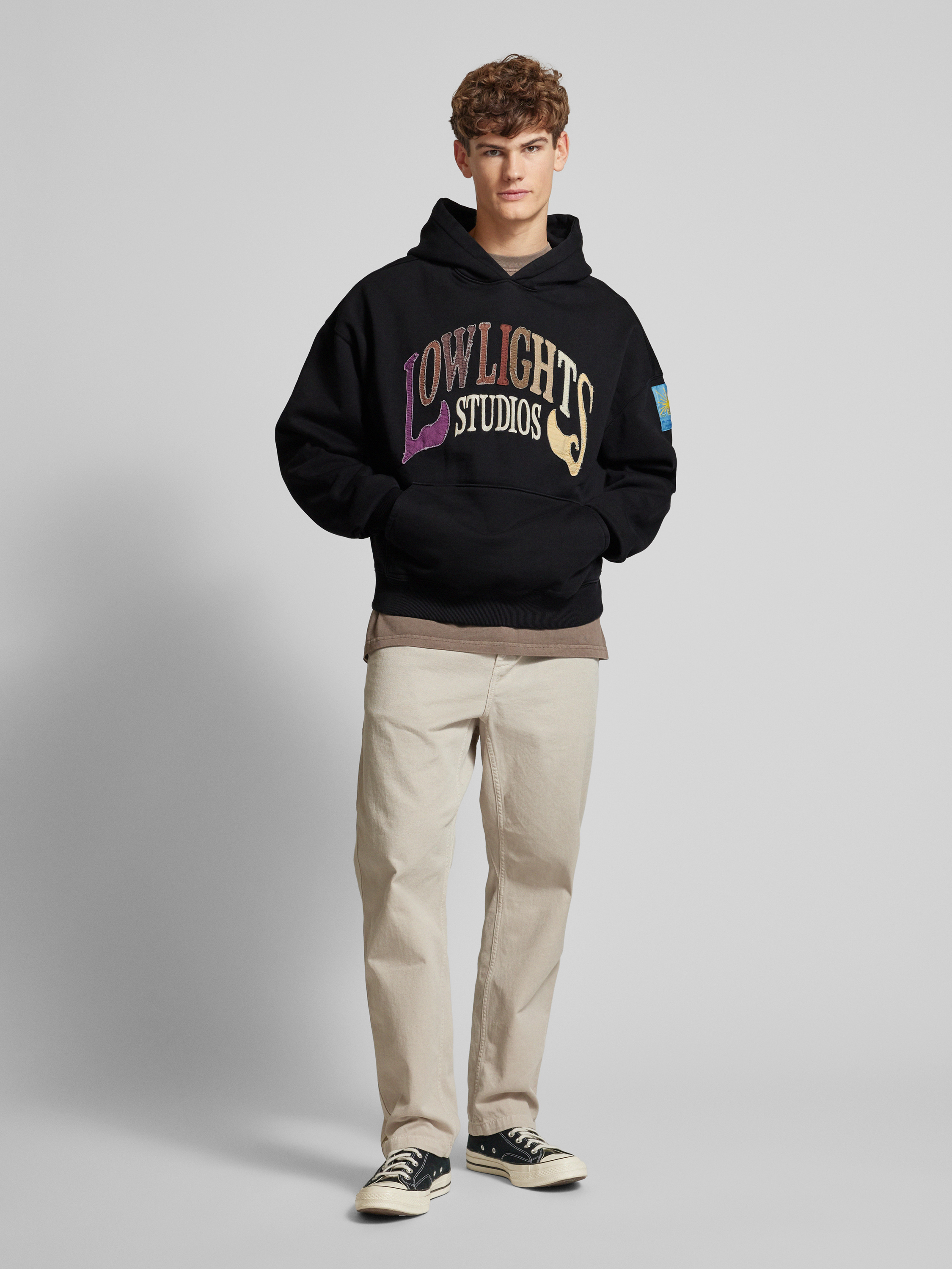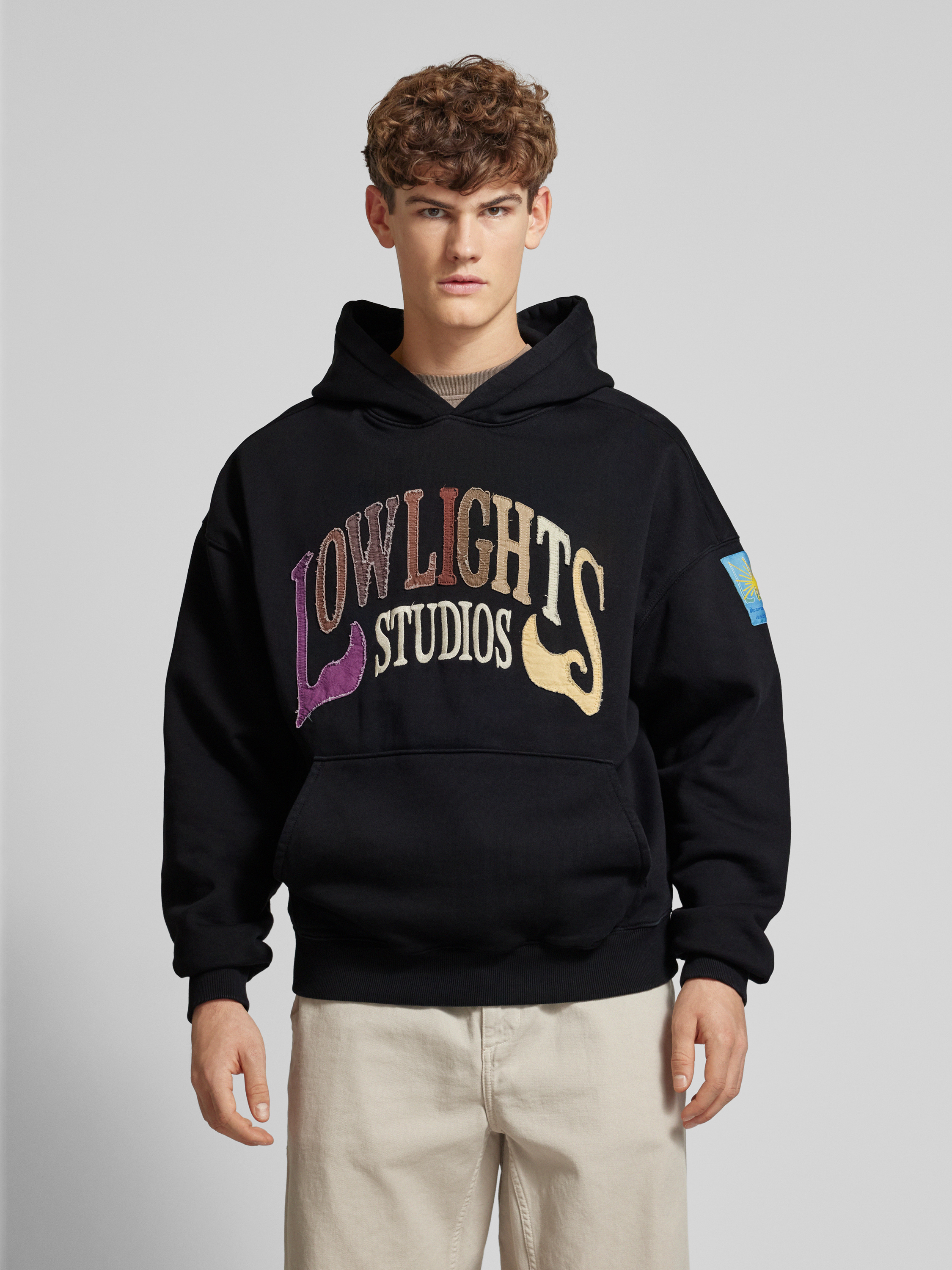 Der Hoodie von Low Lights Studios® kombiniert lässigen Stil mit funktionalem Design. Der Oversized-Schnitt und die bequeme Kapuze sorgen für Komfort und Bewegungsfreiheit. Aus einem weichen Baumwoll-Mix gefertigt, eignet er sich ideal für entspannte Tage, während die Känguru-Tasche praktische Aufbewahrung bietet.