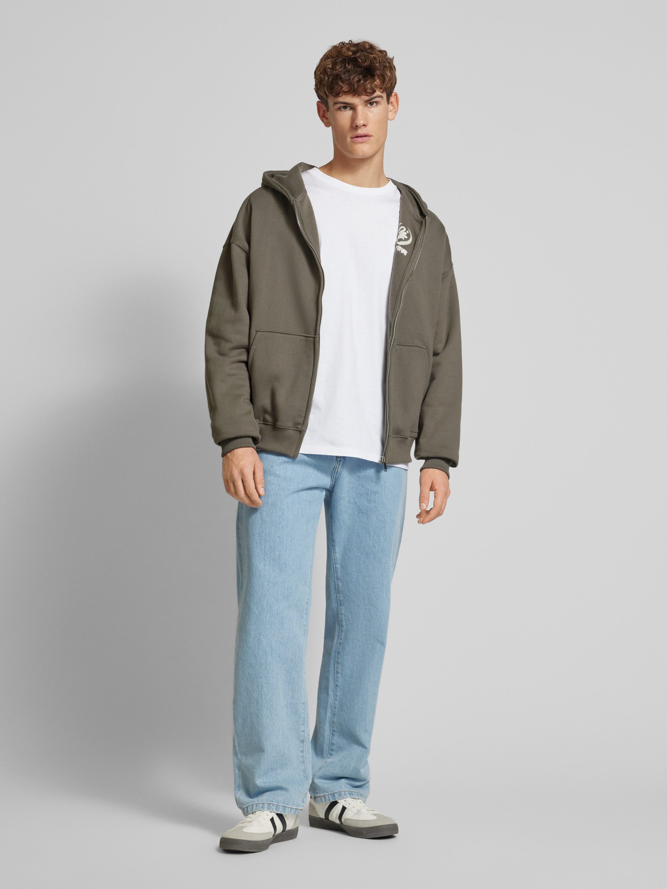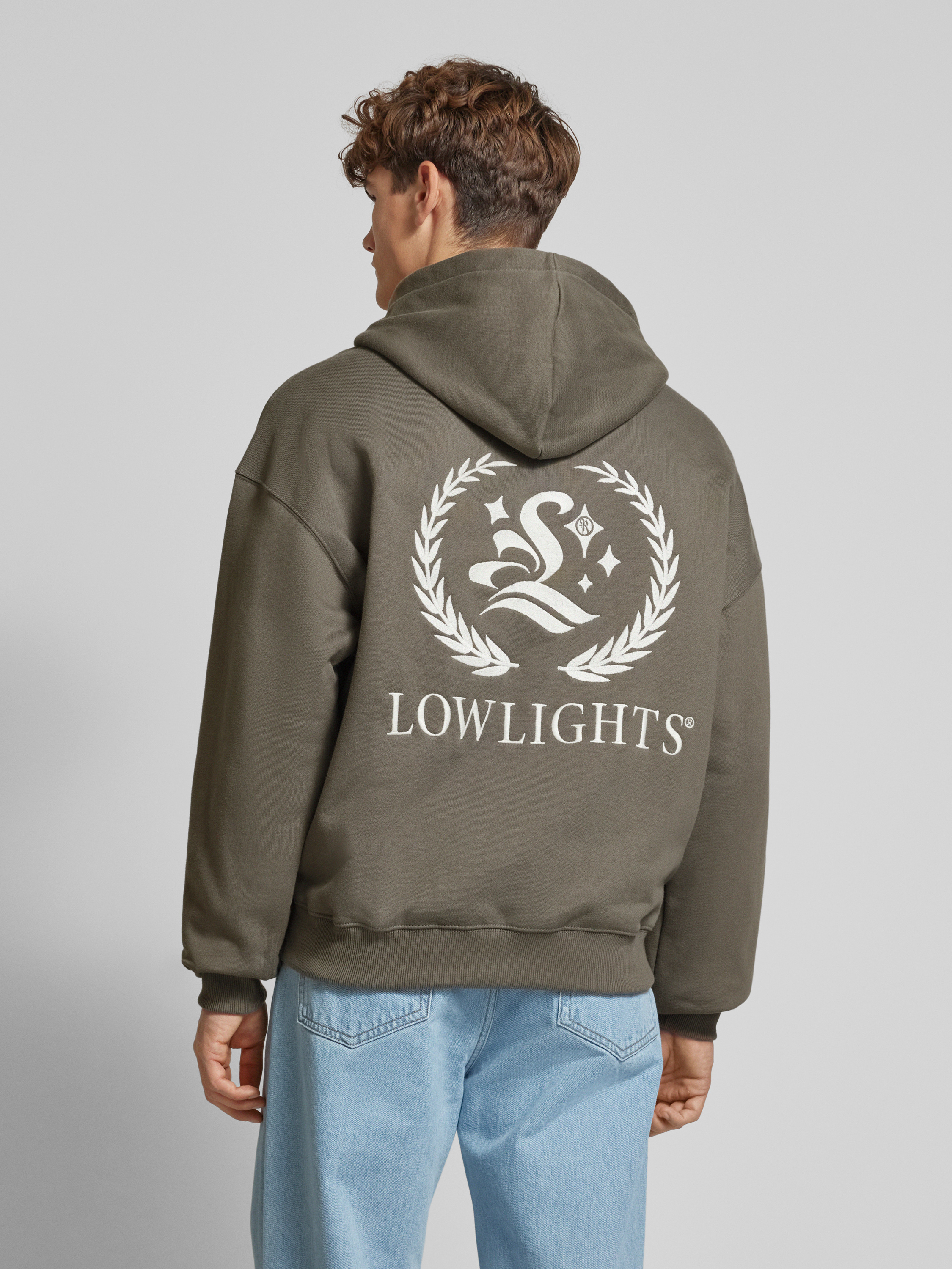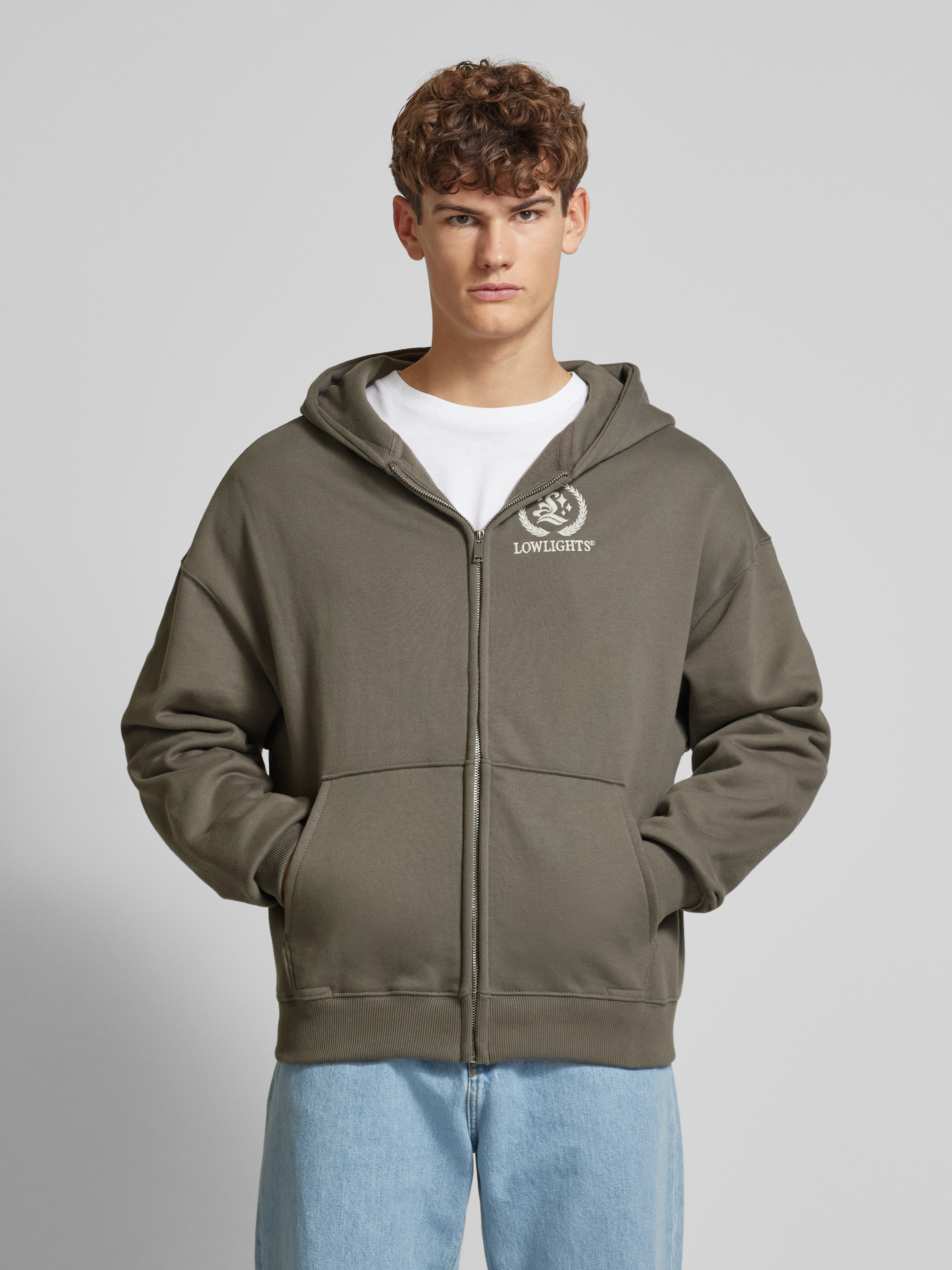 Die Oversized Sweatjacke von Low Lights Studios® zeichnet sich durch ihren bequemen Baumwoll-Mix aus, der für eine entspannte Passform sorgt. Die Kapuze und die Eingrifftaschen bieten praktischen Komfort, während das dezente Label-Stitching einen stilvollen Akzent setzt. Ideal für lässige Gelegenheiten geeignet.
