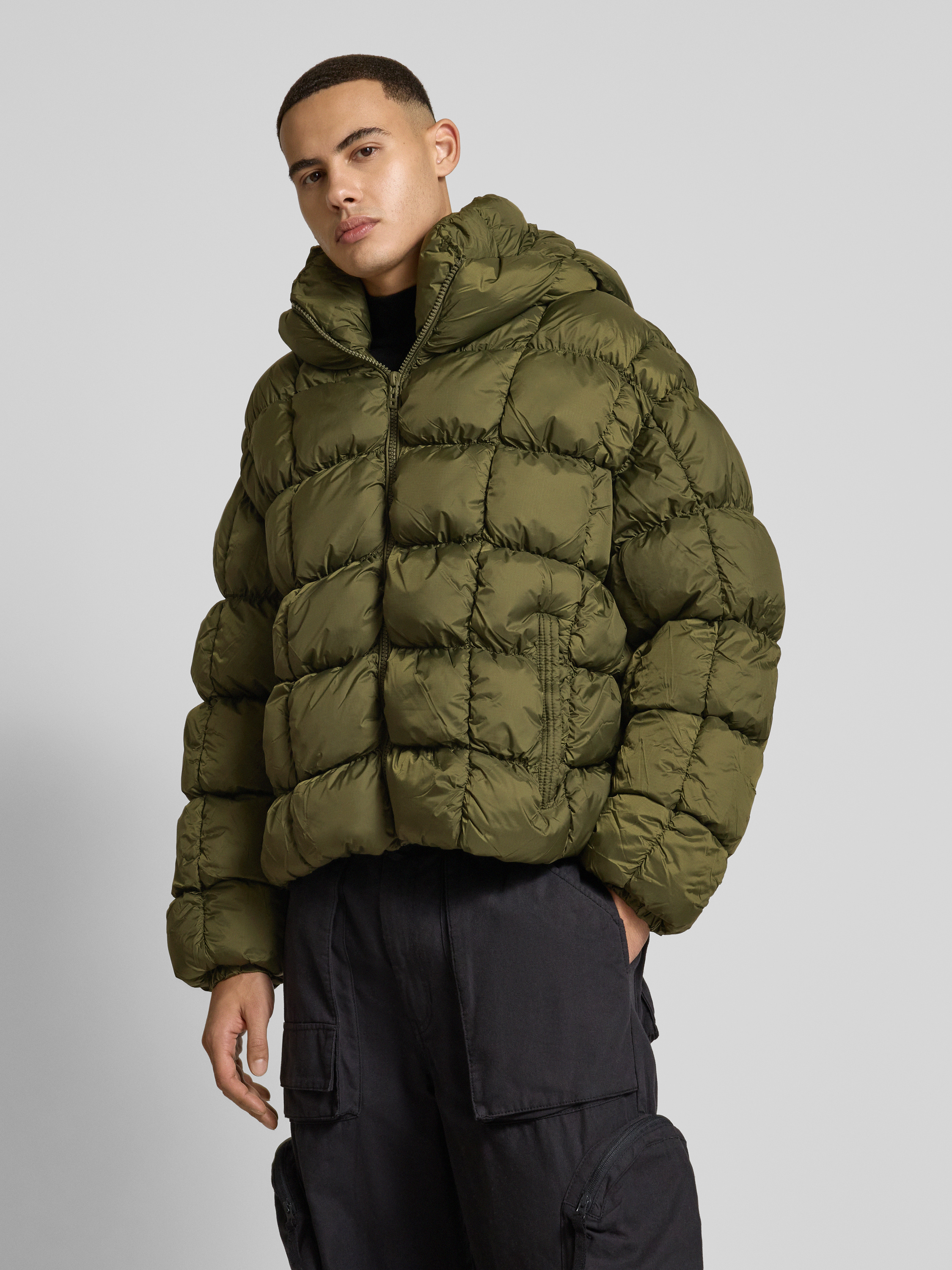 Low Lights StudiosSteppjacke mit Kapuze Modell 'CUBIC SPHERE' in oliv