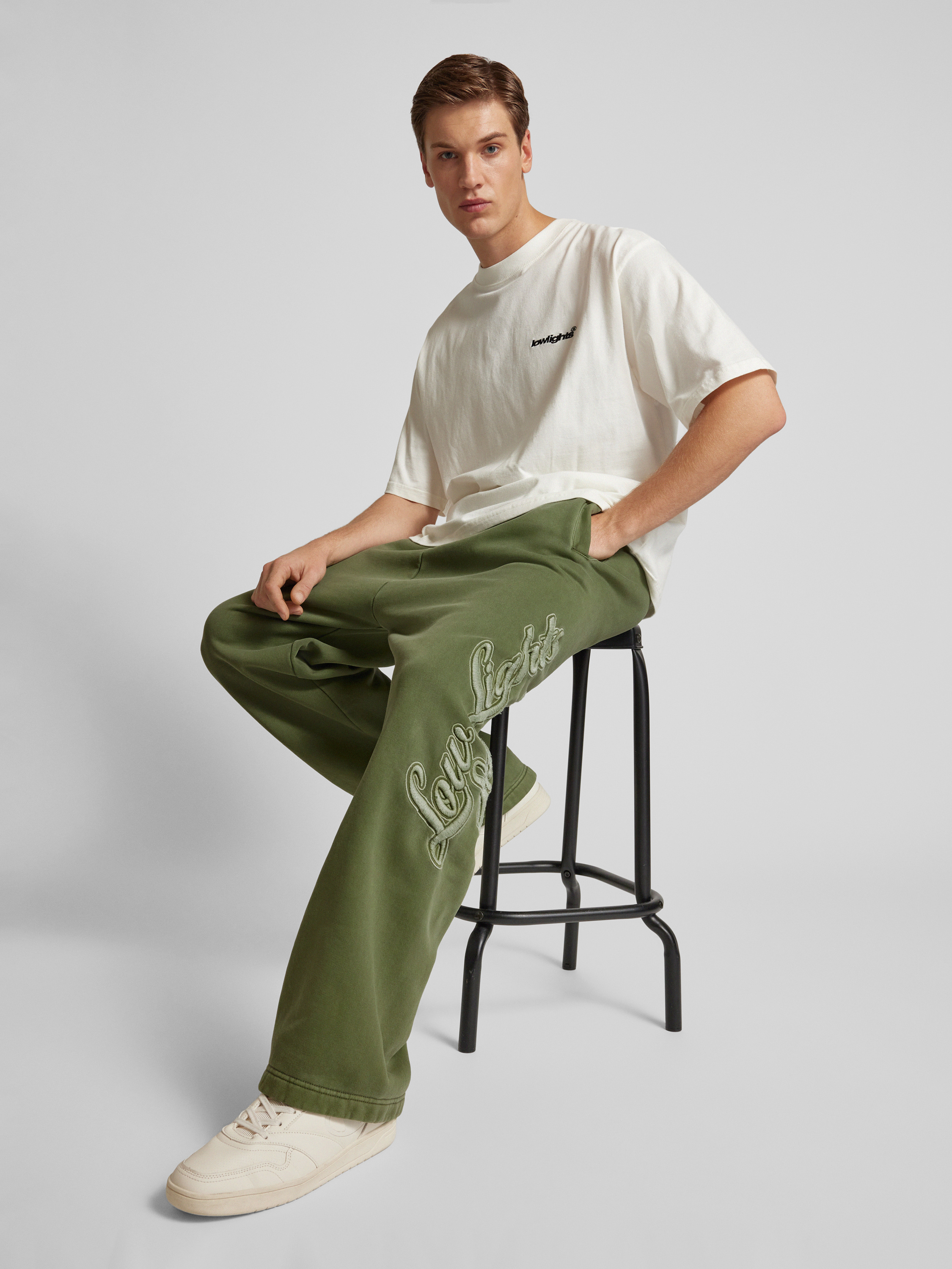 Low Lights StudiosStraight Leg Sweatpants mit Label-Stitching Modell 'Shutter' in hellgruen