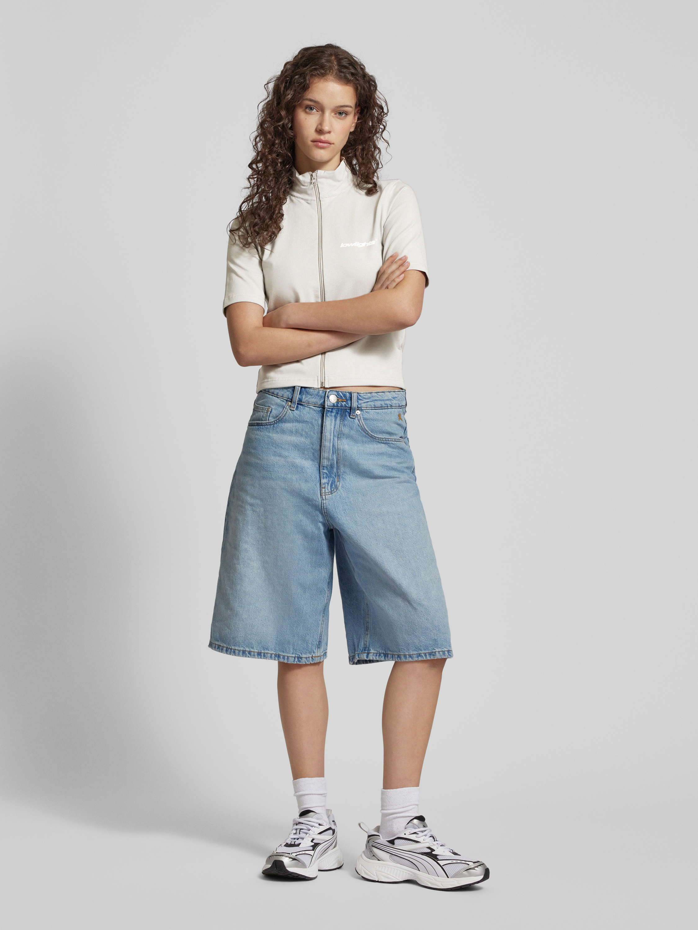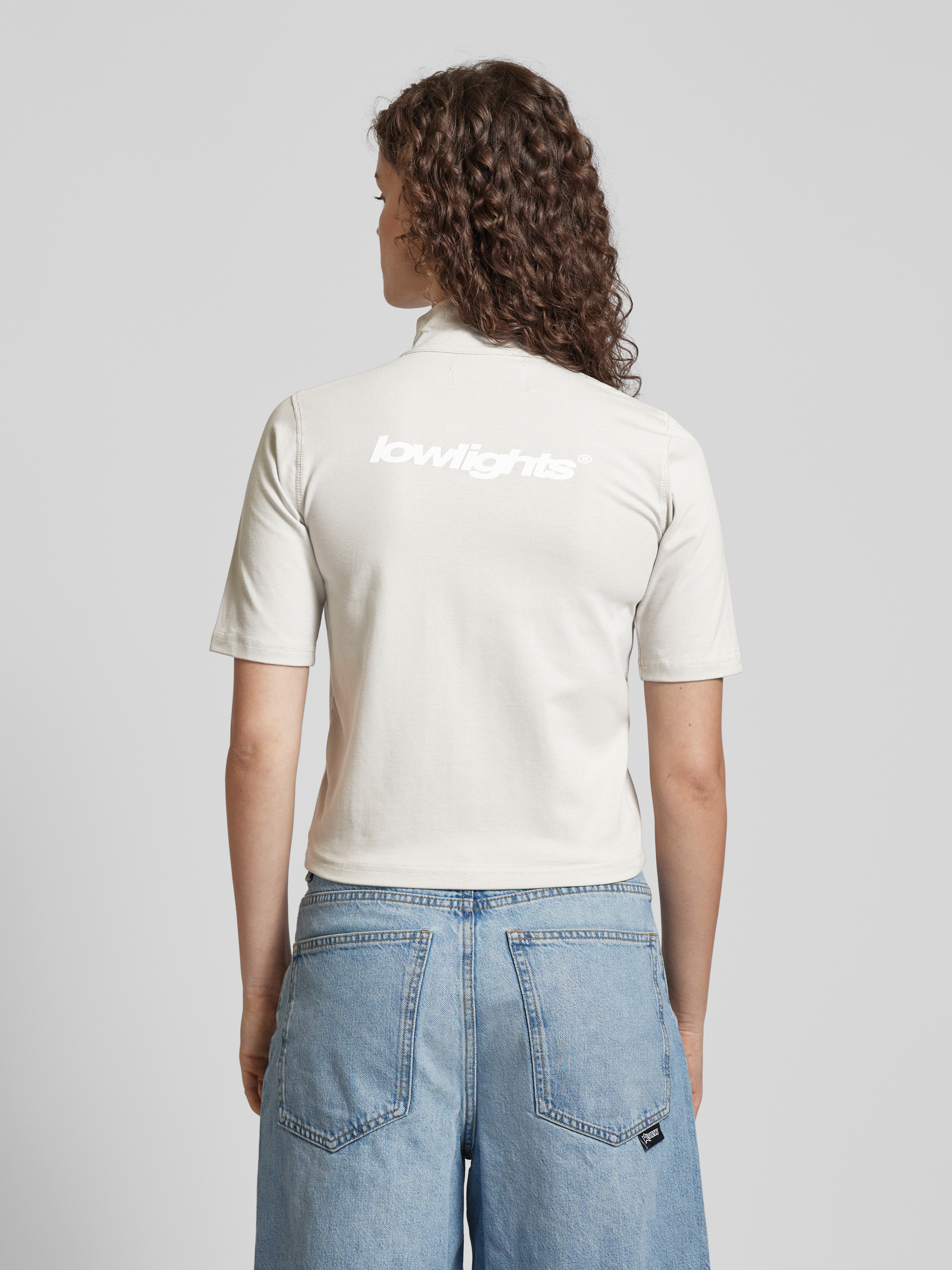 Das T-Shirt von Low Lights Studios® kombiniert einen modernen, geraden Schnitt mit einem praktischen Stehkragen. Der Baumwoll-Elasthan-Mix sorgt für angenehmen Tragekomfort und Bewegungsfreiheit. Ein durchgehender Reißverschluss verleiht dem Design einen frischen Touch, während der dezente Label-Print das Gesamtbild abrundet.