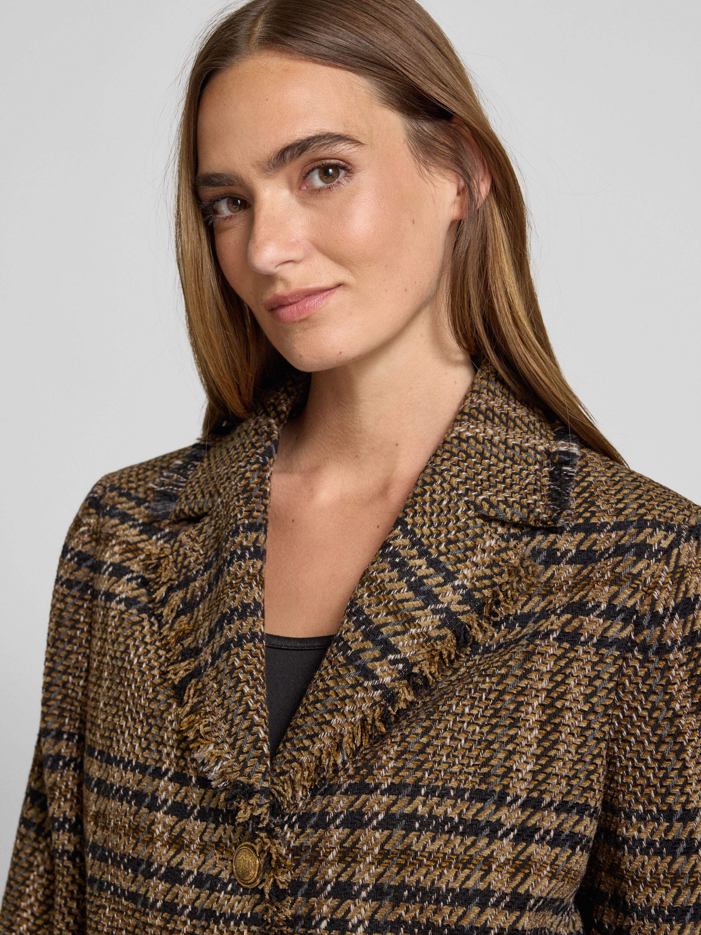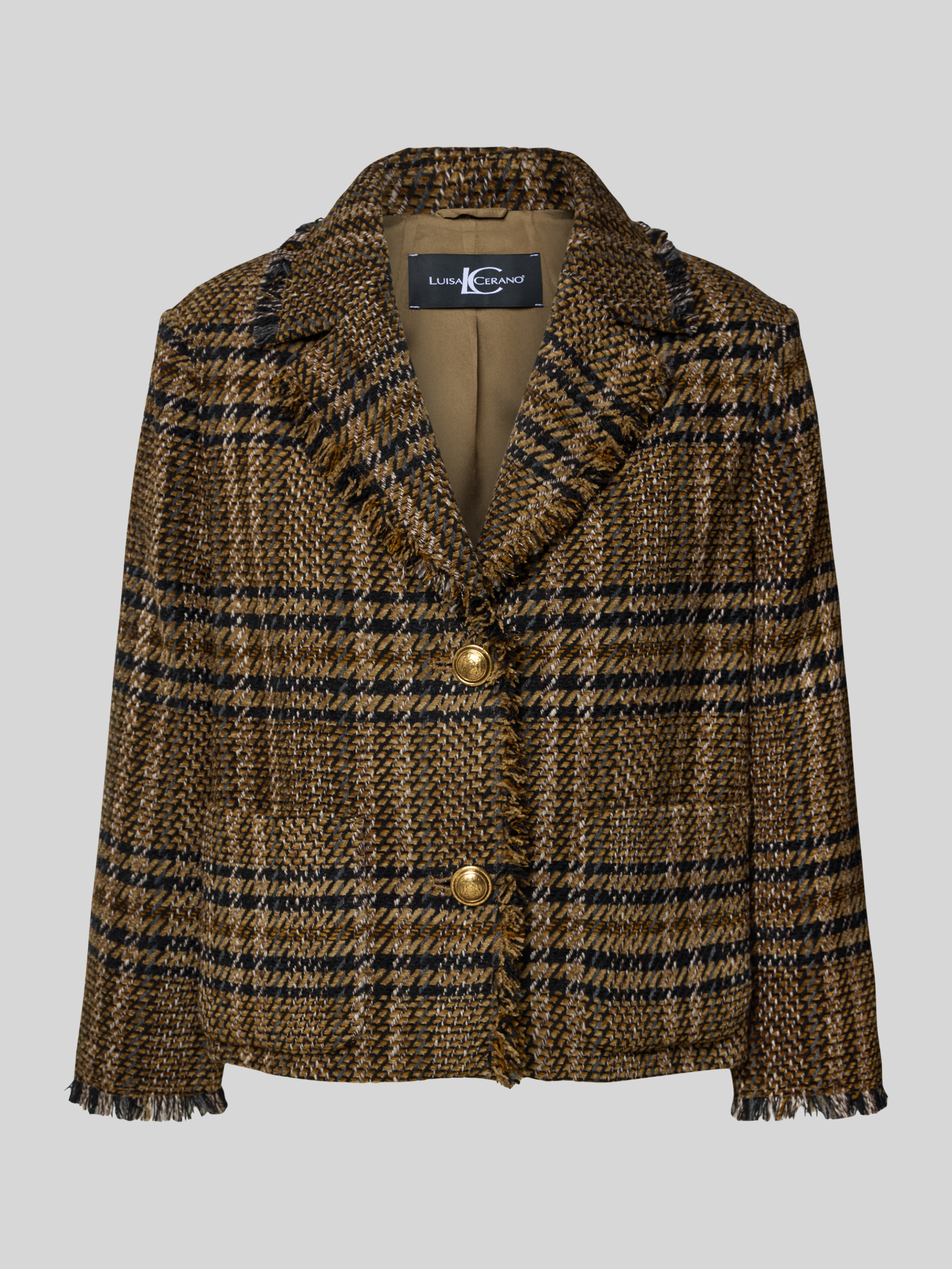 Der Regular Fit Blazer von Luisa Cerano kombiniert einen eleganten Reverskragen mit verspielten Fransen und einem angenehmen Viskose-Mix. Durch den lockeren Schnitt eignet er sich für vielseitige Gelegenheiten. Der Blazer bietet eine harmonische Balance zwischen klassischem Stil und moderner Note.